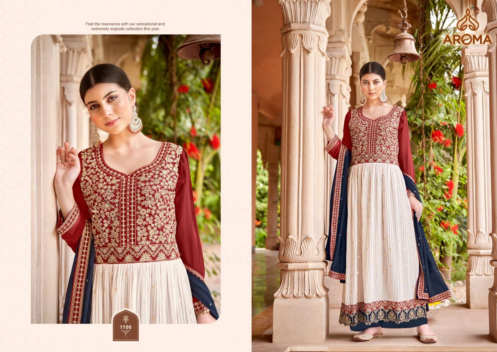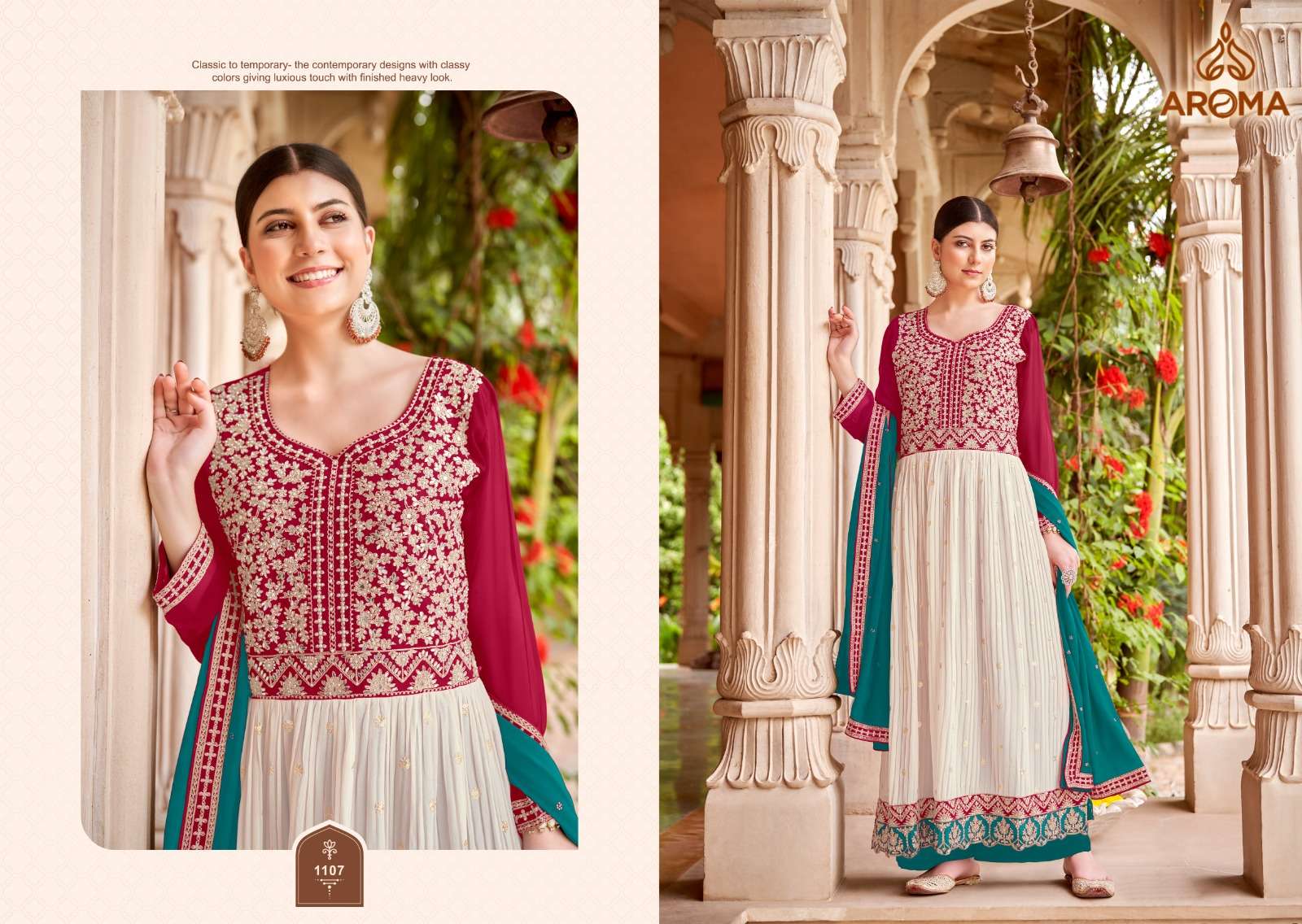 aroma present minakari designer free size stitched nayra cut salwar kameez