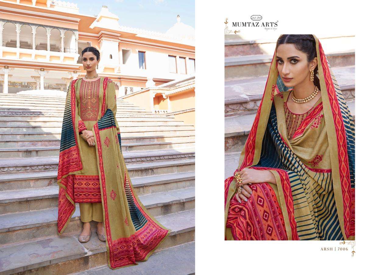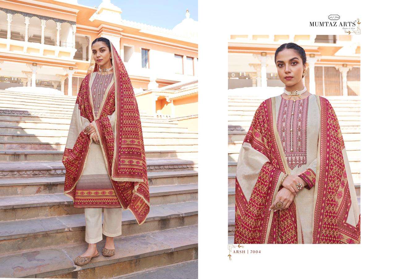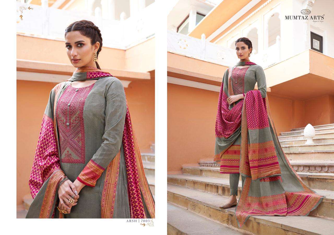 Today we MUMTAZ ARTS⢠RANGON KI DUNIYA are launching our all time exclusive series. MUMTAZ ARTS⢠    RANGON KI DUNYA⢠Name - ARSH Heavy embroidery collection Fabric details - Top - Pure Lawn cotton   Digital print with heavy emb Bot - Pure lawn dyed      (2.80 mtr app) Dup - PURE LAWN MUL-MUL  Digital print      Designs - 10 pcs Selling Rate - 695/- +GST |