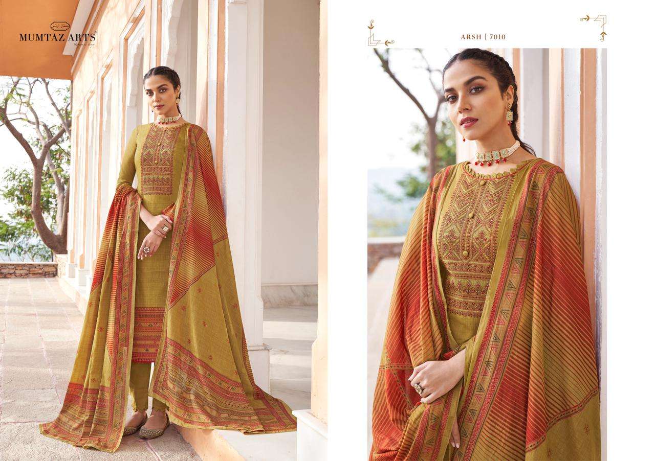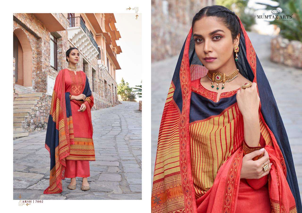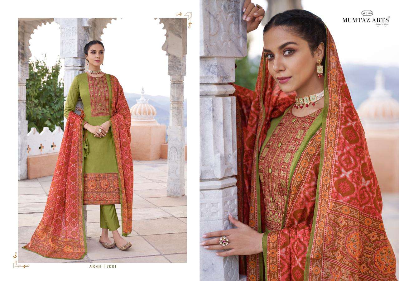 Today we MUMTAZ ARTS⢠RANGON KI DUNIYA are launching our all time exclusive series. MUMTAZ ARTS⢠    RANGON KI DUNYA⢠Name - ARSH Heavy embroidery collection Fabric details - Top - Pure Lawn cotton   Digital print with heavy emb Bot - Pure lawn dyed      (2.80 mtr app) Dup - PURE LAWN MUL-MUL  Digital print      Designs - 10 pcs Selling Rate - 695/- +GST |