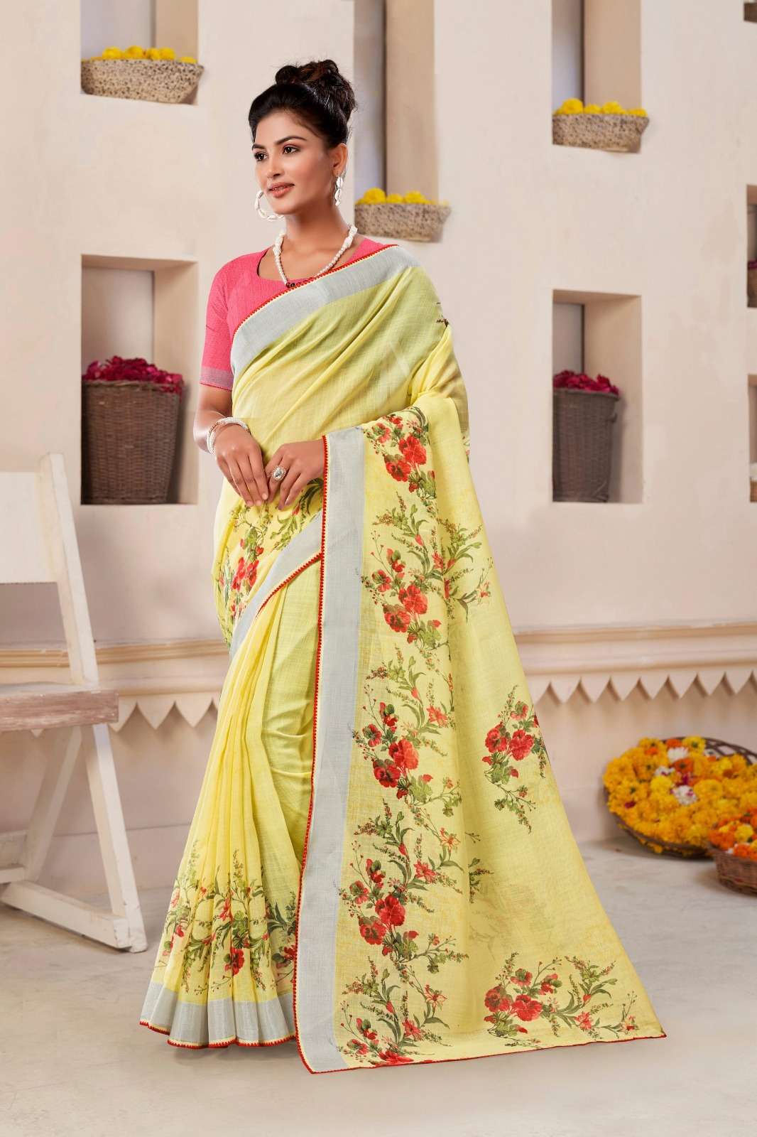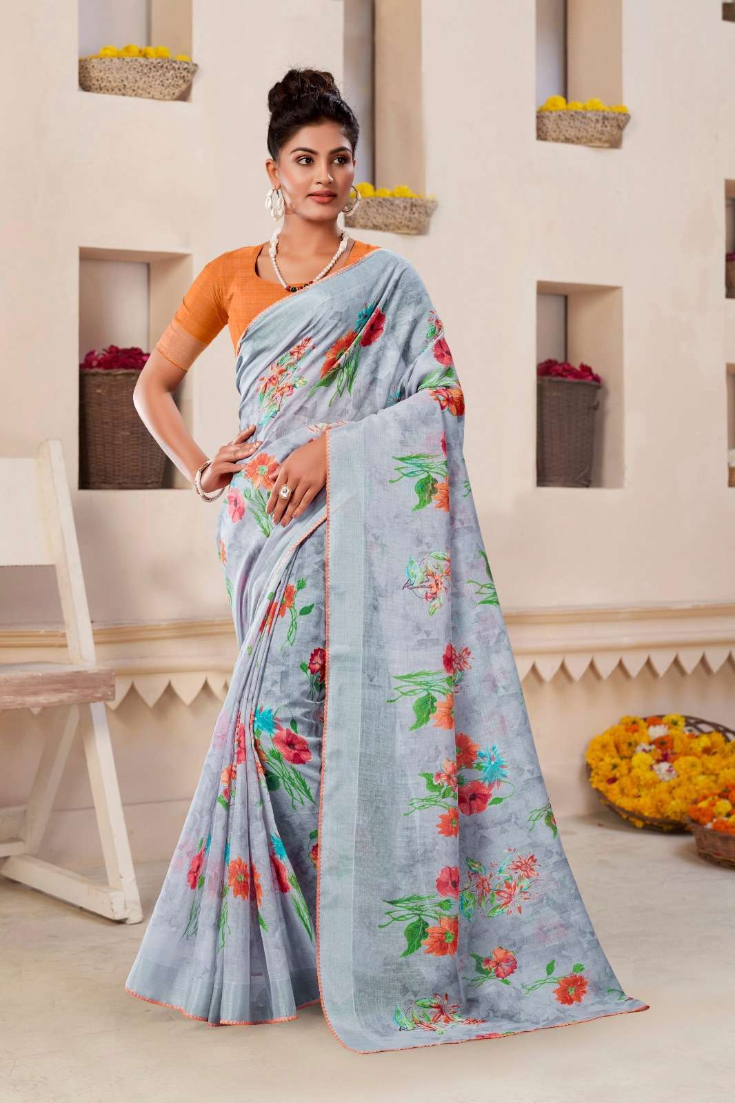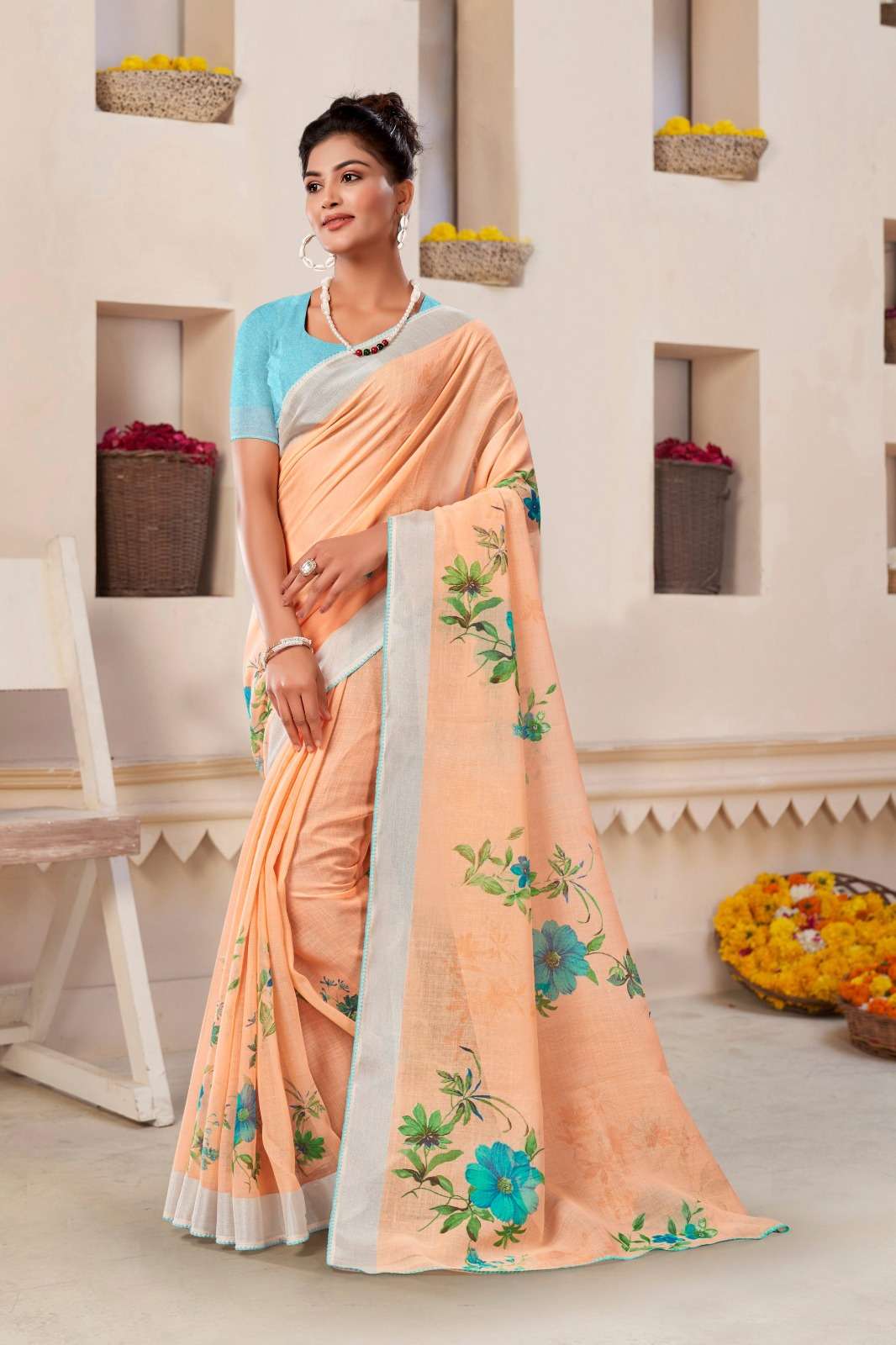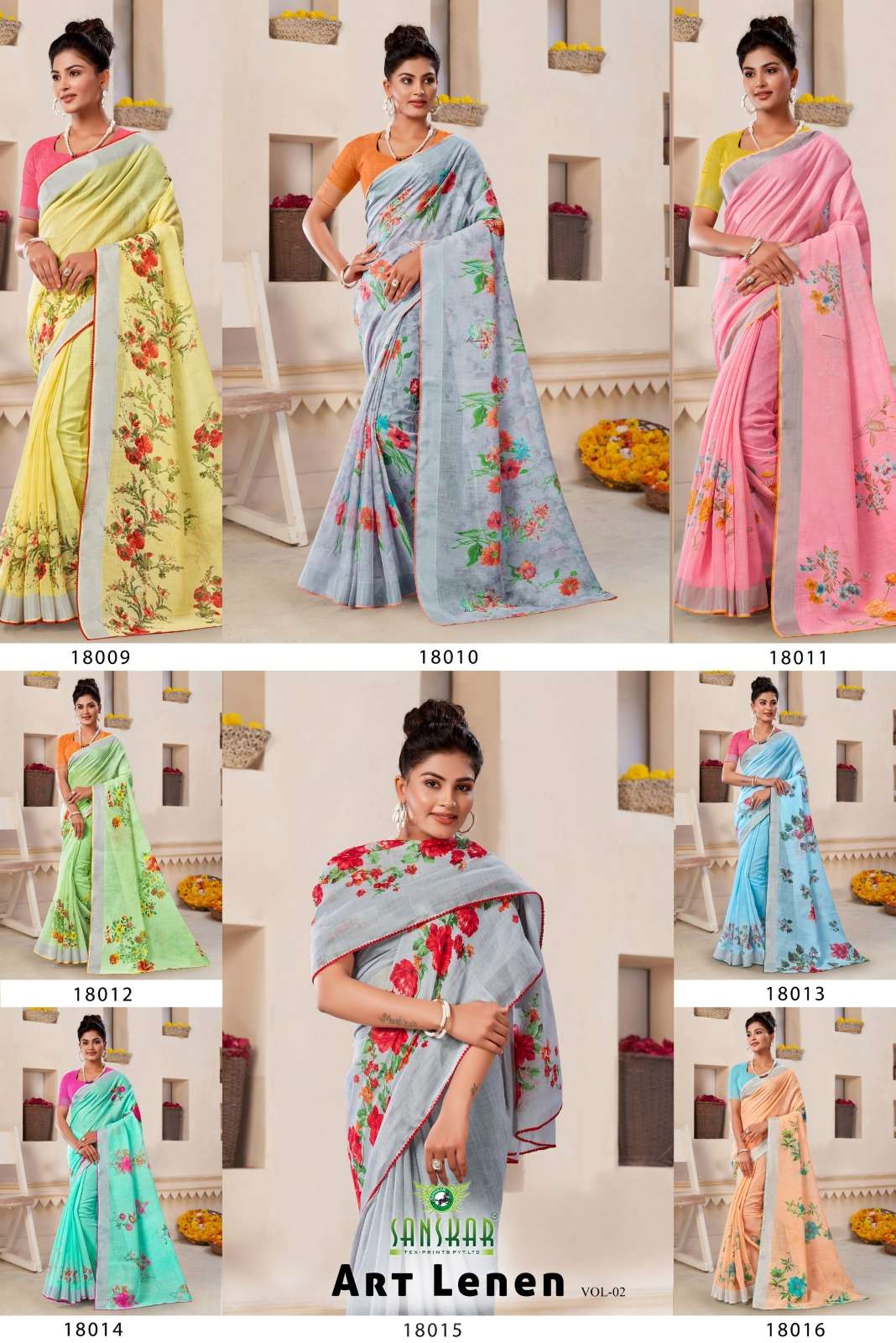 art lenen vol 2 by sanskar tex fancy flower print sarees online supplier