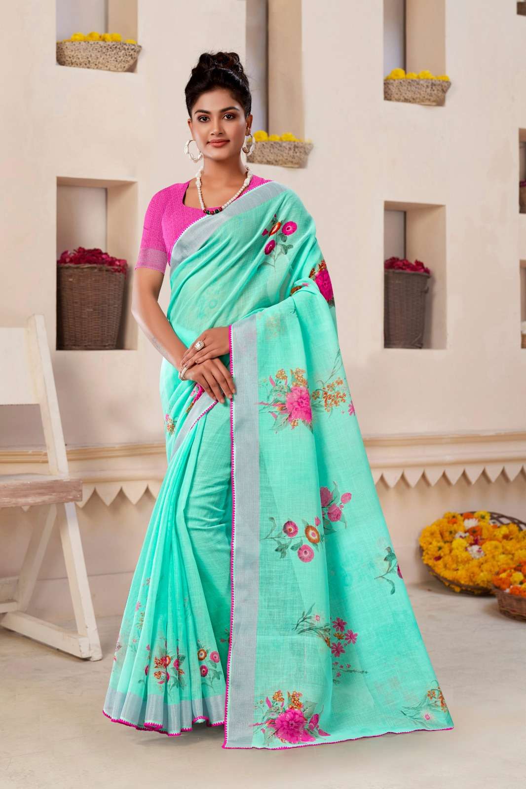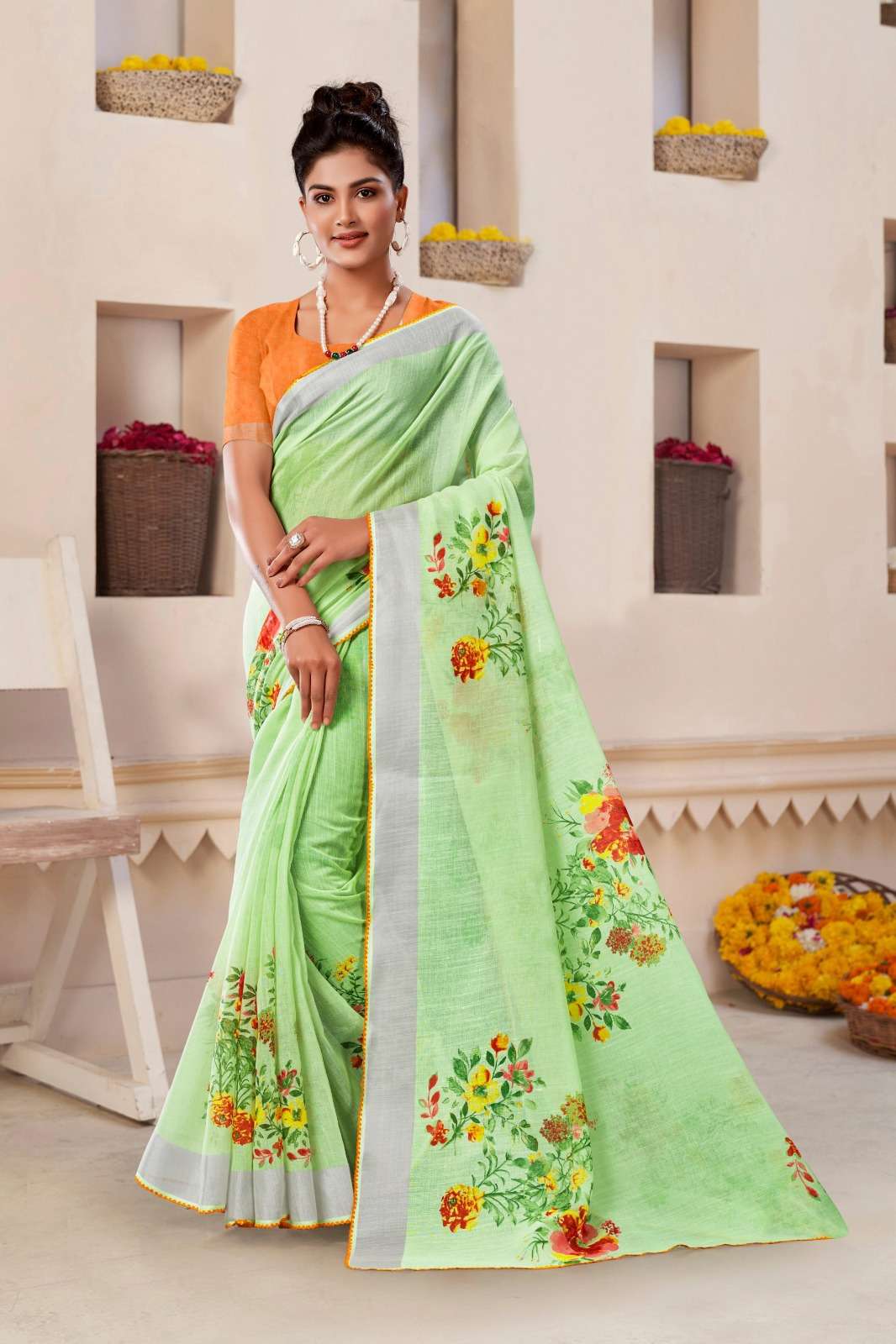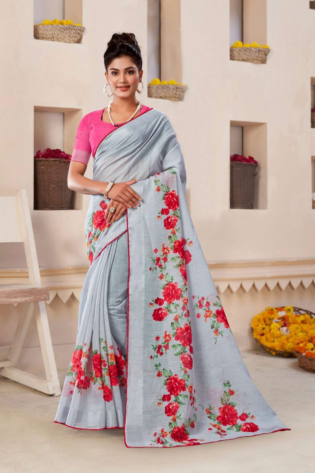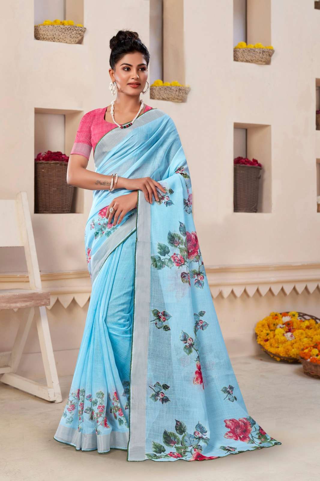 art lenen vol 2 by sanskar tex fancy flower print sarees online supplier