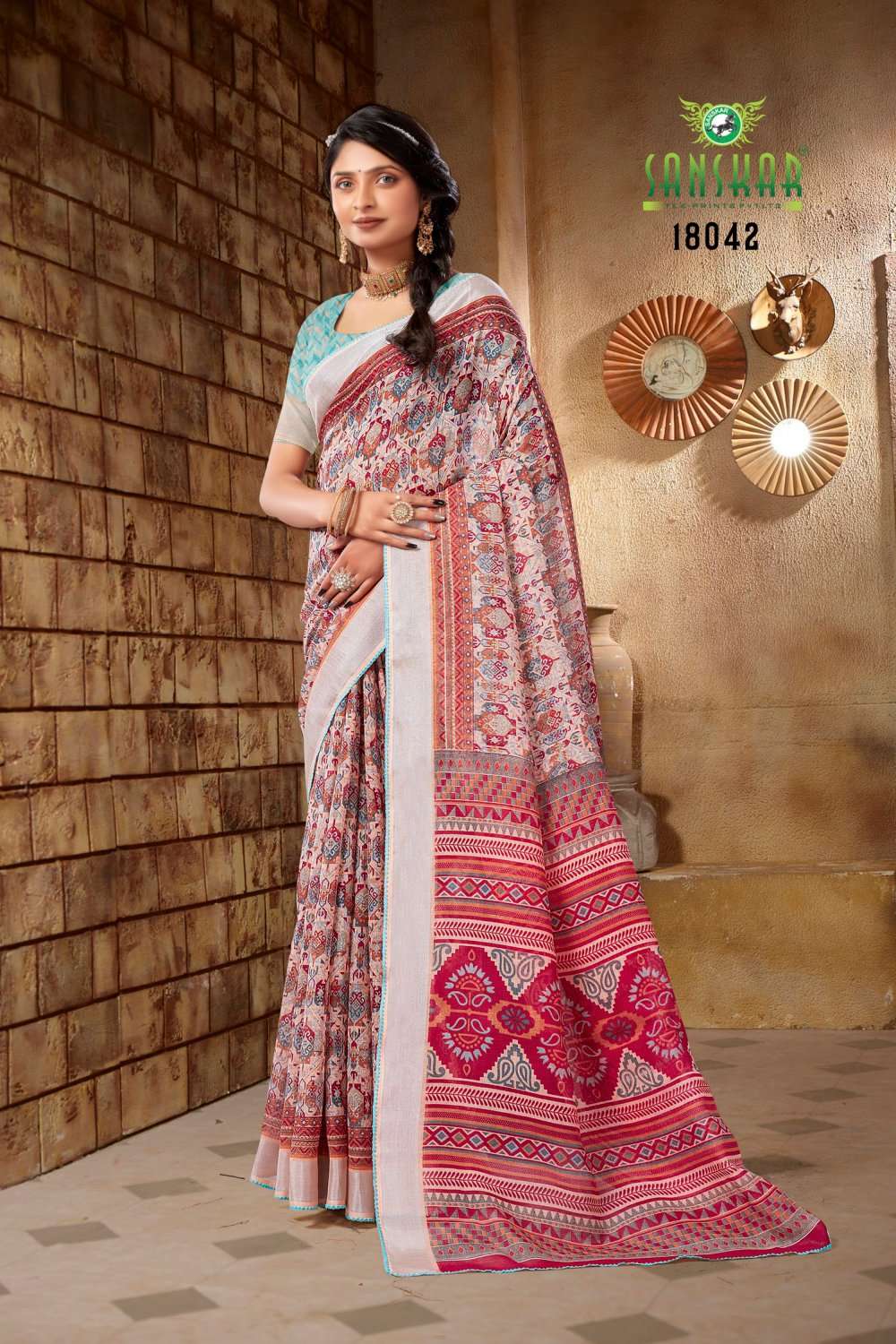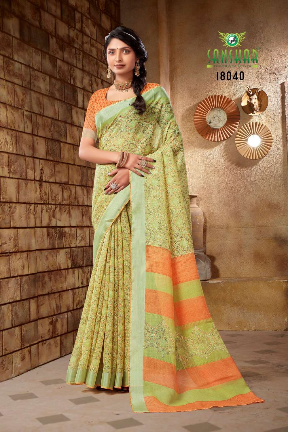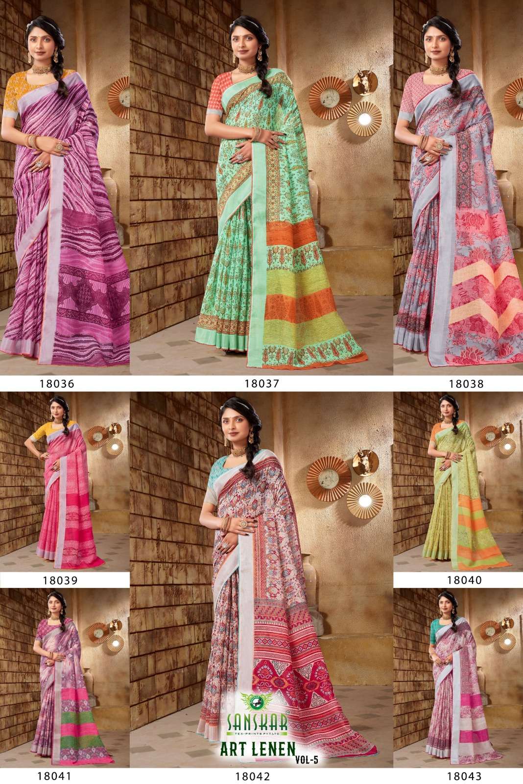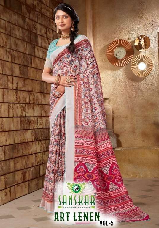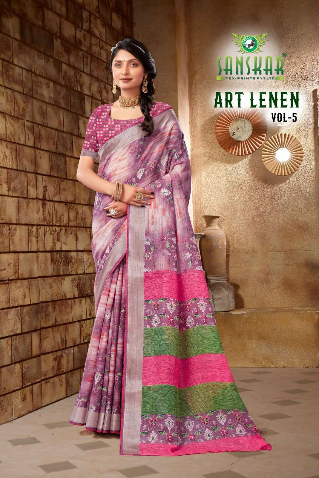 art lenen vol 5 by sanskar tex fancy soft linen sarees collection