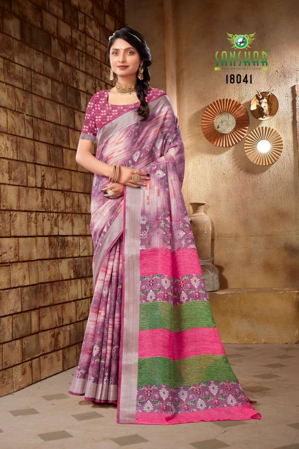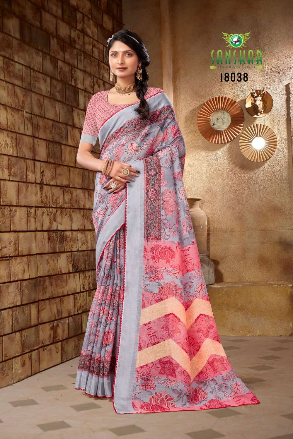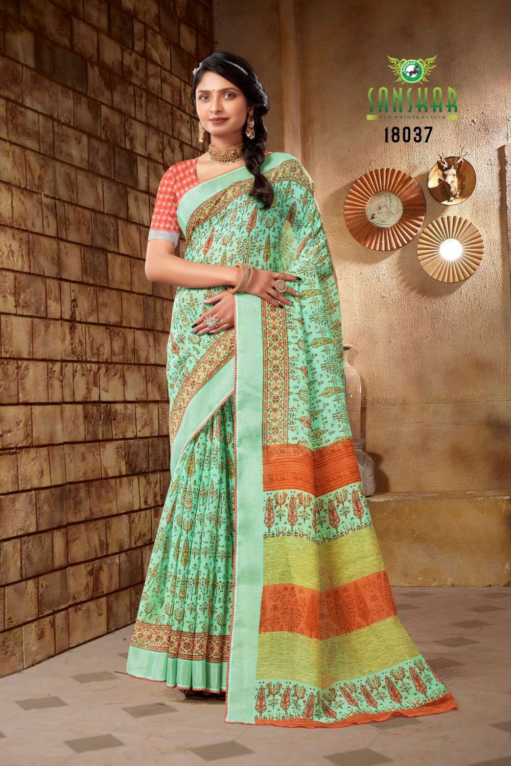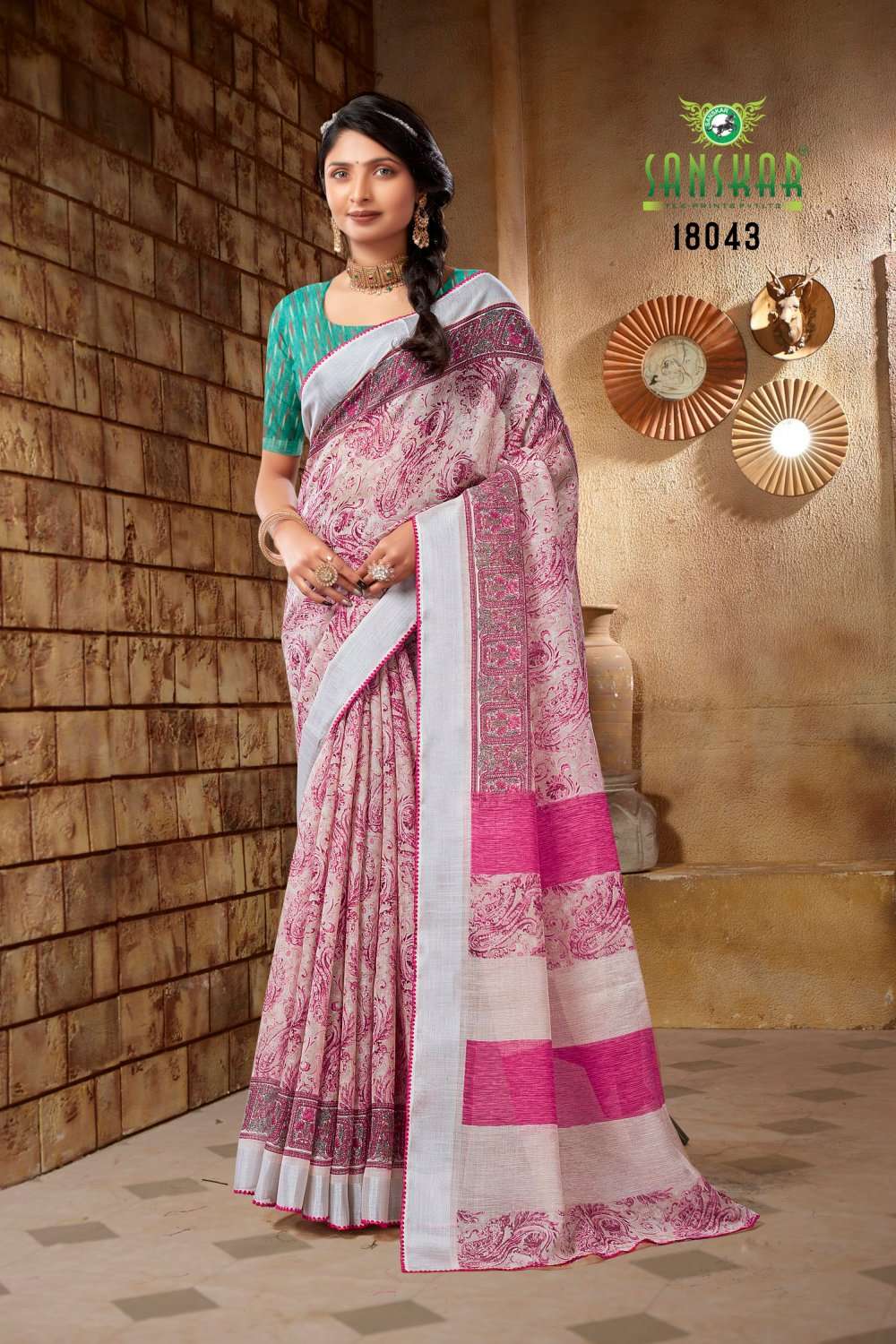 art lenen vol 5 by sanskar tex fancy soft linen sarees collection
