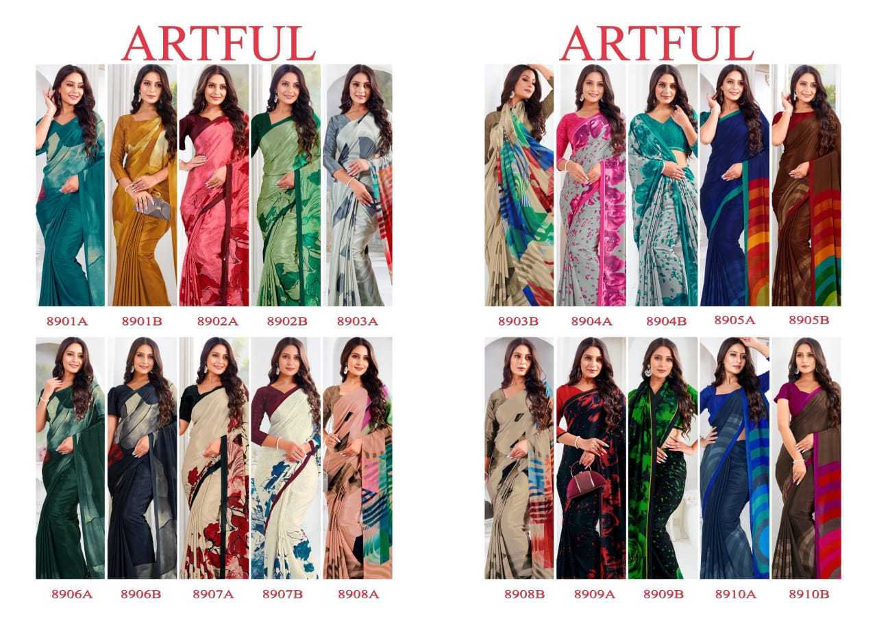 ARTFUL CATALOG FASHION CRAPE 615/- 6.30 MTRS 20 SAREES |