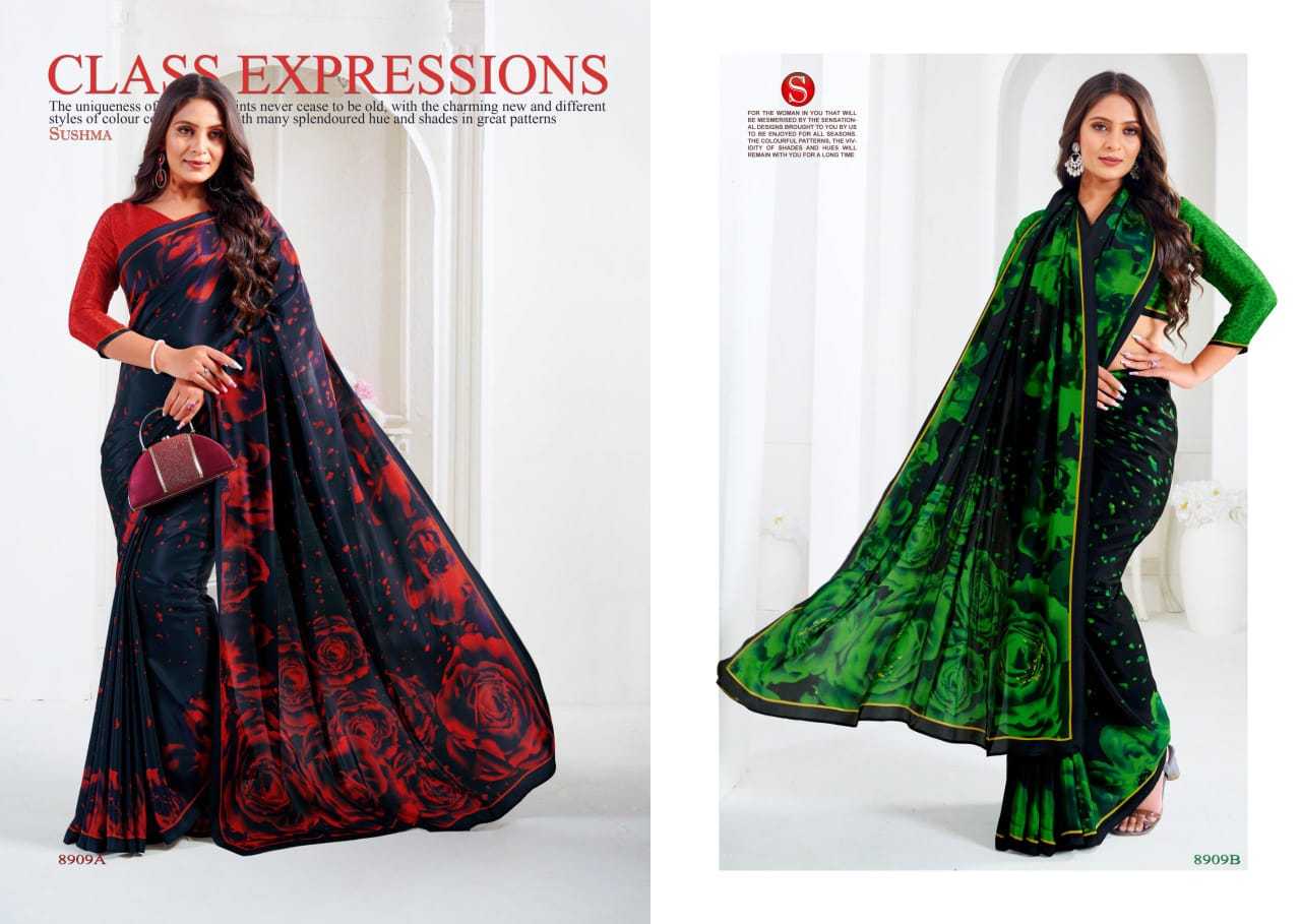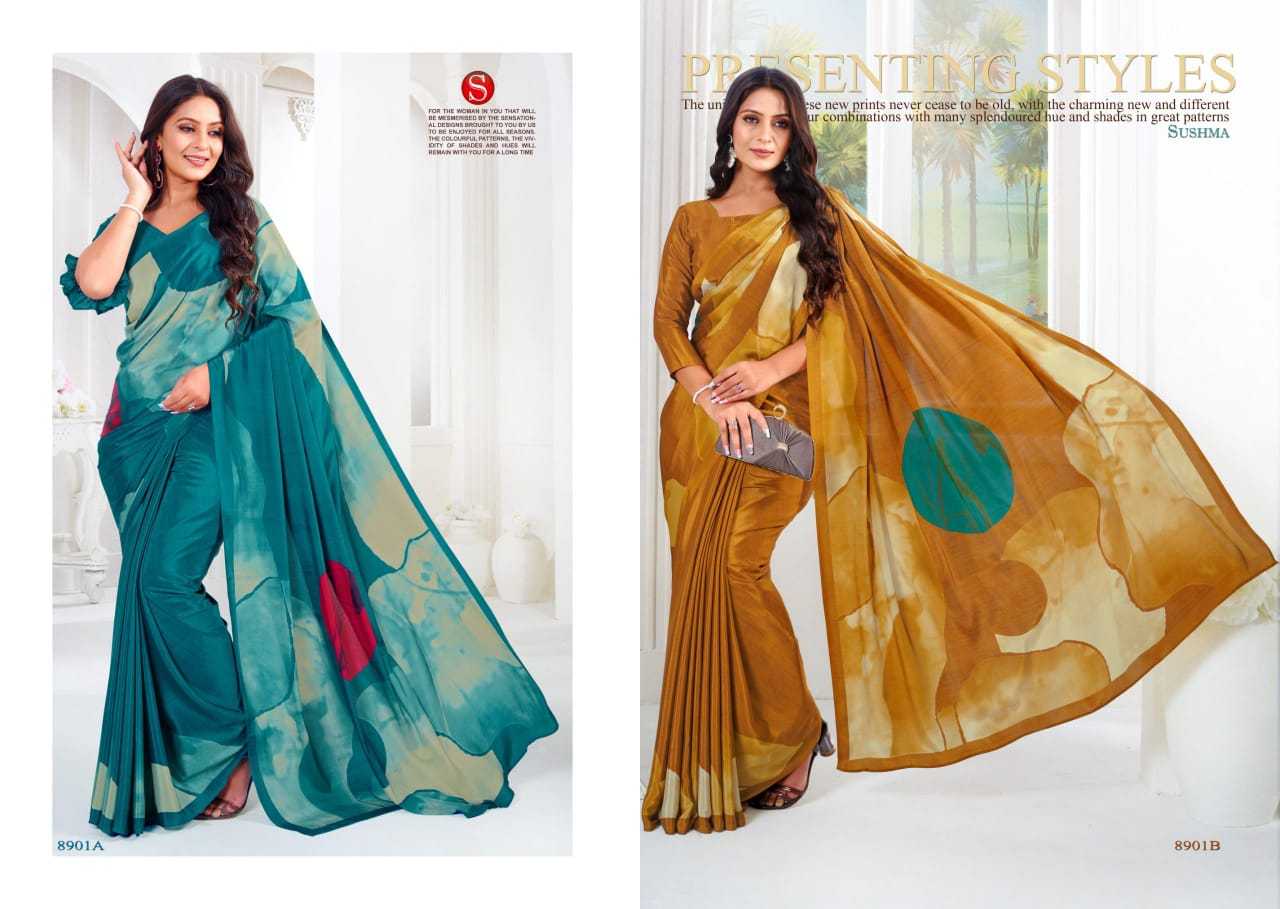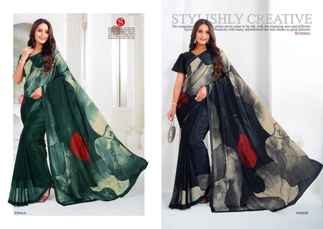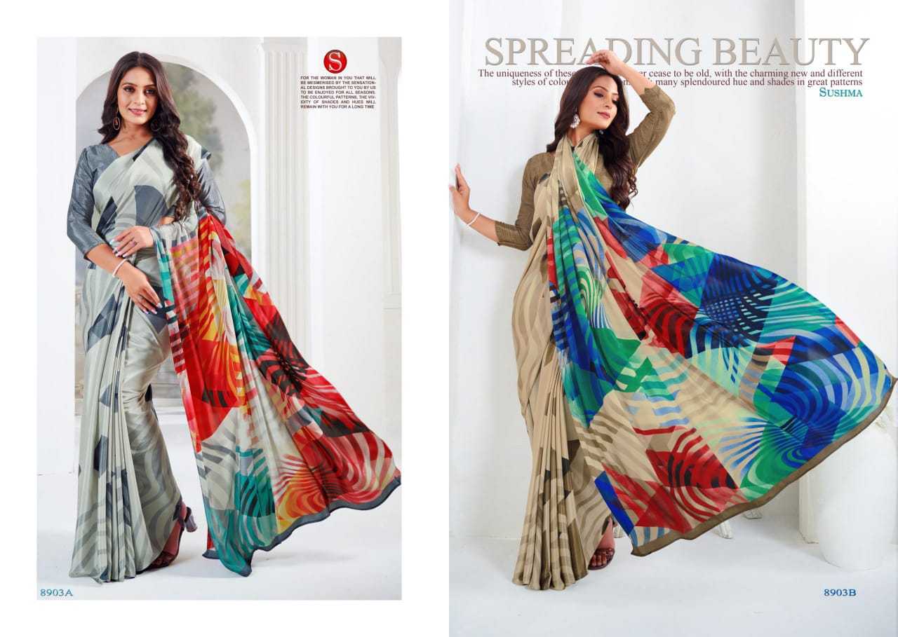artful sushma fashionable crape unique print saree