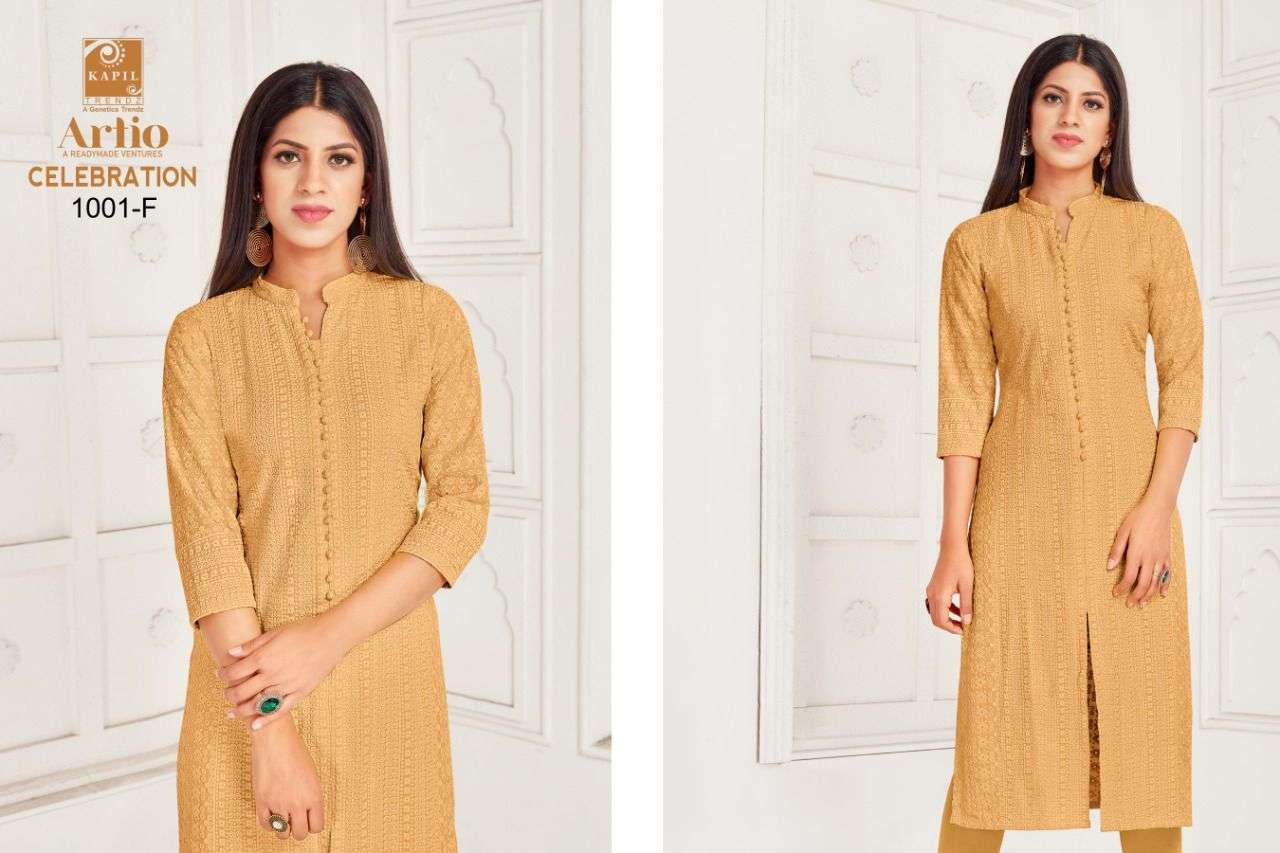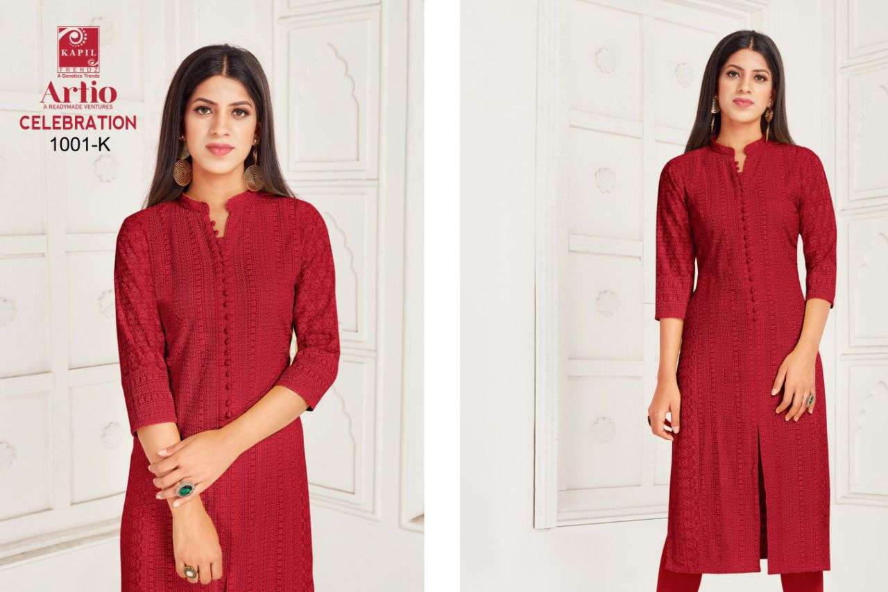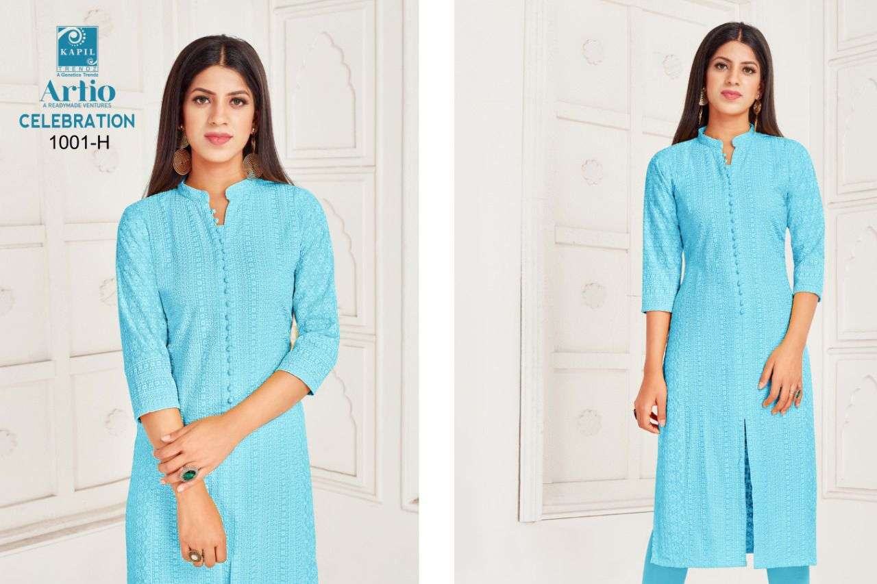 artio celebration rayon shifli work kurti wholesaler
