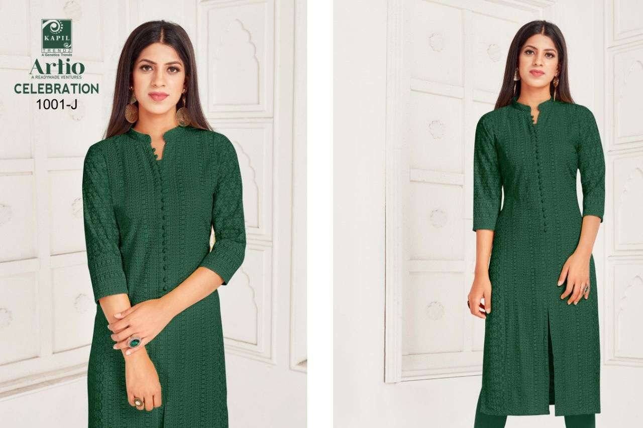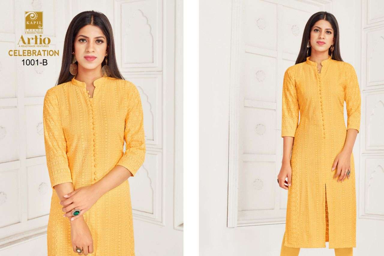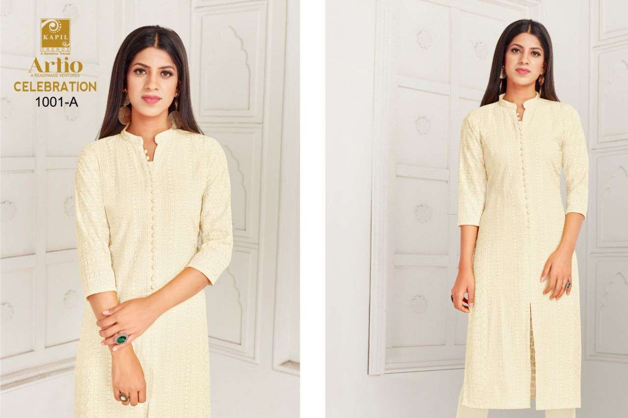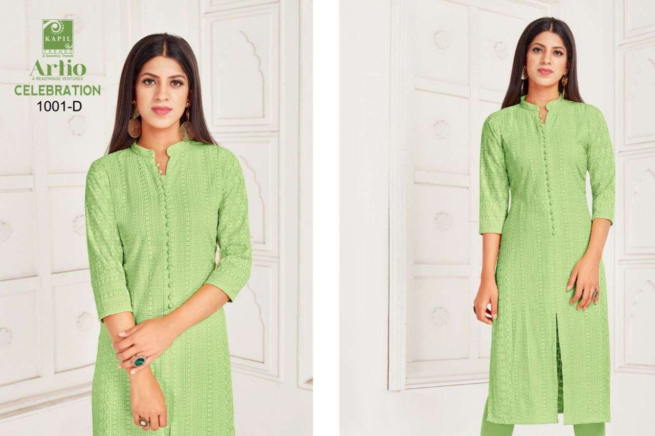 artio celebration rayon shifli work kurti wholesaler