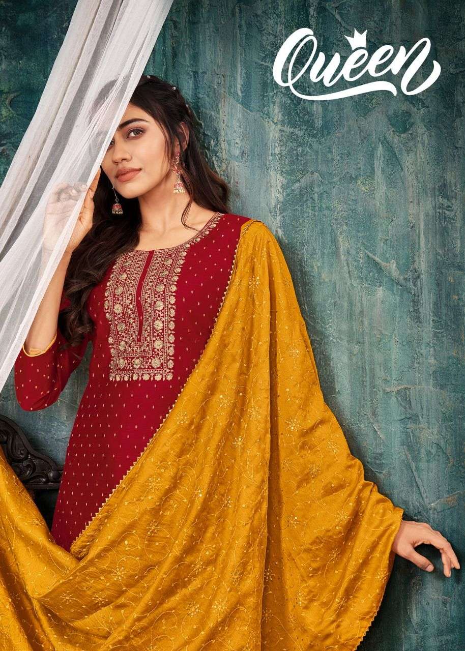 artio queen by kapil trendz silk butti readymade dresses with fancy work dupatta