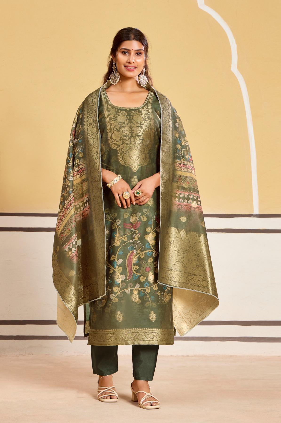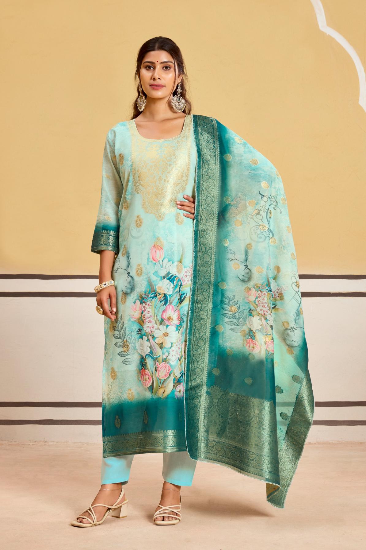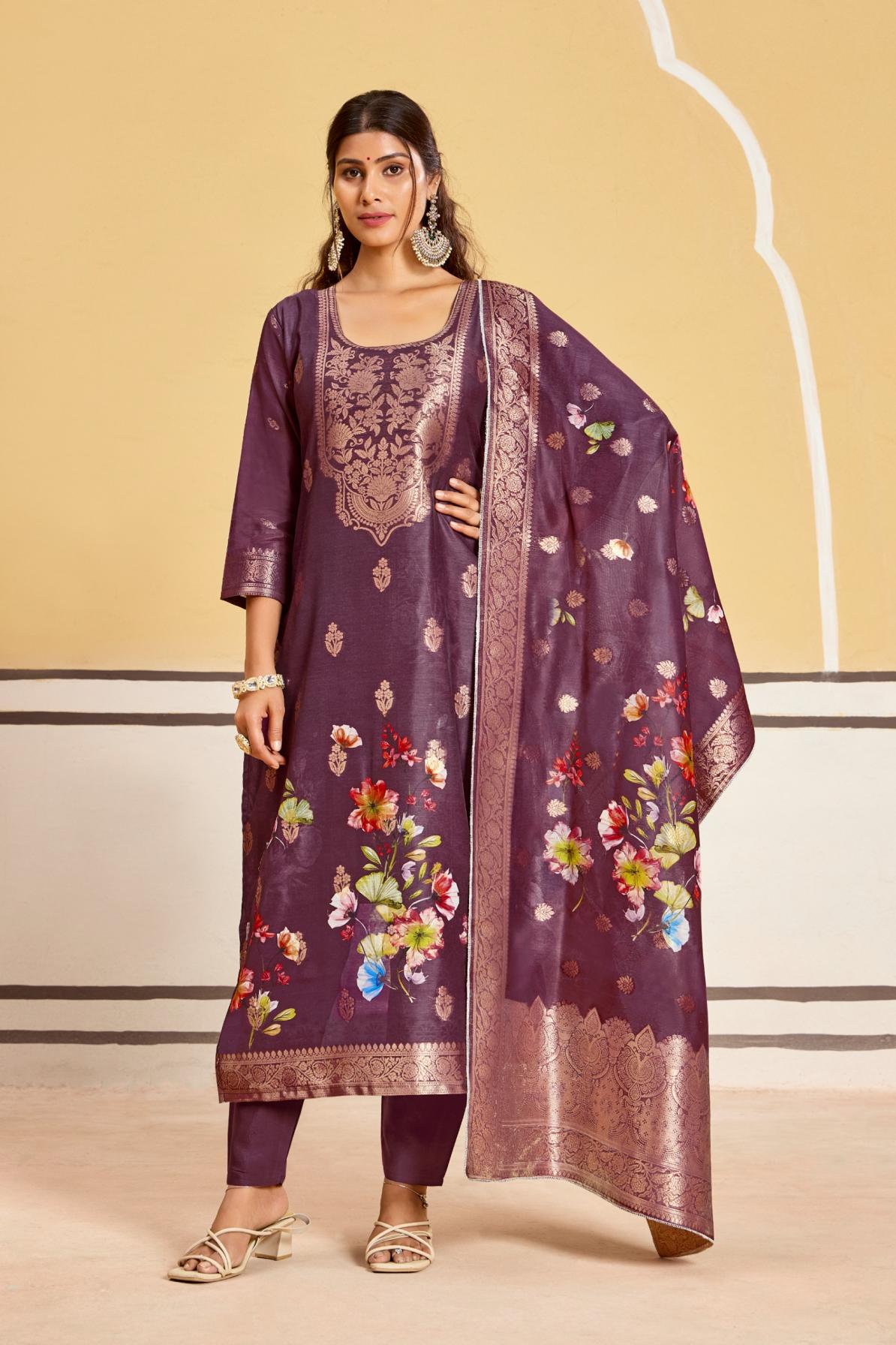 artriddh banarasi jacquard readymade fashionable combo set suits