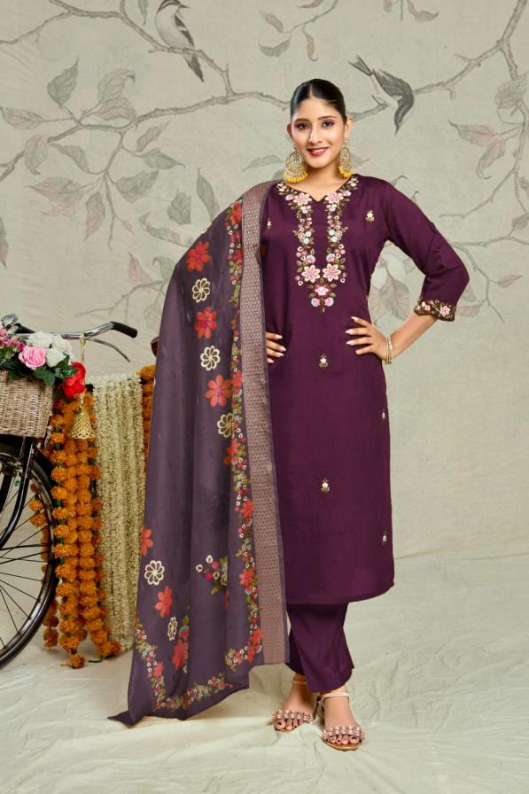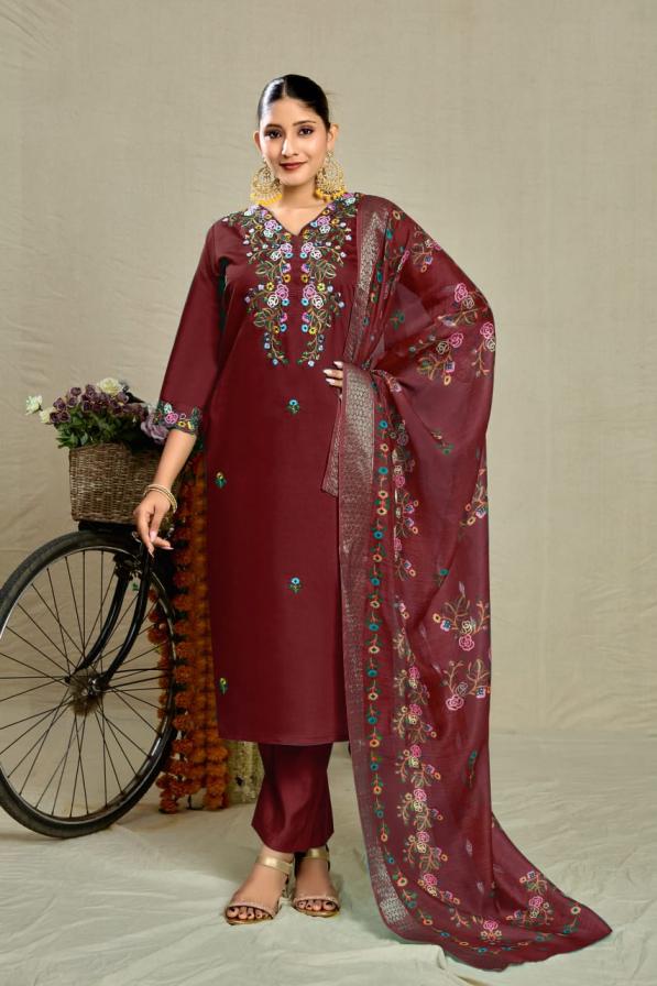 artriddh roman silks readymade classic look combo set 3pcs dress