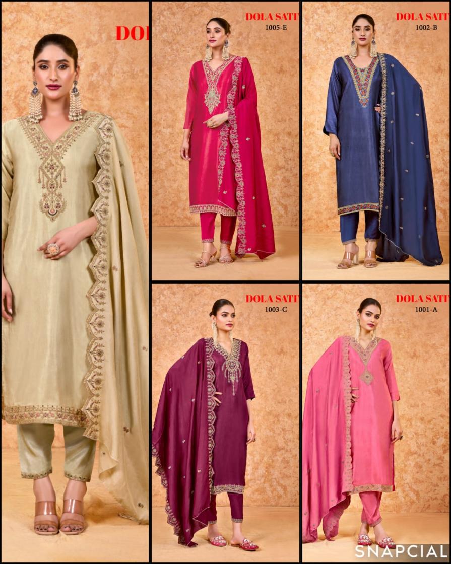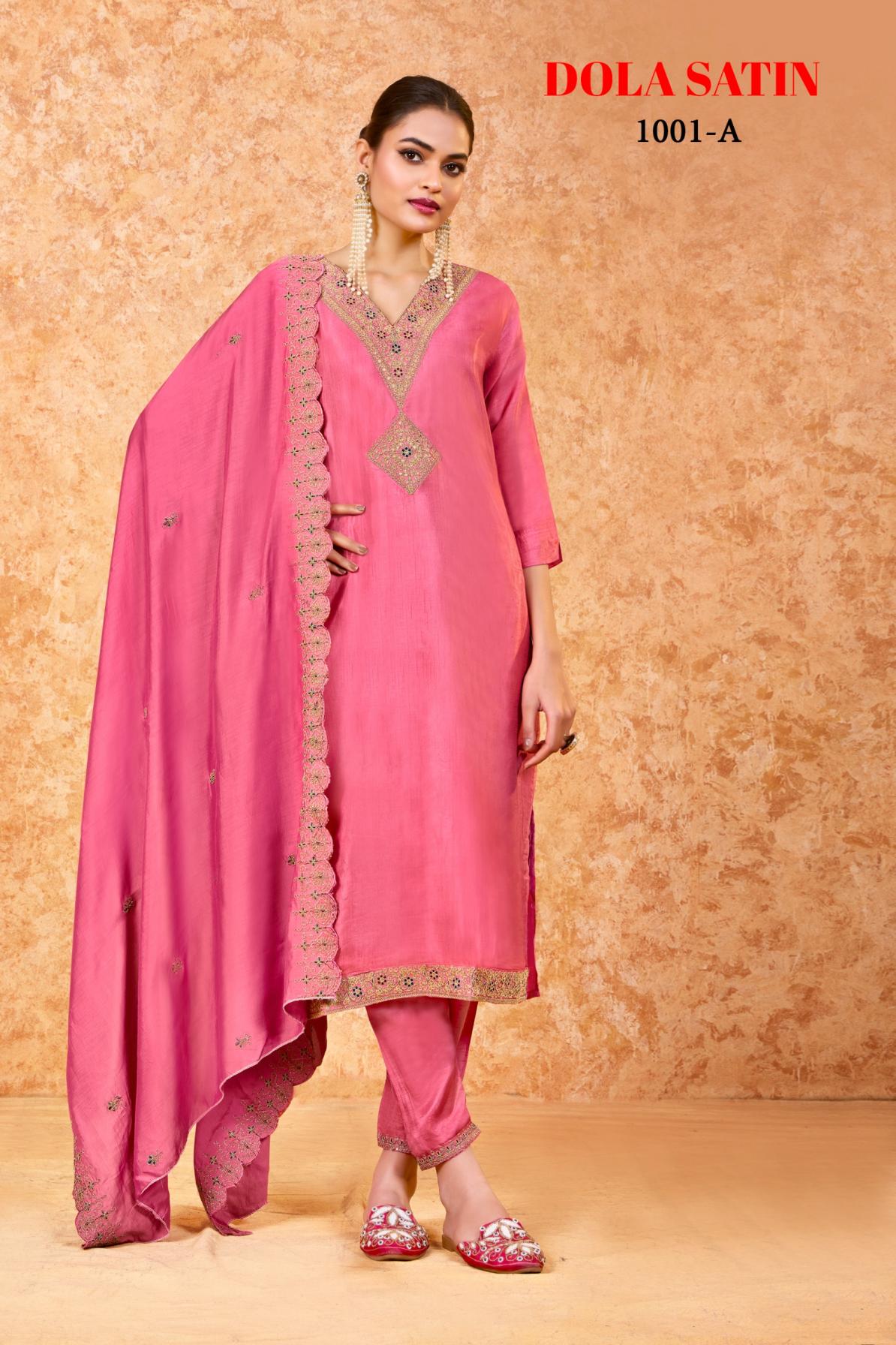 artridhs dola satin v neck readymade combo set stylish suit for womens
