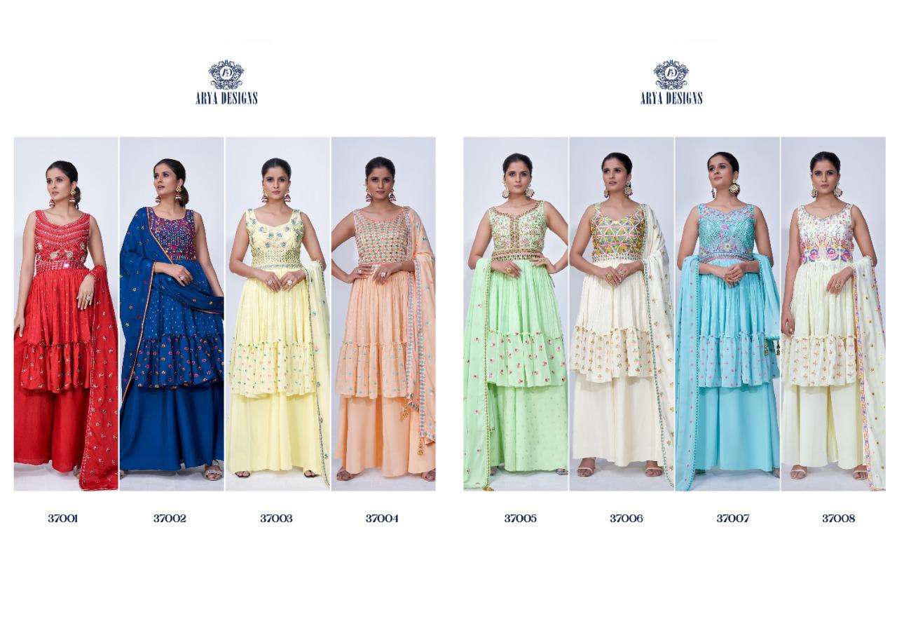 arya designs blus vol 2 37001-37008 readymade plazzo style heavy party wear dresses