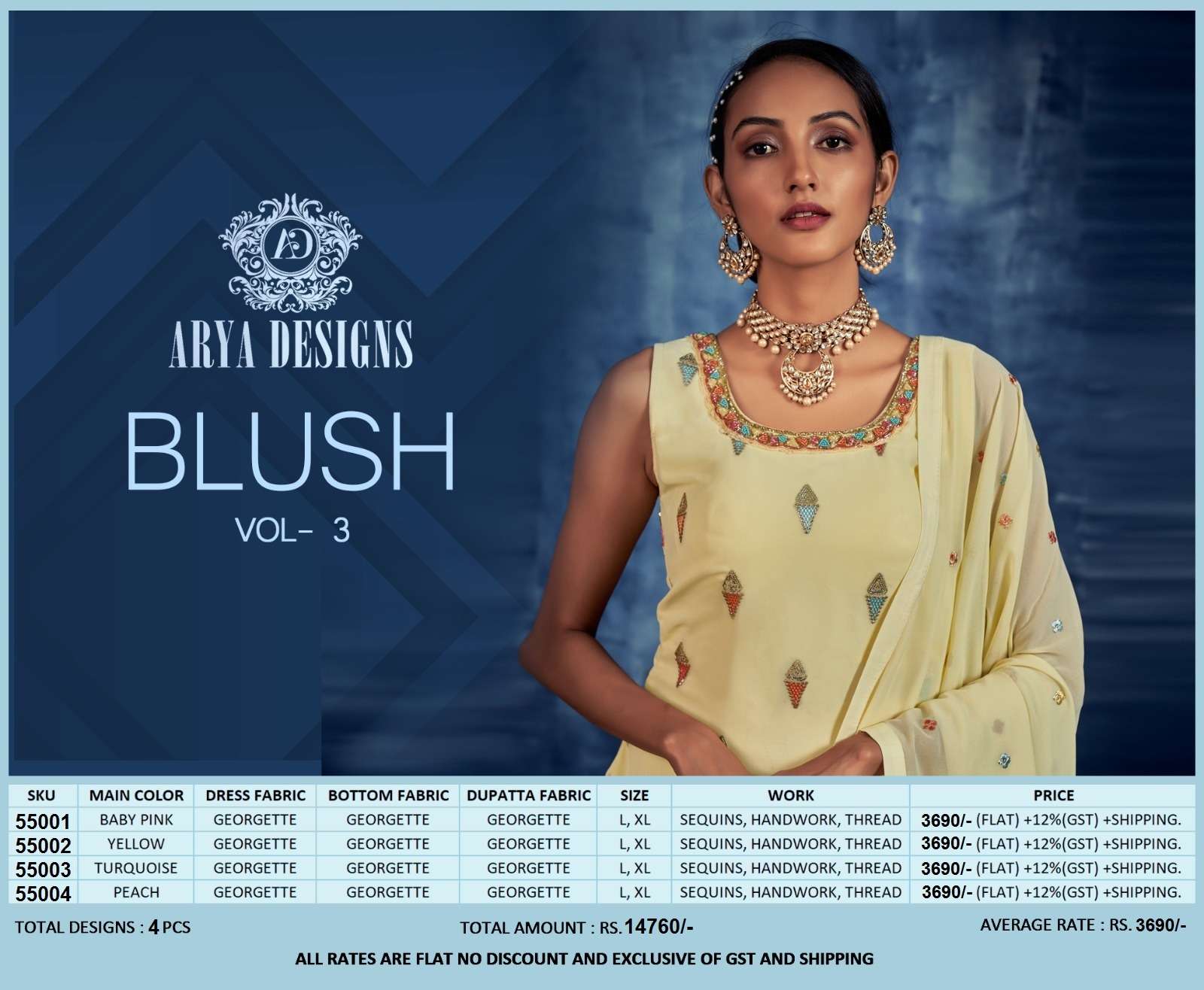 Hello... Greetings from ARYA DESIGNS..! We have introduced a New catalog "BLUSH VOL.3"