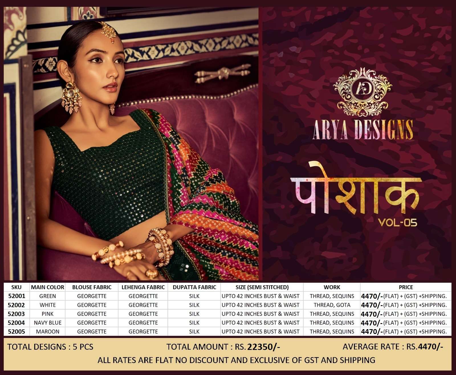 arya designs poshak vol 5 semi stitch designer wedding lehenga choli collection