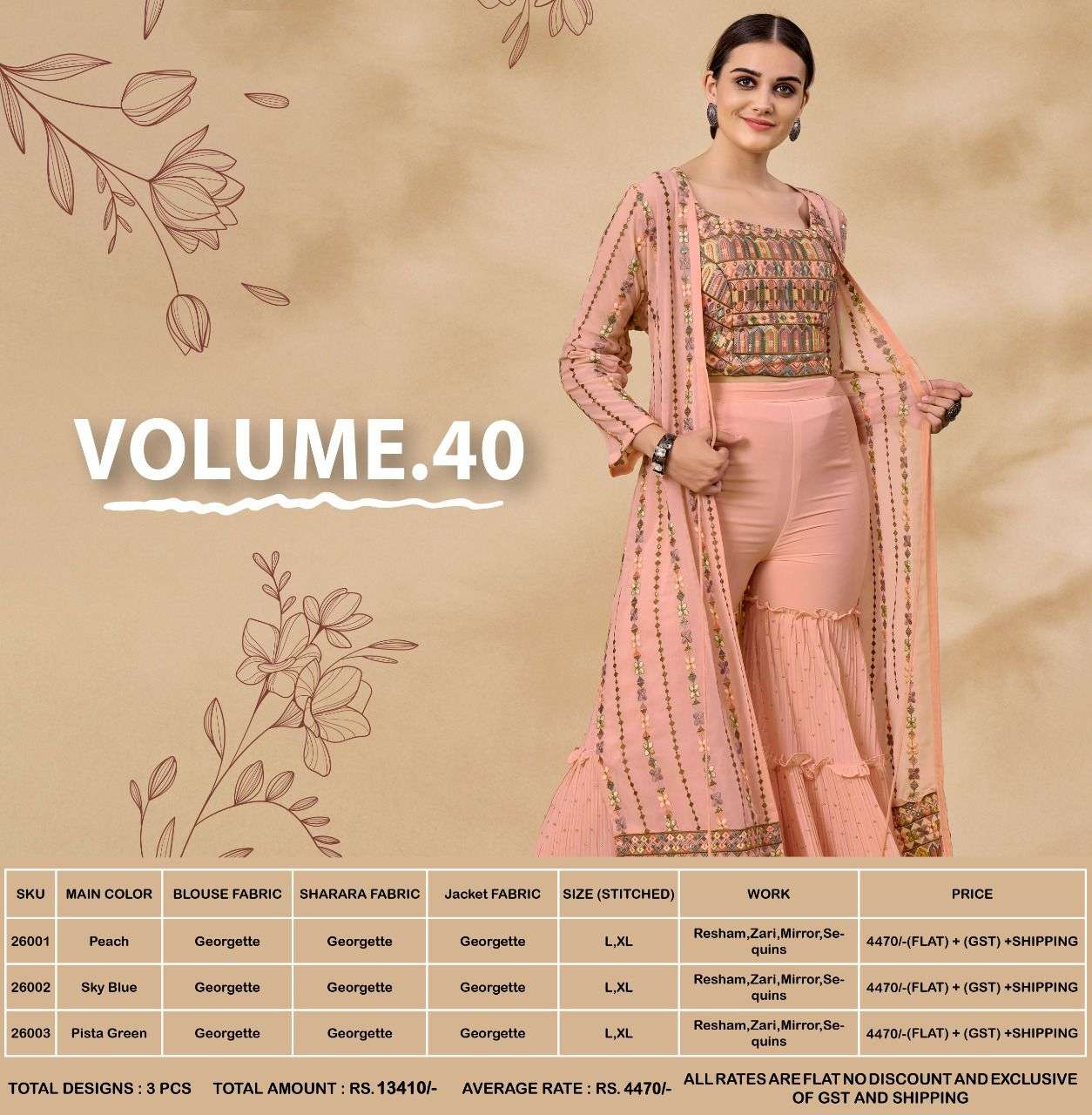 arya designs vol 40 26001-26003 series jump suit readymade collection