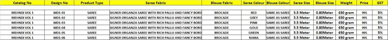 Dear Customer, We are launching our new Saree Catalog Brand - ASHIKA SAREES . Catalog Name : MEHNDI Fabrics - Organza With Border * Set to set * Rate 995/- only Pc - 06 GST 5 Percent Extra. Delivery 3-4 days Book your order now . |