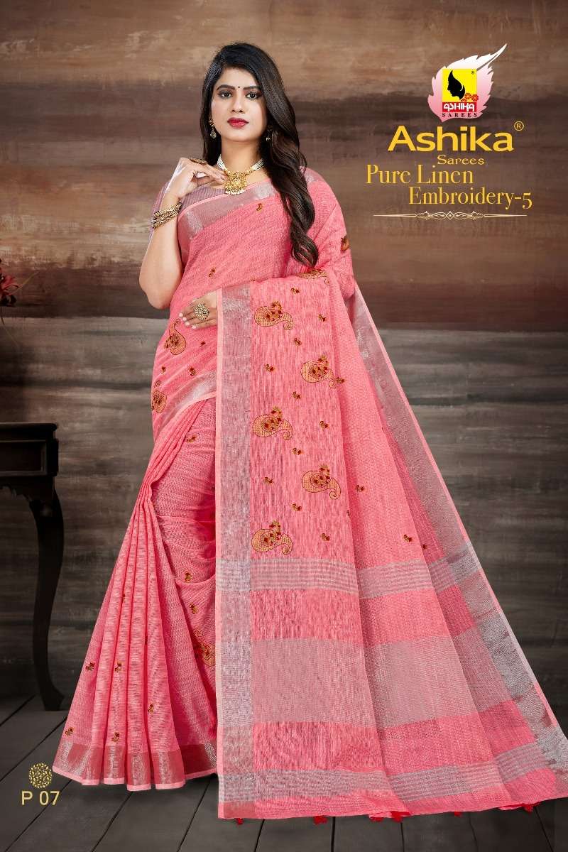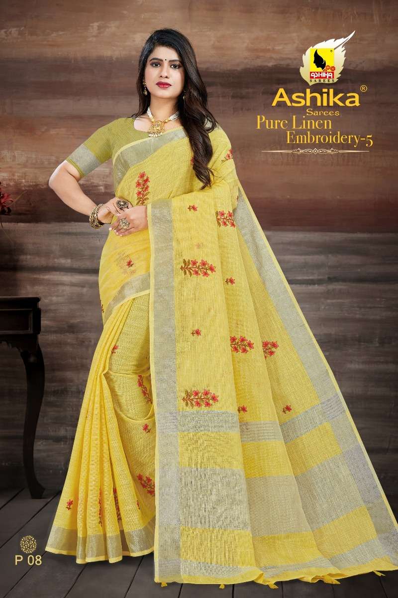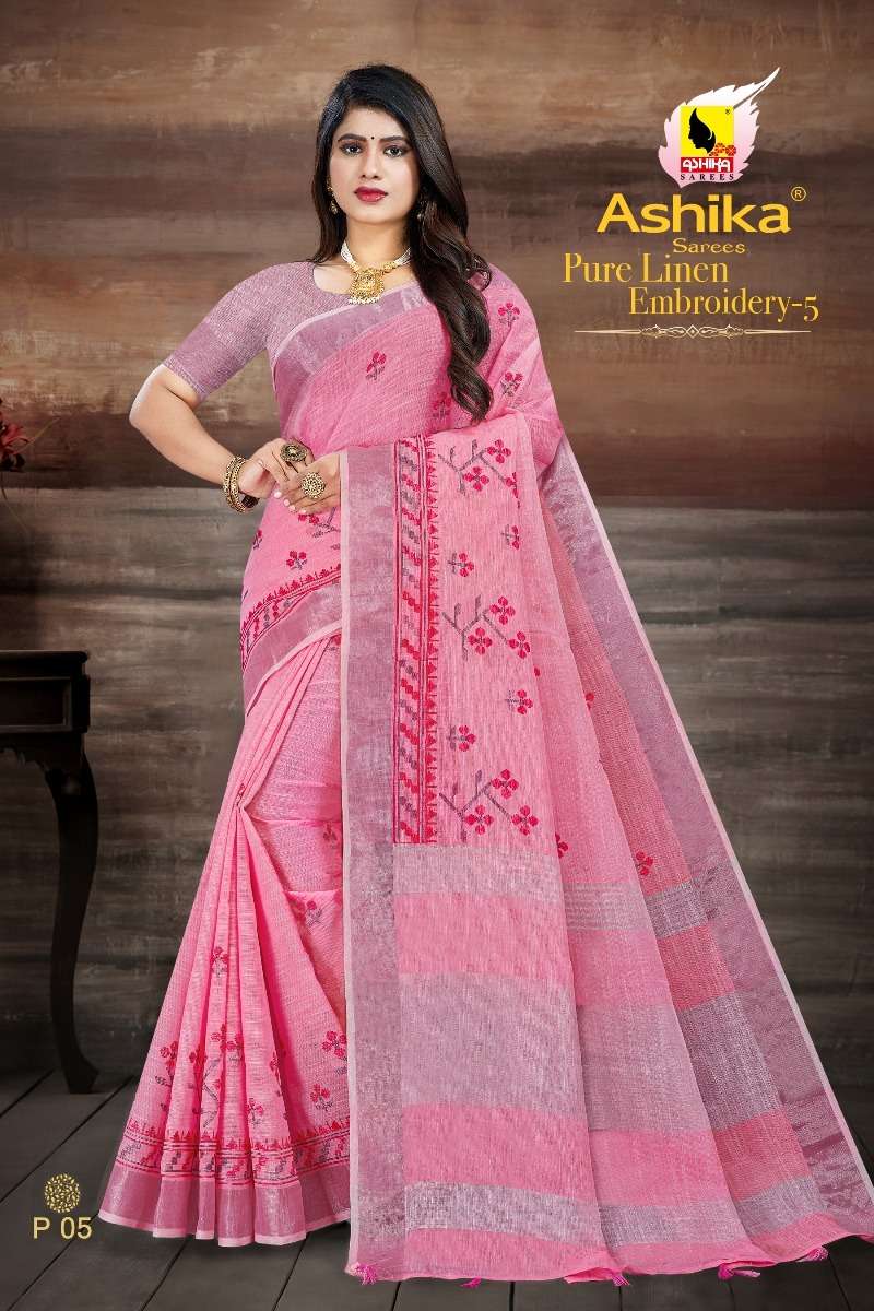 ashika pure linen embroidery vol 5 resham embroidery on sarees