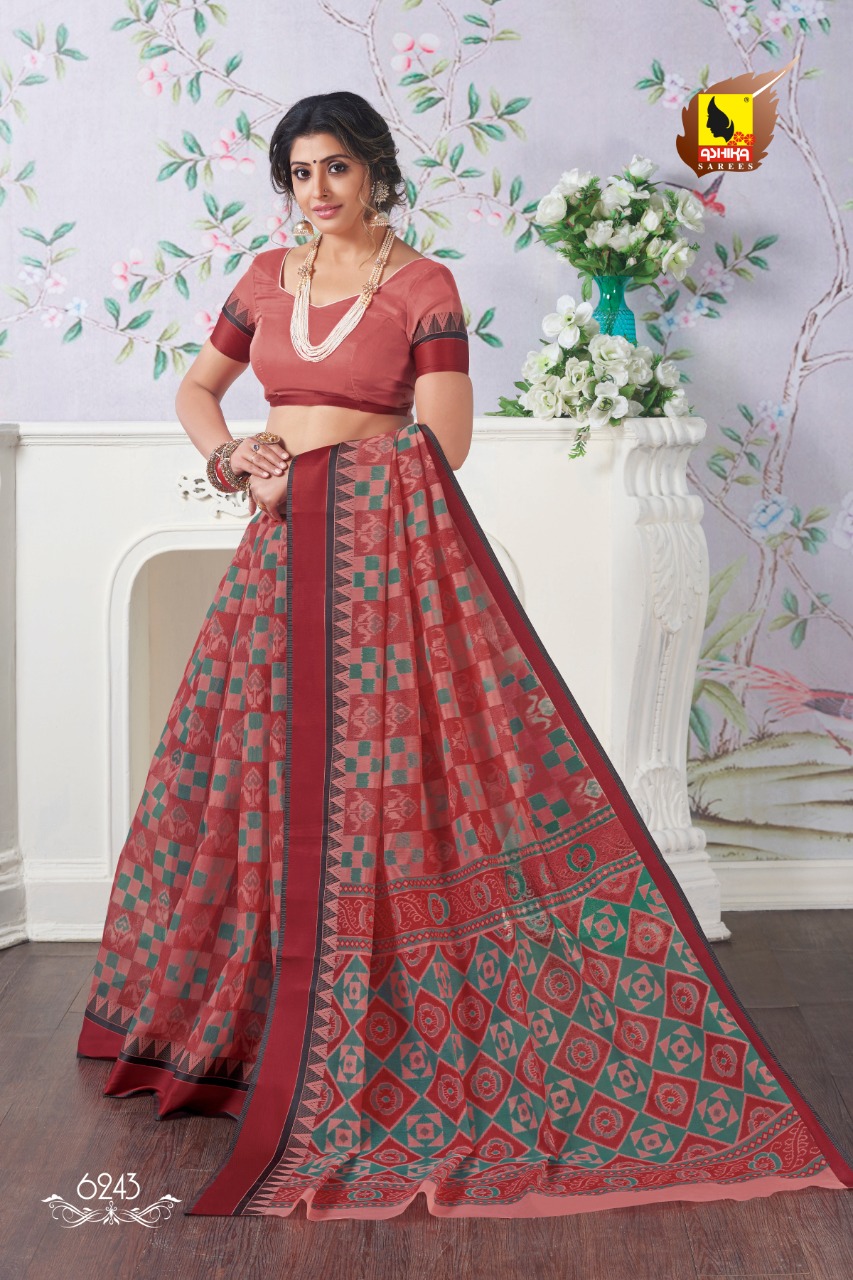 Ashika Saree Crystal Vol 7 Gadwal Cotton Casual Wear Saree Wholesale Exporter