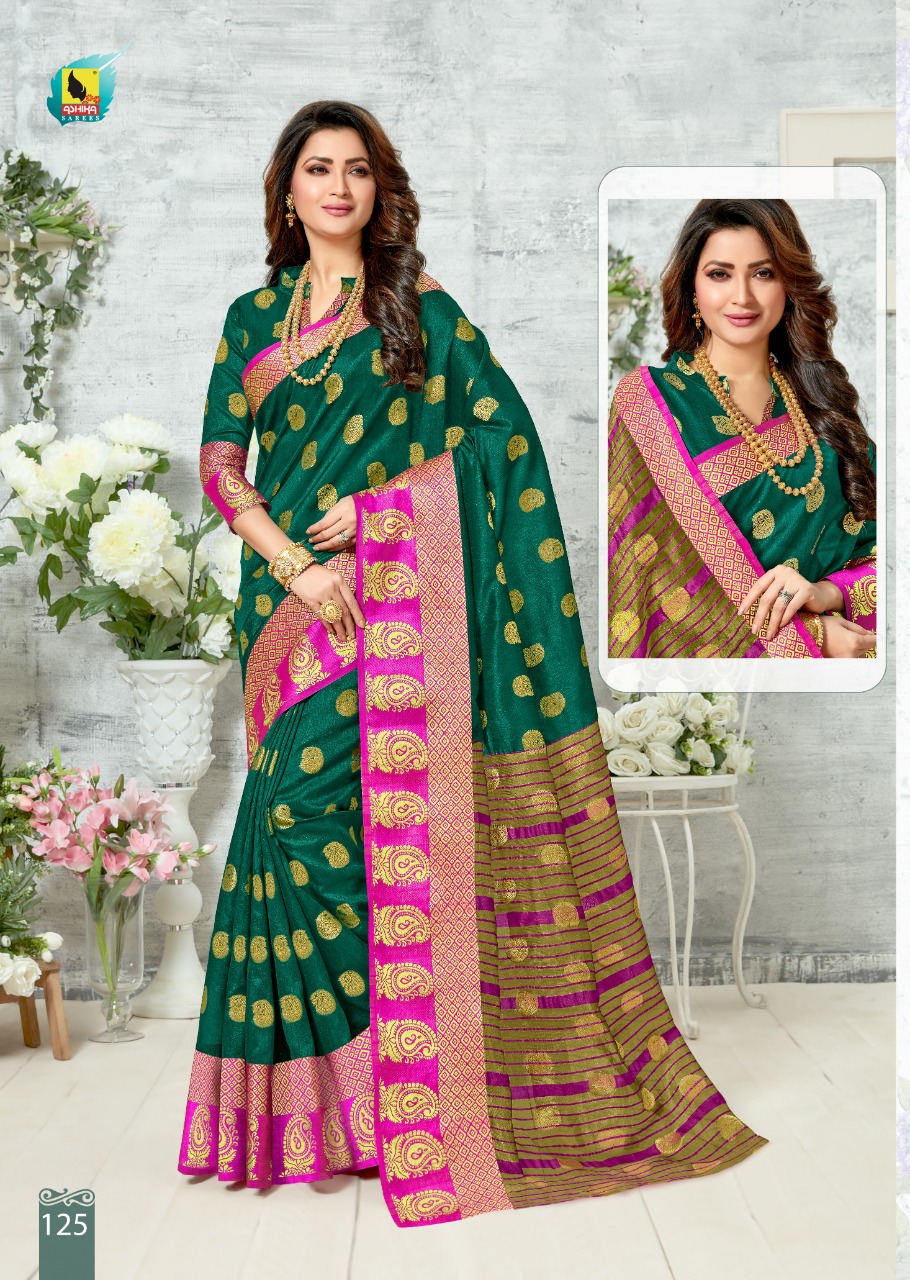 Dear Customer, We are launching our new Saree Catalog Brand – ASHIKA SAREES . Catalog Name : MANGO BUTTA Fabrics – CHANDERI SILK * Set to set * Rate 660/- only Pc – 10 GST 5 Percent Extra. Delivery 3-4 days Book your order now . |