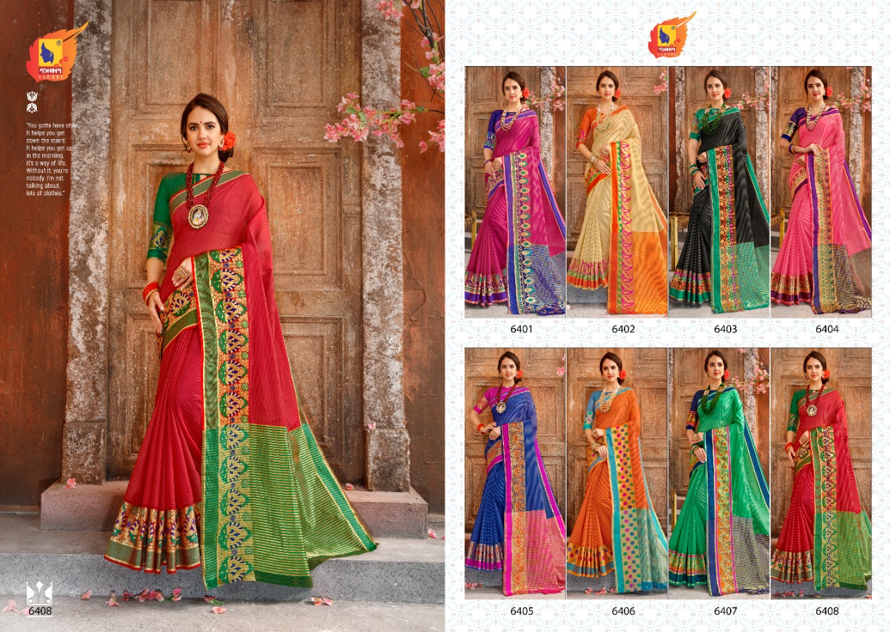 Ashika Saree Presents Latest Collection Launched on 16-01-2020. Presenting Beautiful collection of 8 PCS with Unstitched .