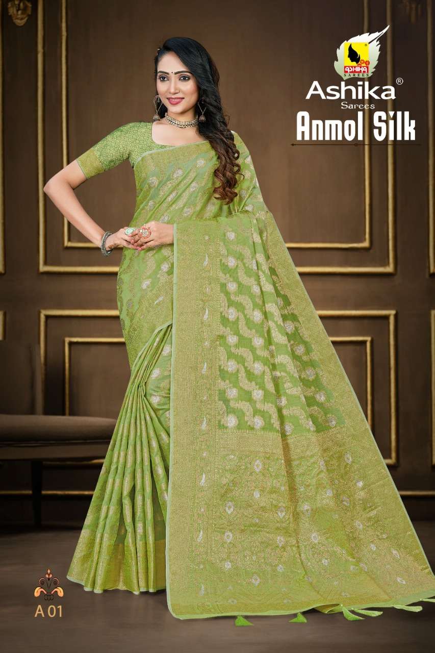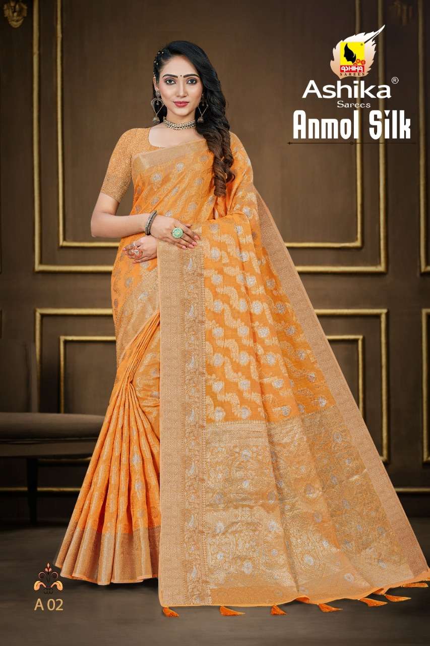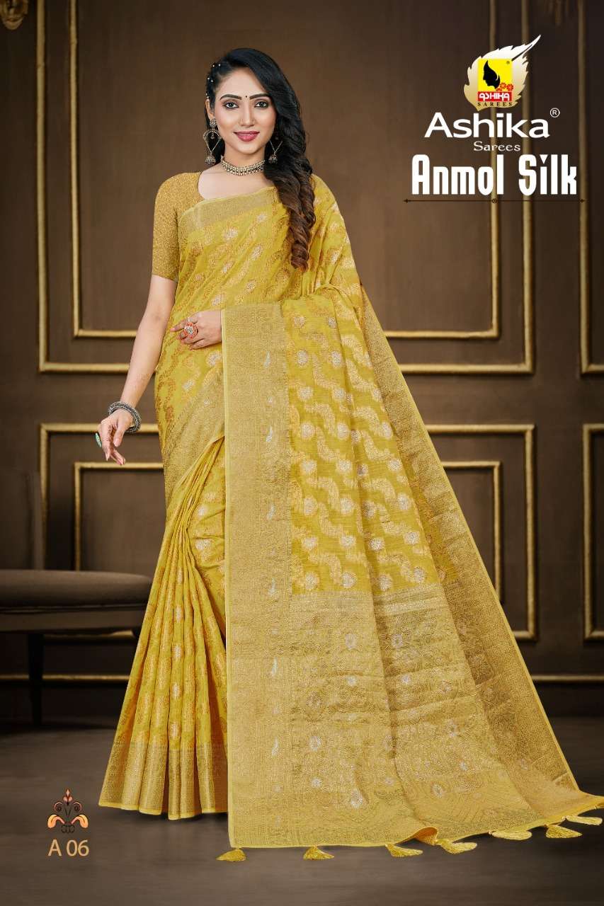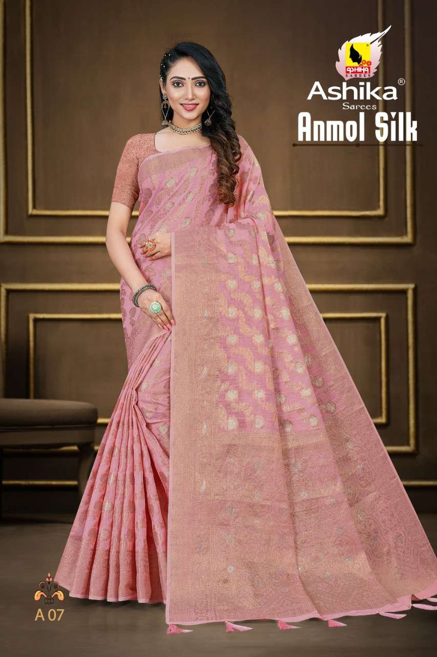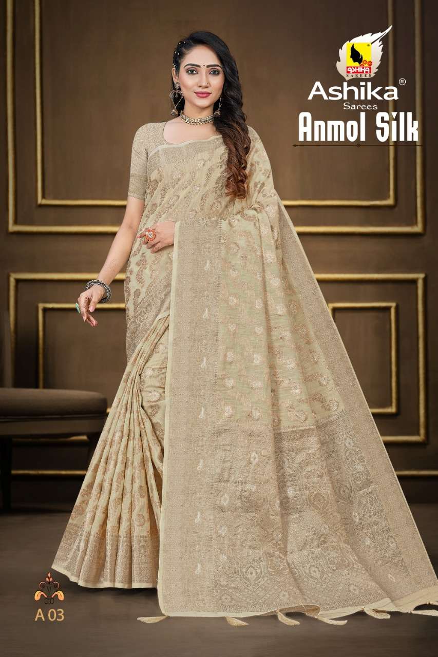 ashika sarees anmol silk woven cotton saris at best rate kc surat