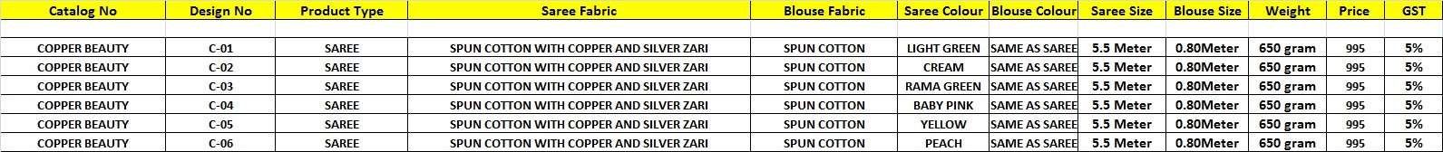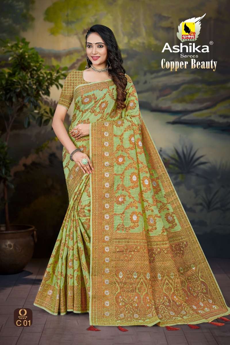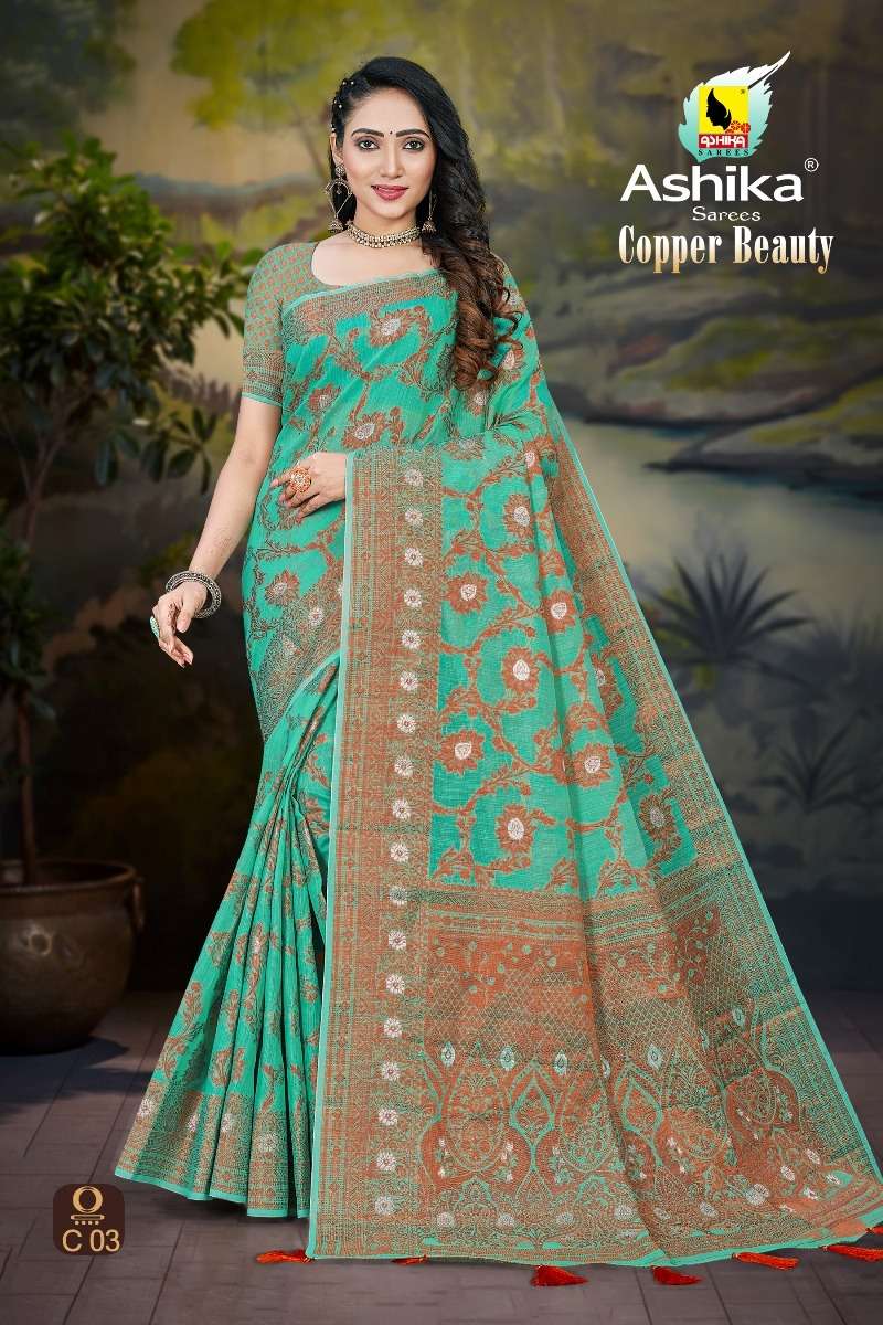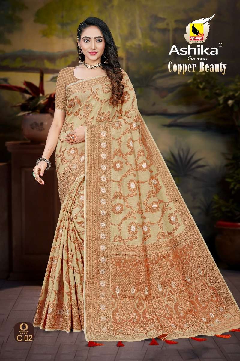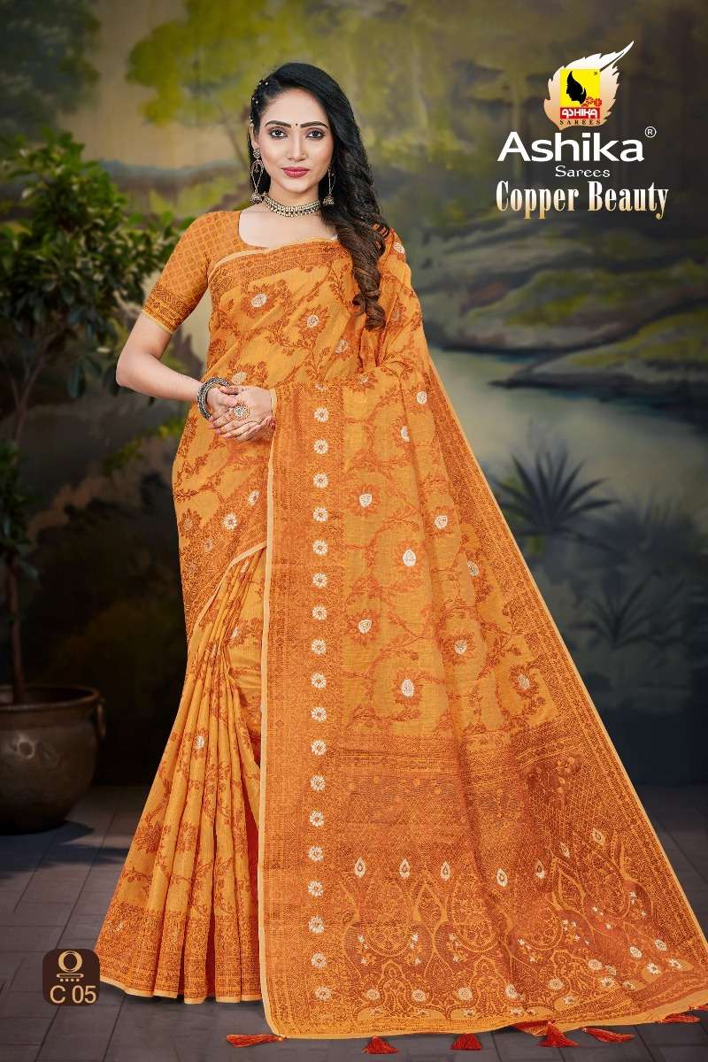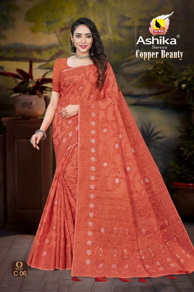 ashika sarees copper beauty spun cotton wholesale saree store
