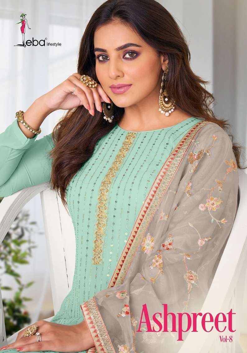 ashpreet vol 8 by eba lifestyle chinon georgette embroidery readymade fancy designer suit