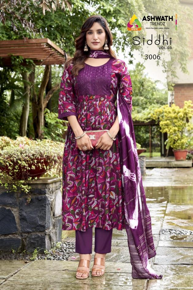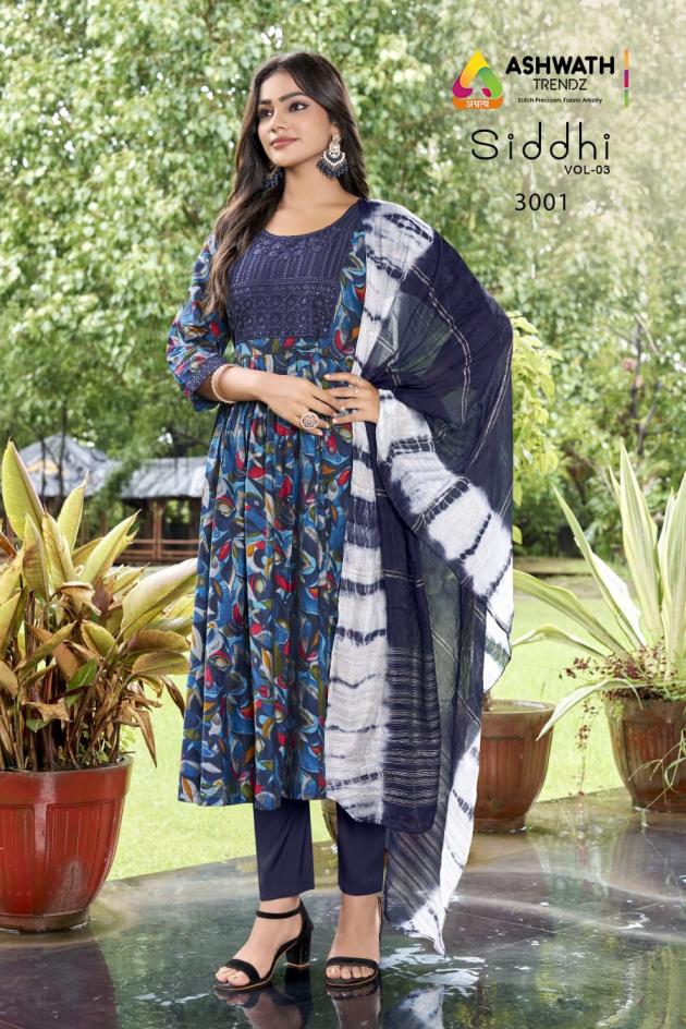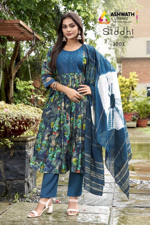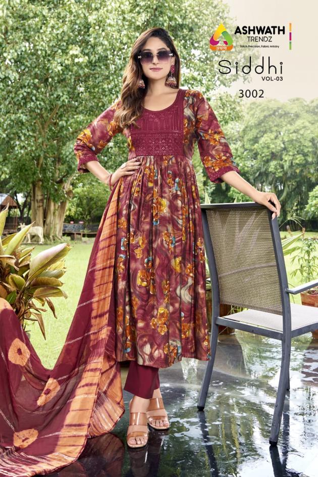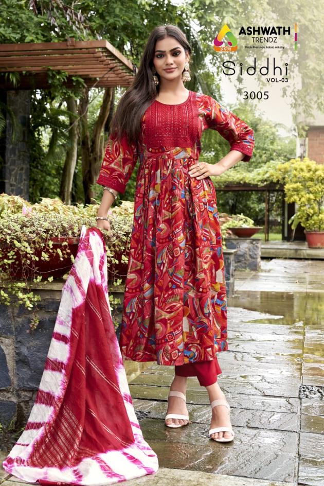 ashwath trendz siddhi vol 3 roman print fully stitch combo set 3pcs dress