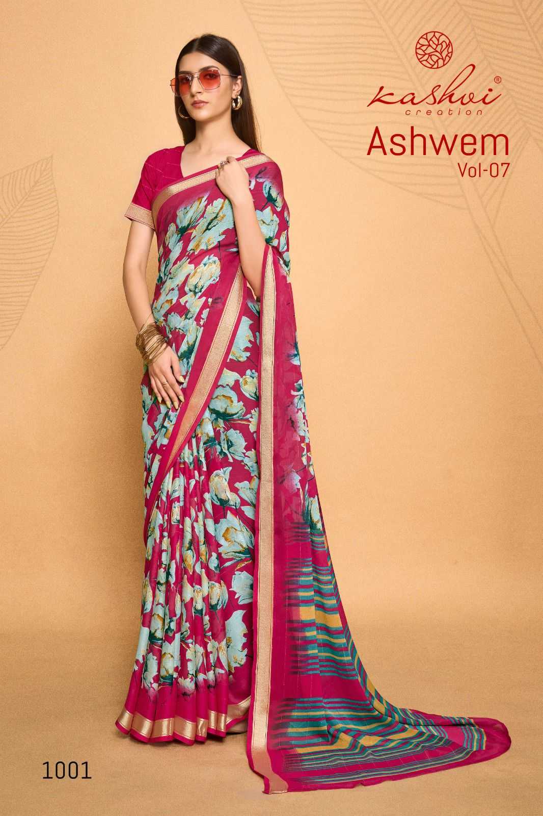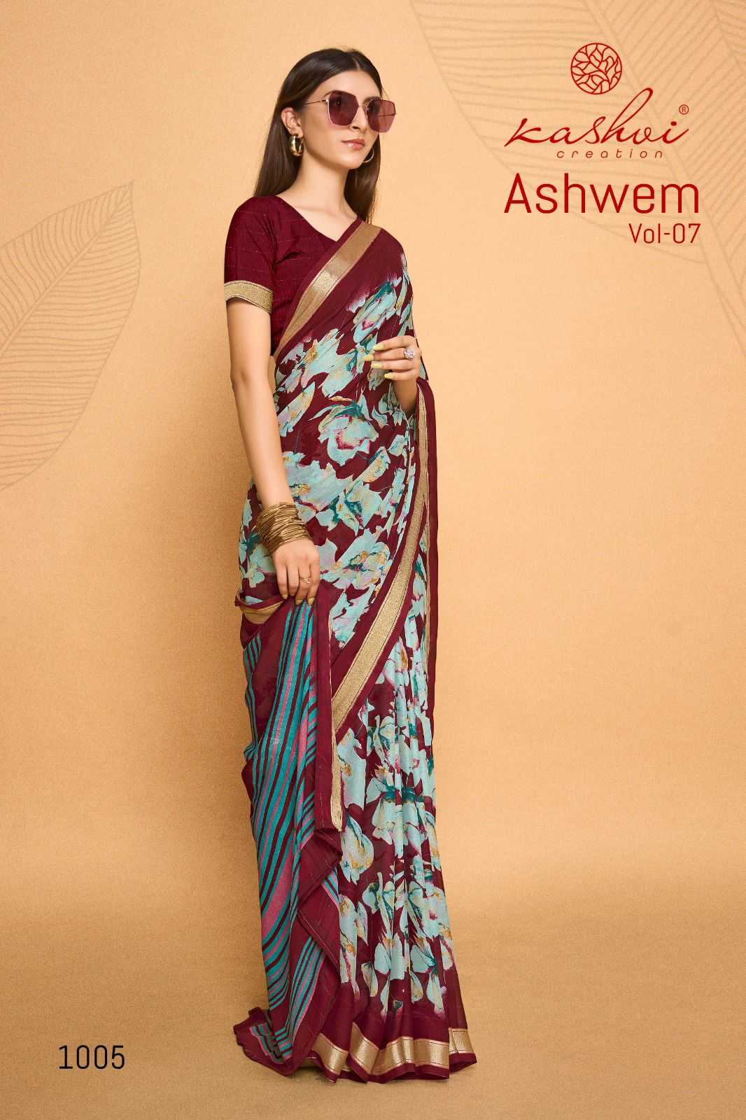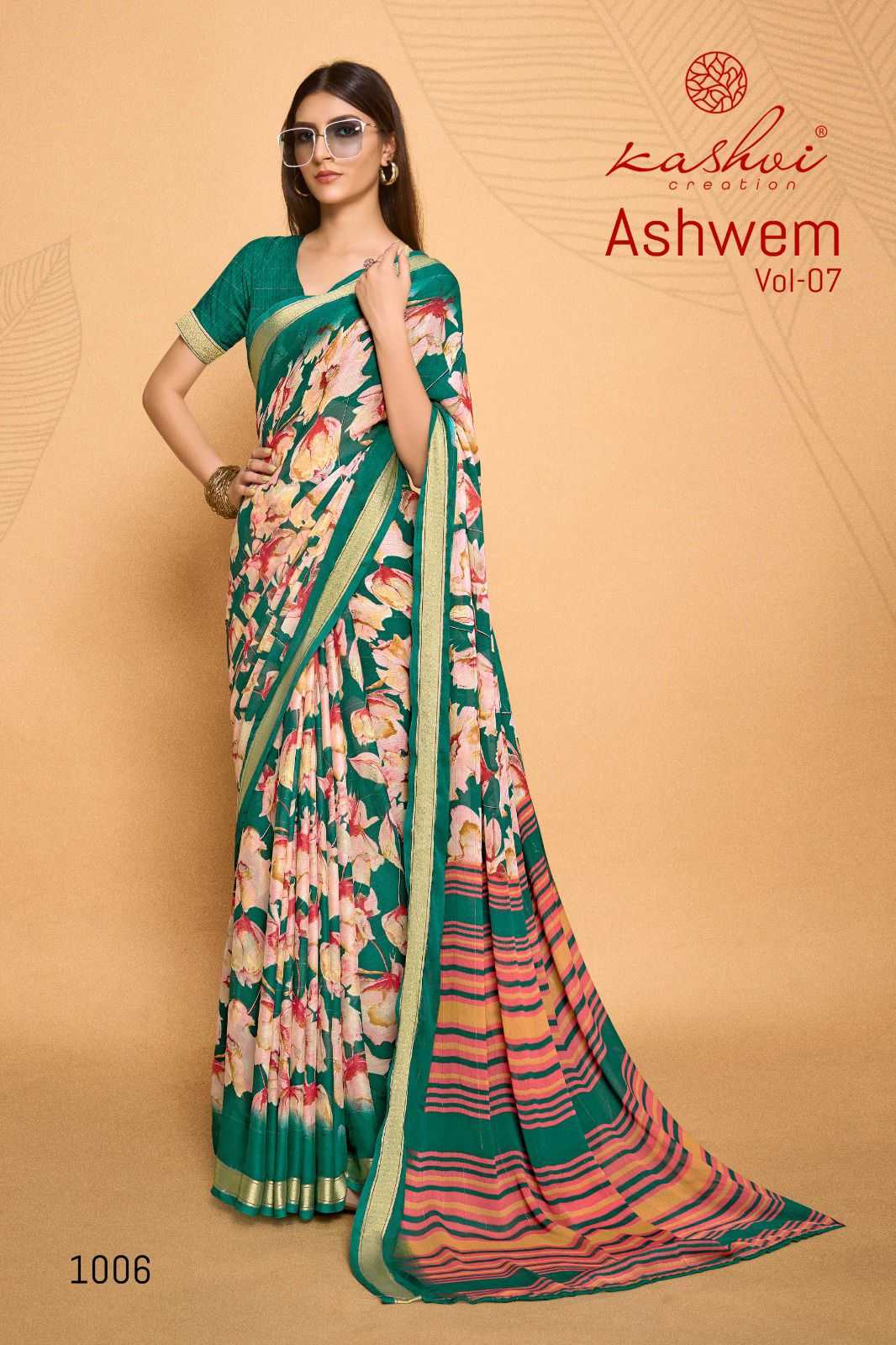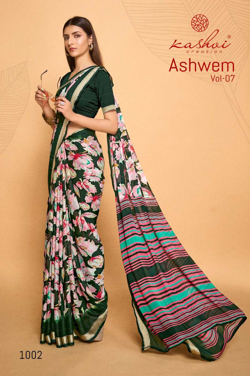 ashwem vol 7 by kashvi dull moss fancy saree wholesaler