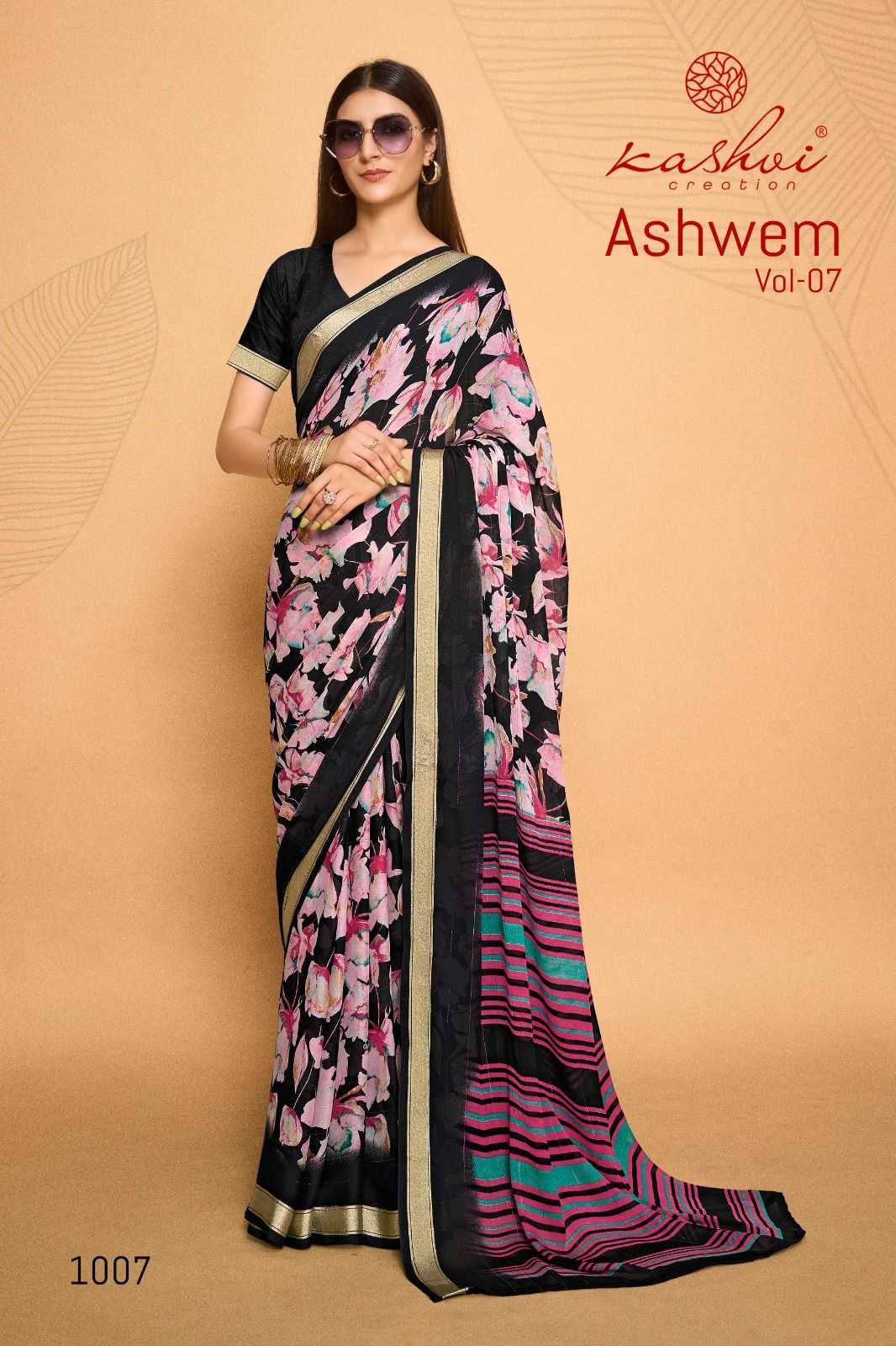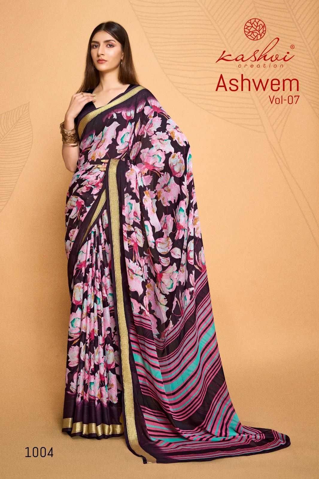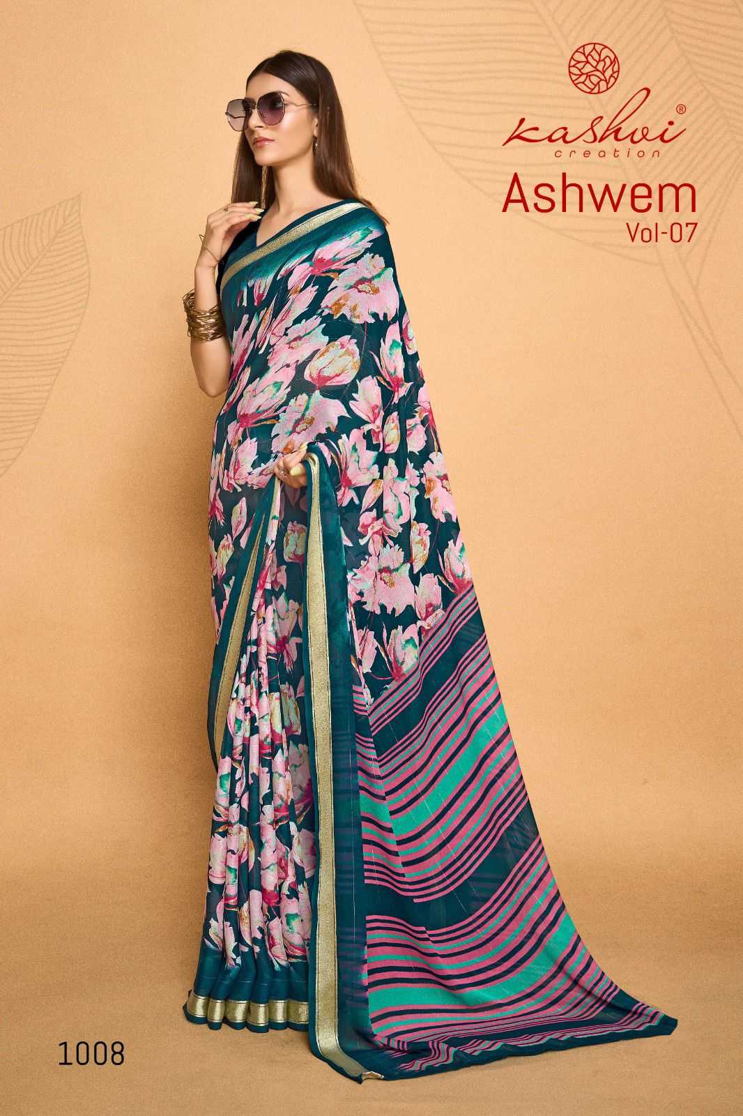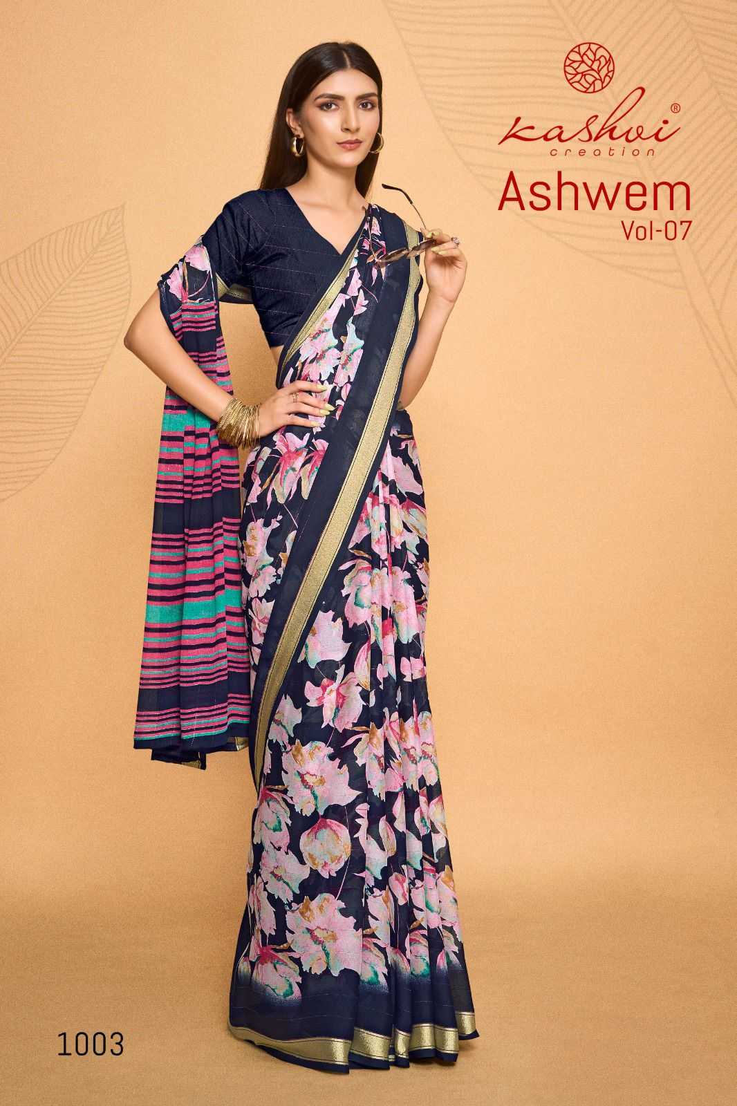 ashwem vol 7 by kashvi dull moss fancy saree wholesaler