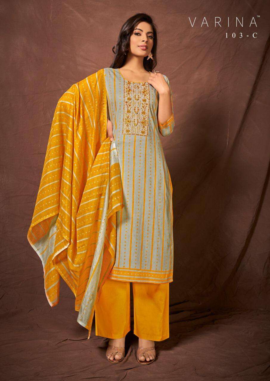 Varina Presents Latest Collection Launched on 12-04-2021. Presenting Beautiful collection of 4 PCS with Unstitched .