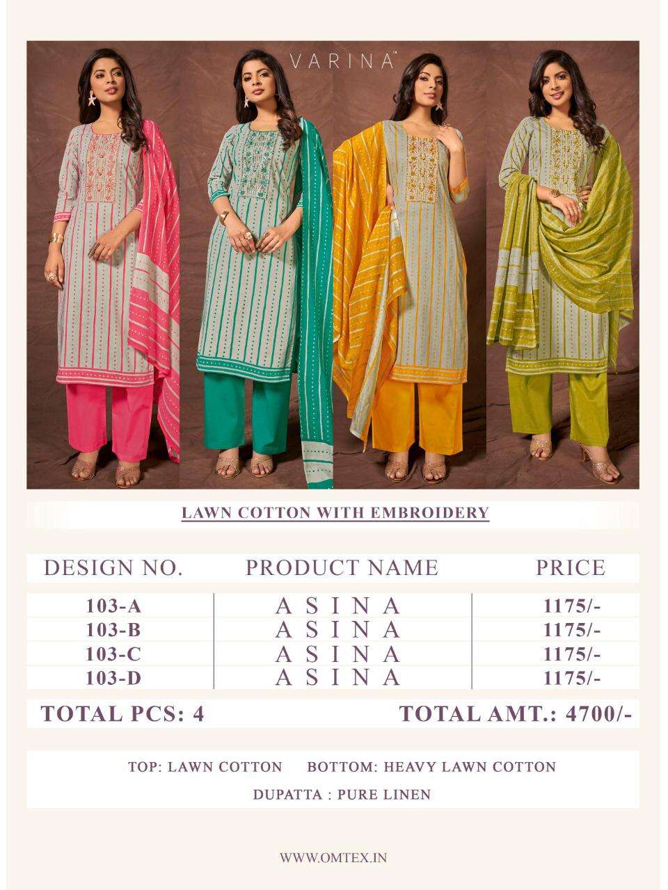 asina by varina omtex lawn cotton summer wear ladies salwar kameez