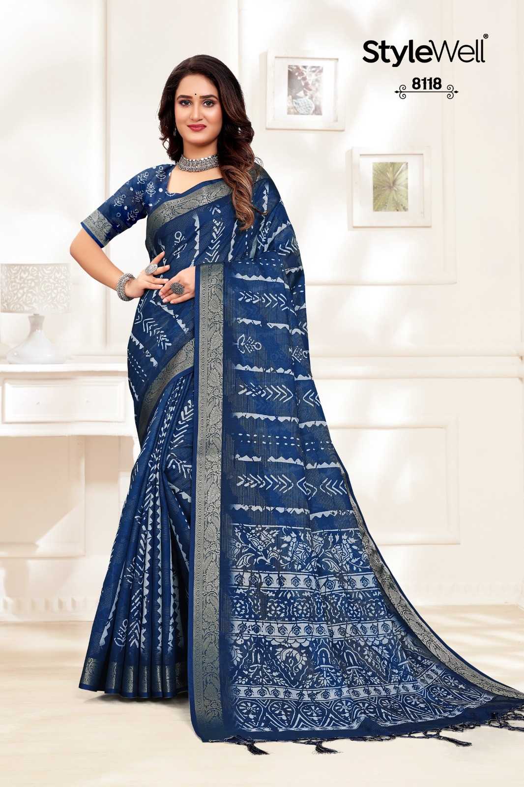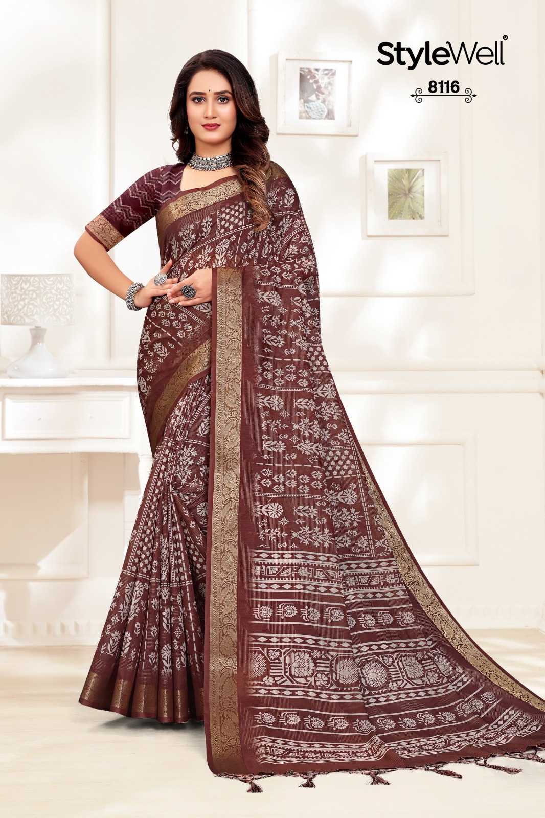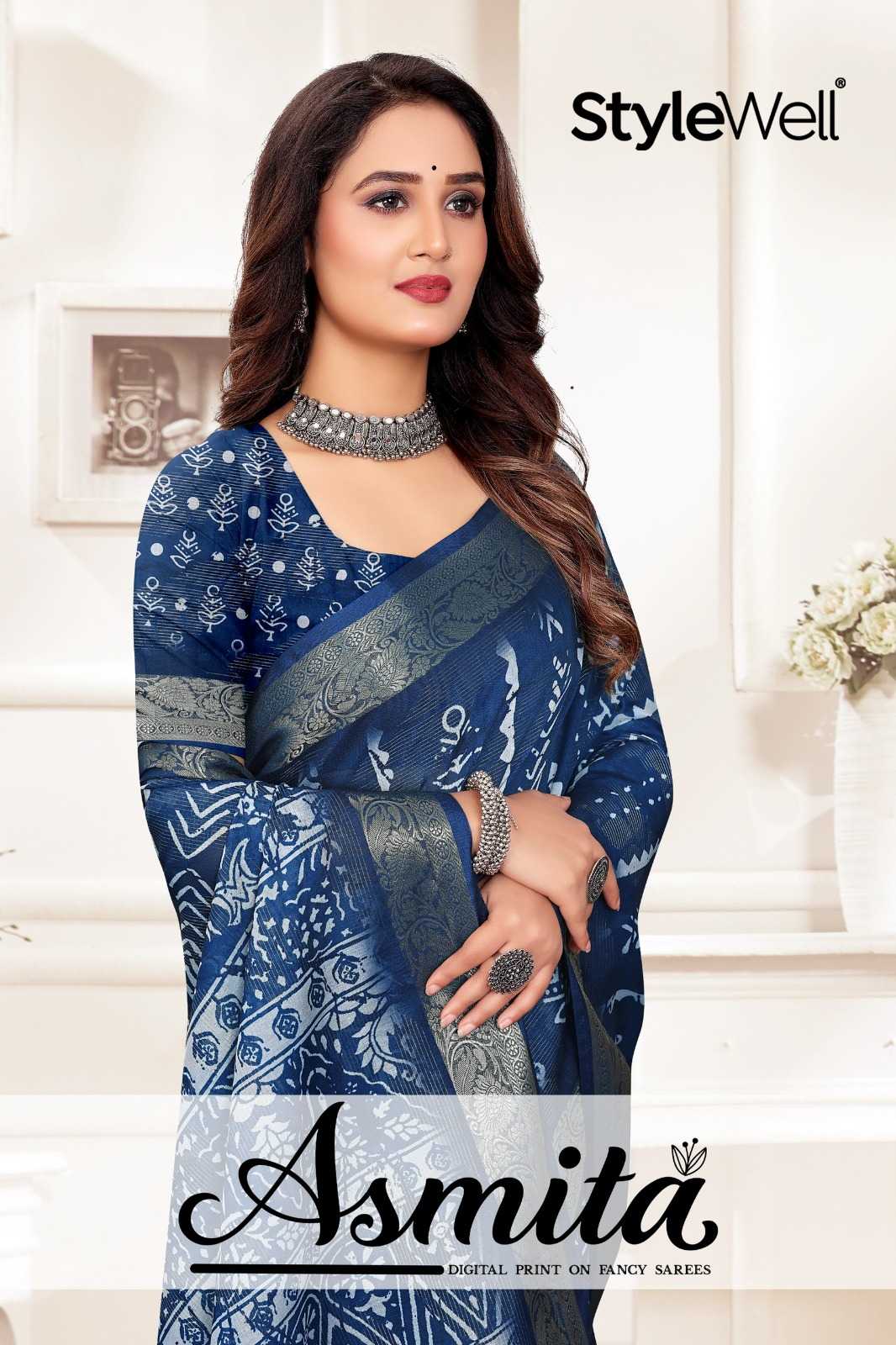 STYLEWELL 🌻 ASMITA 🌻 RATE - ₹950/- FABRIC - Digital Print On Fancy Viewing Saree Set - 9 pc |