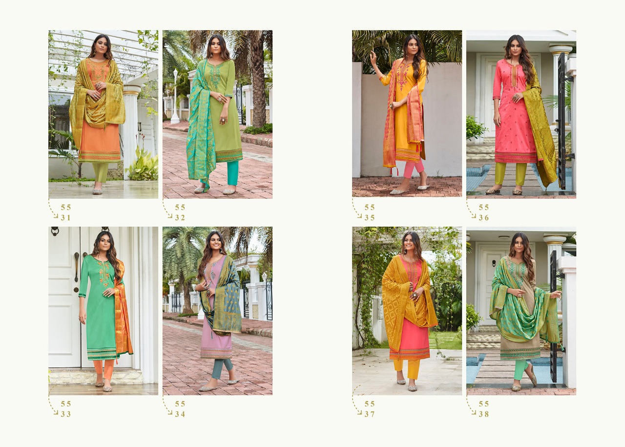 Catalog name: *Asopalav Vol - 14 🔸 Fabric Details 🔸 ▪Top:- Jam Silk with Embroidery Work ▪Bottom:- Cotton ▪Dupatta:- Banarasi Silk Rate. - 899/- Set to set. GST 5 Percent Extra ▪Total Design:- 8 ⏰Dispatching - Today |
