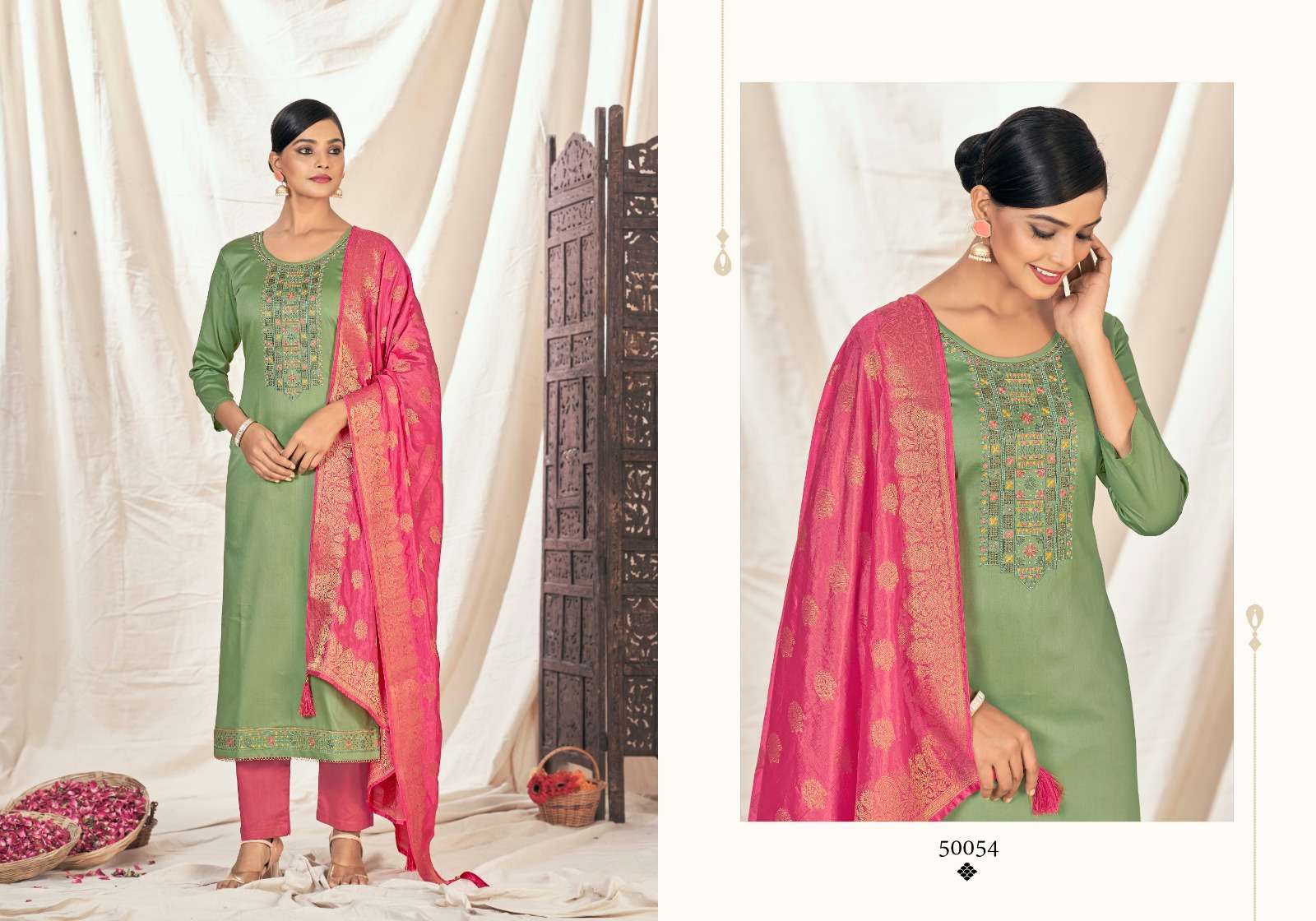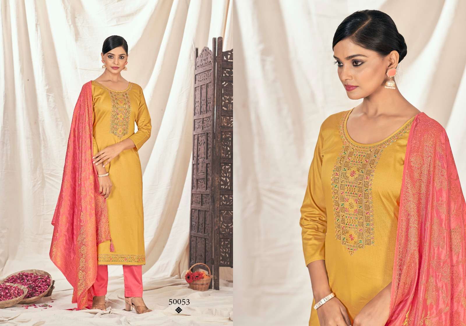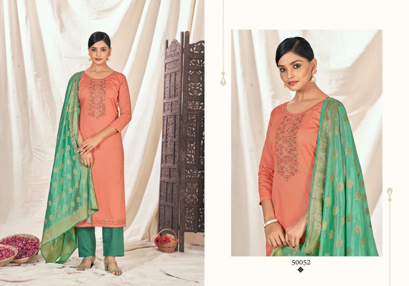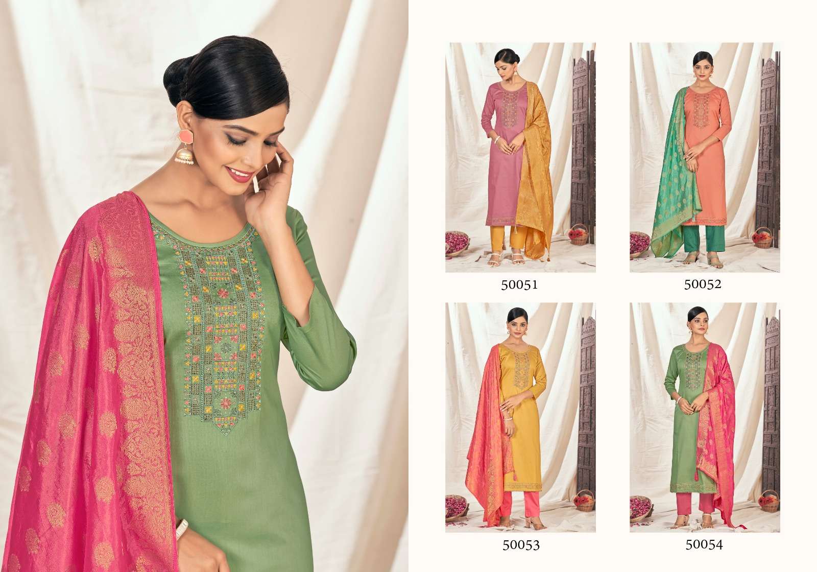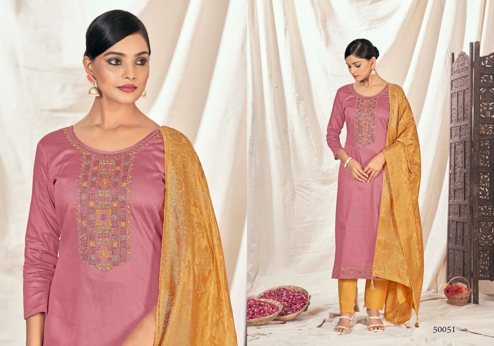 asopalav vol 4 by panch ratna adorable neck work dress material with banarasi silk dupatta