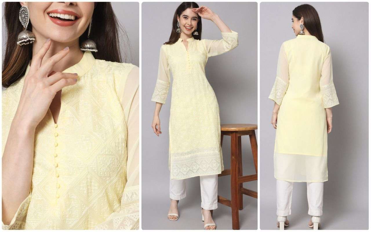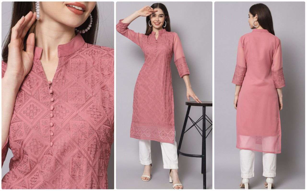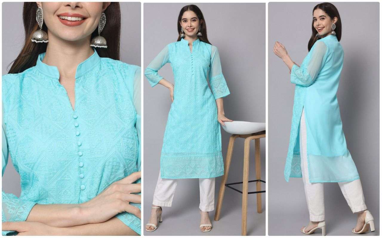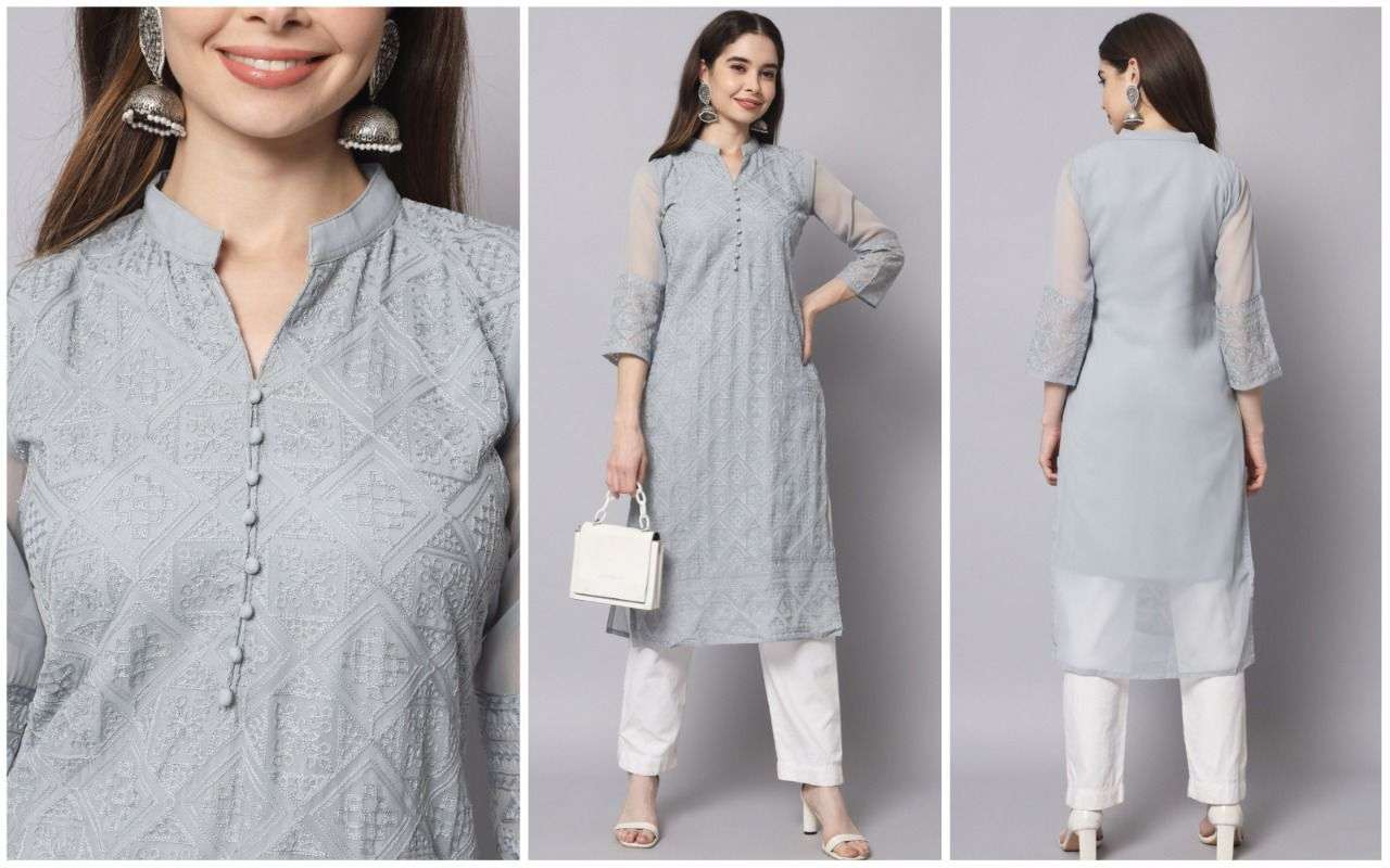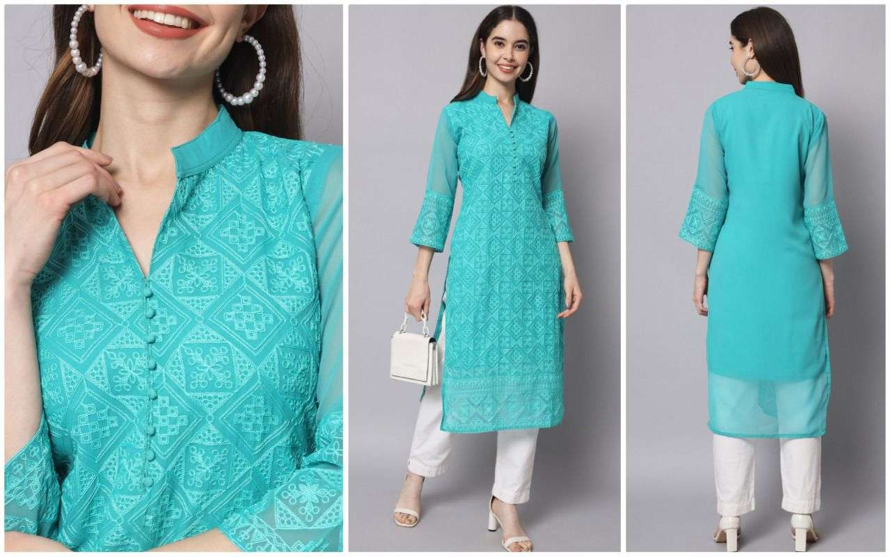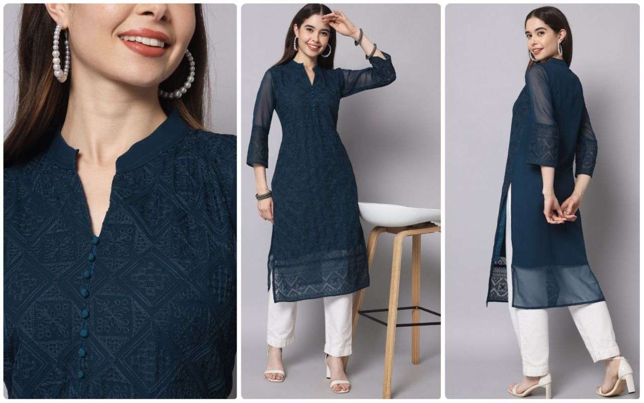 Atlanta 4 Georgette Lucknowi Chikankari Embroidery Kurti . Ready to wear Kurti
