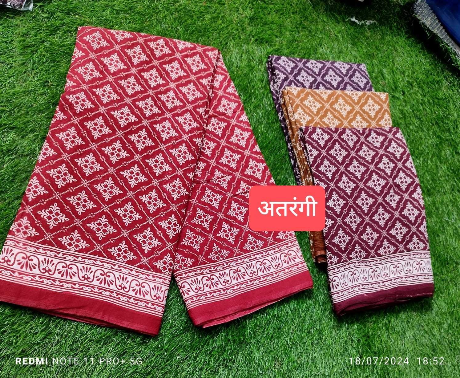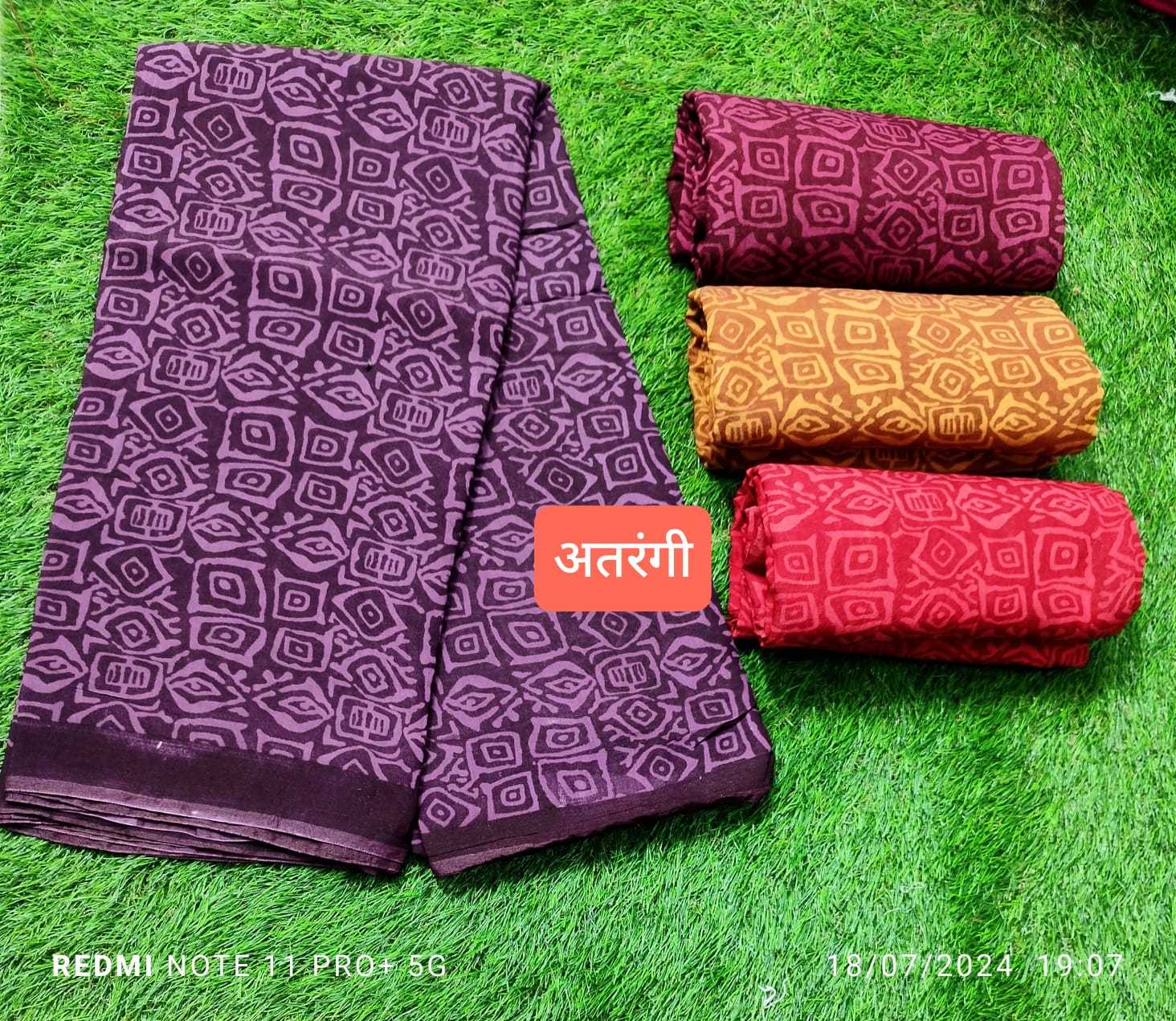 atrangi by kala silks adorable unique colours cotton hand print saree with blouse