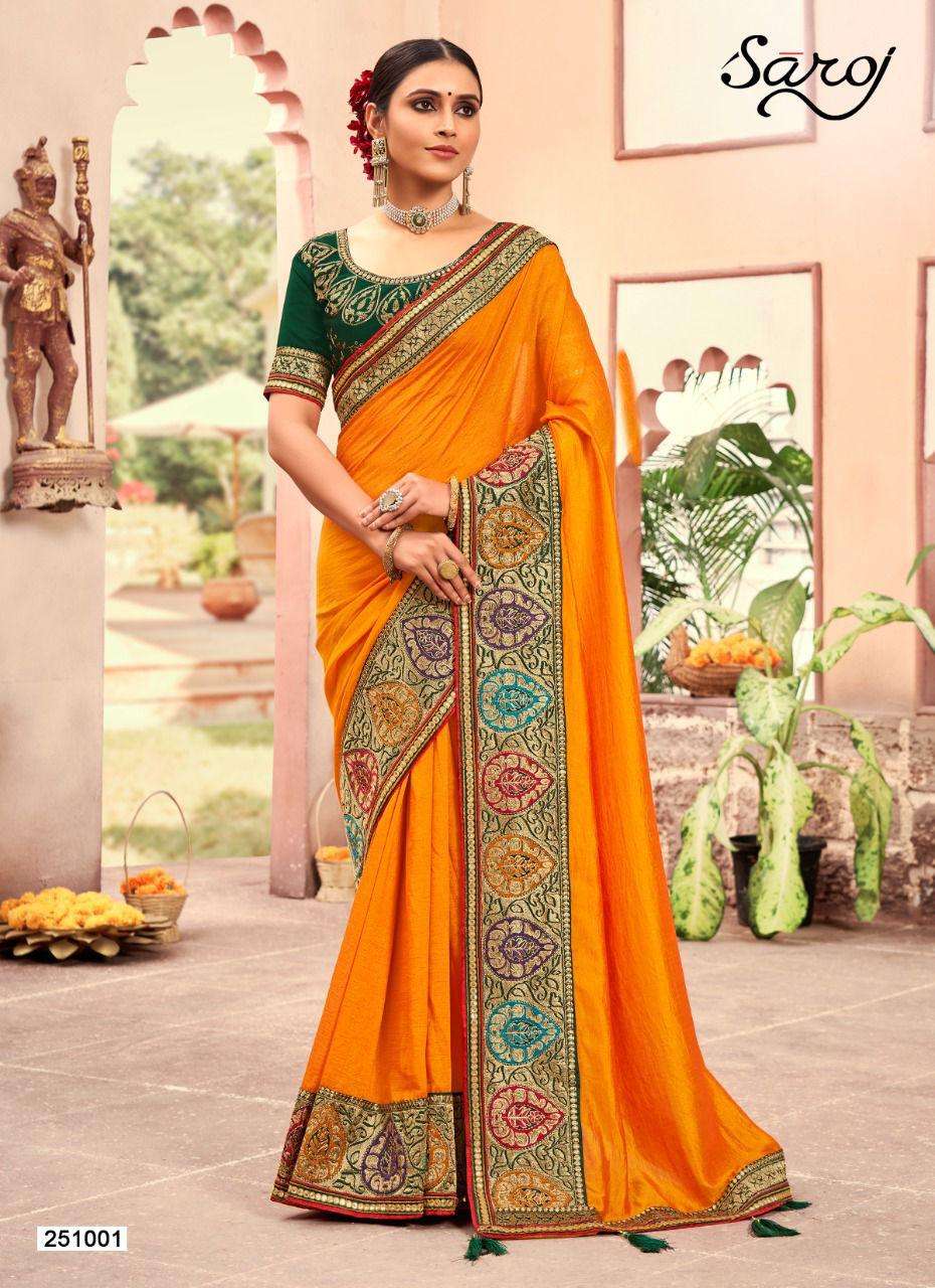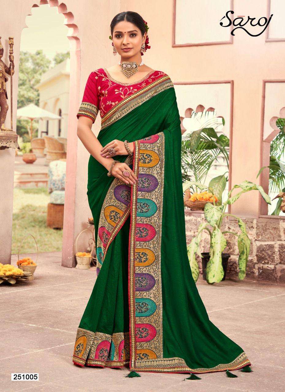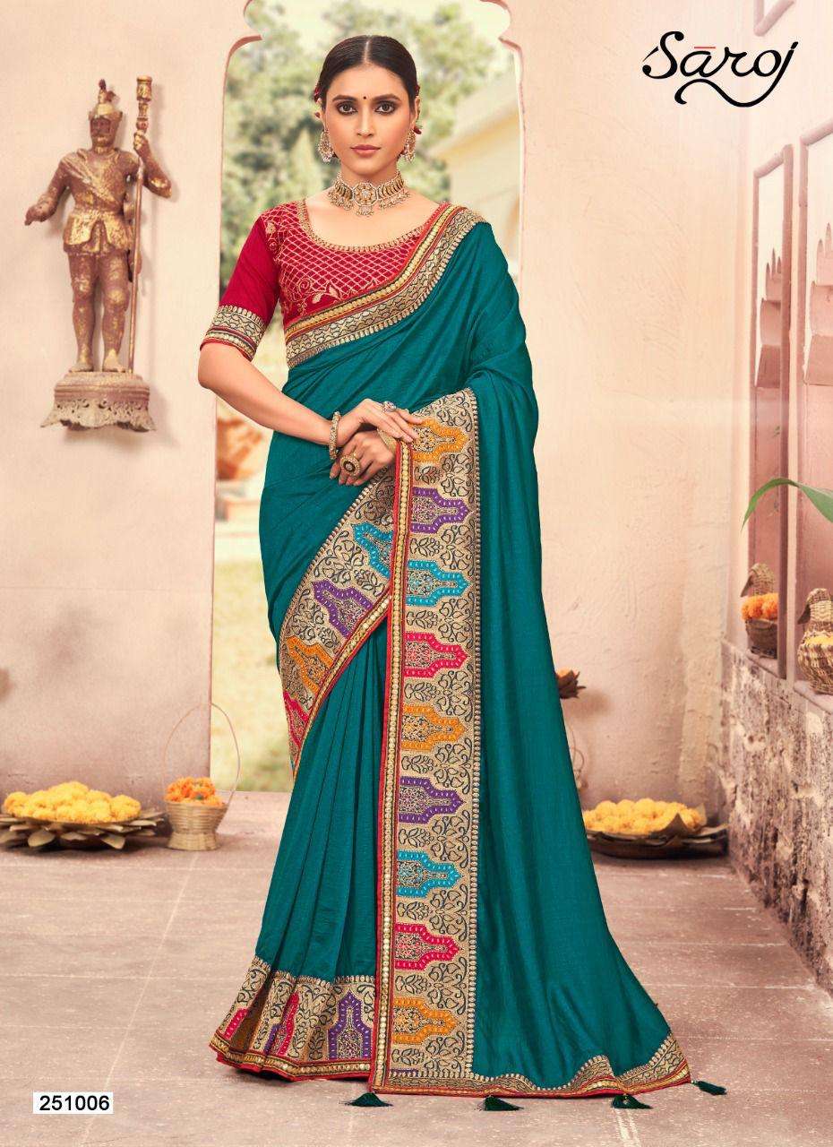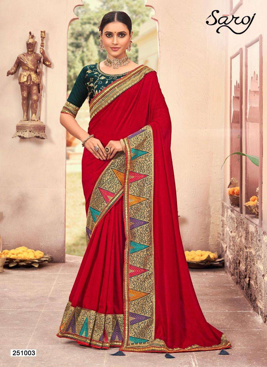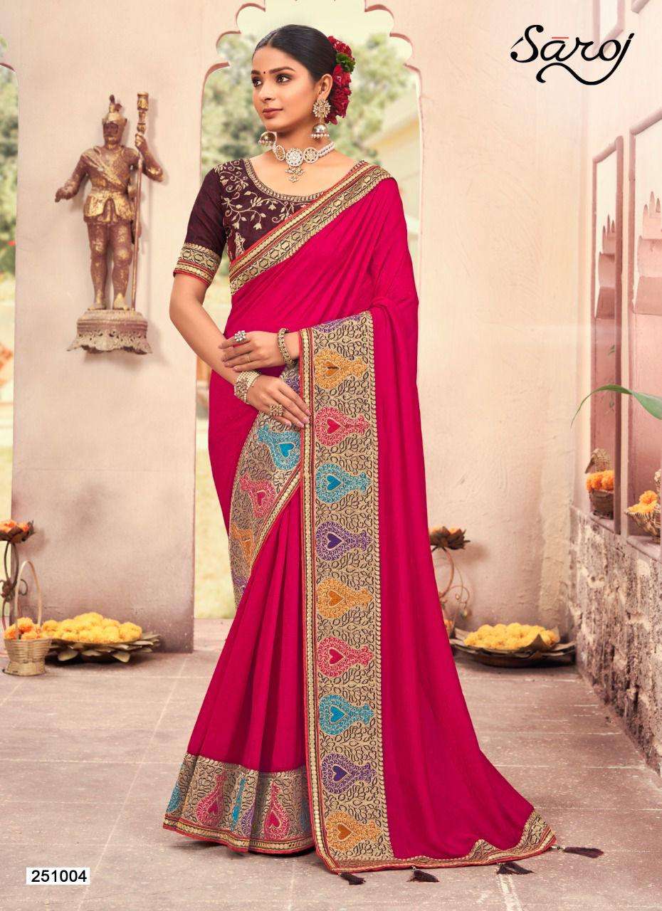 Brand - saroj . Fabric: Soft Vichitra Silk with Heavy Border. |