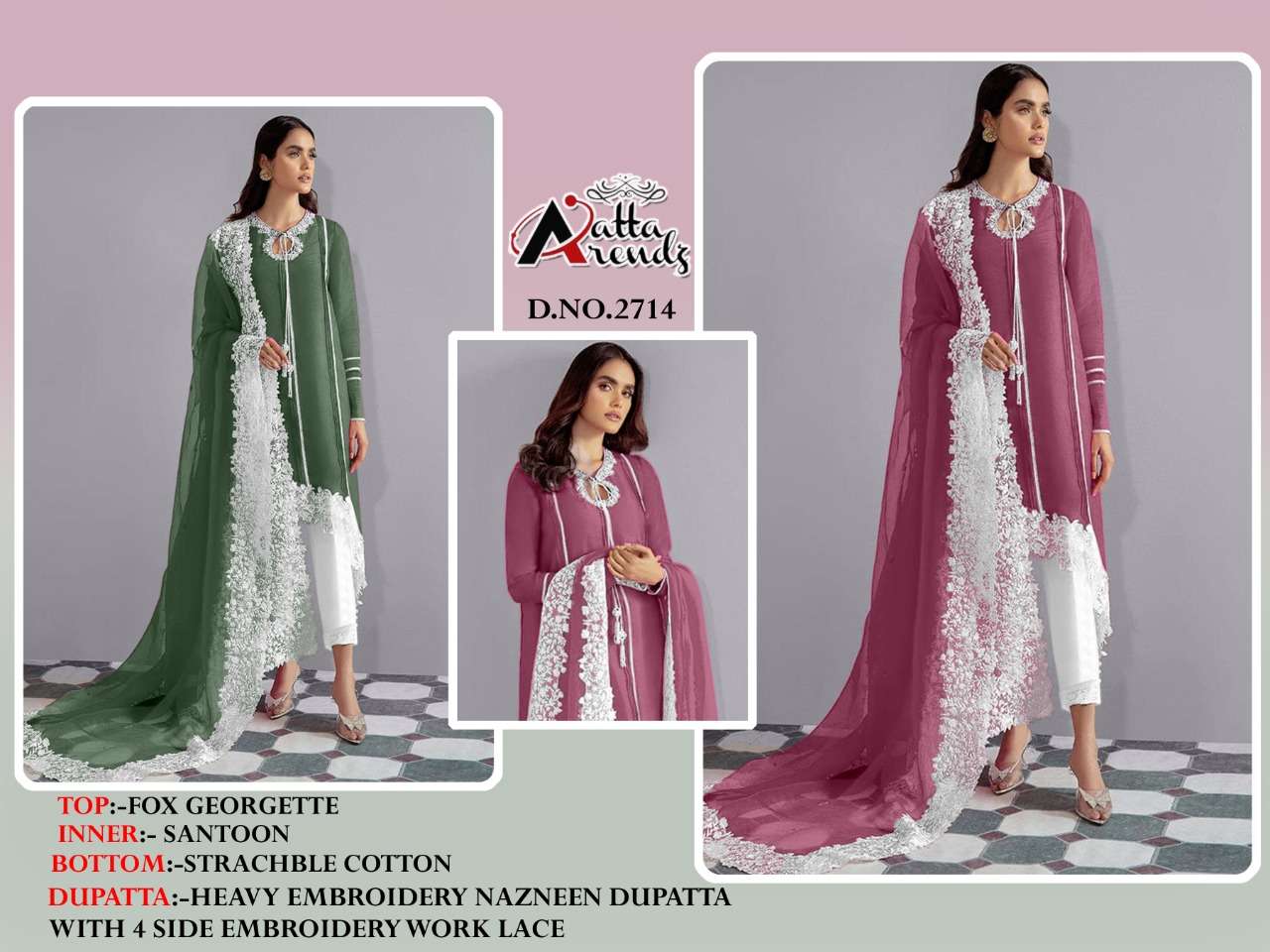 atta trendz 2714 georgette pakistani full stitch 3 piece collection