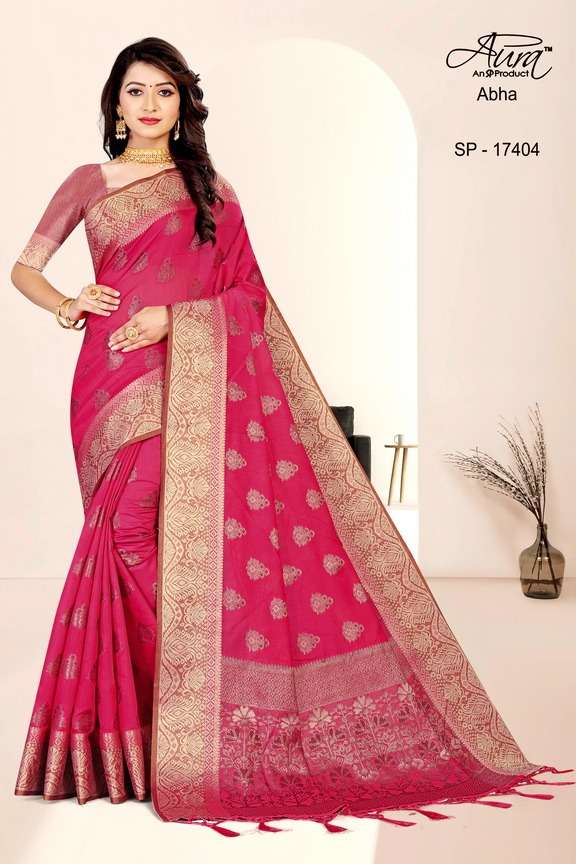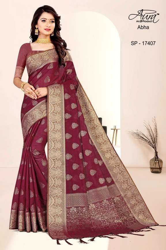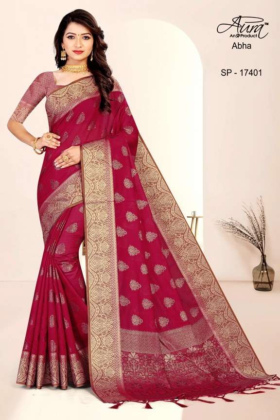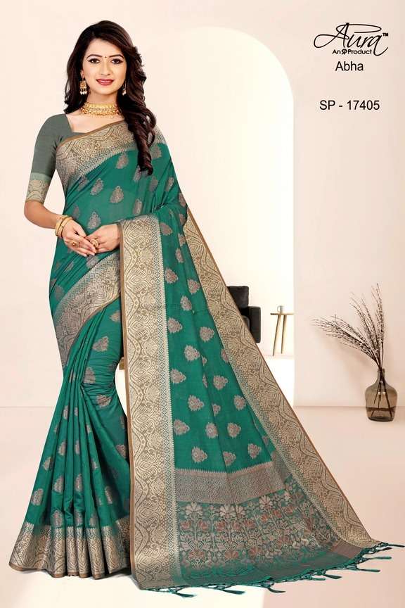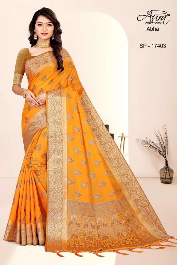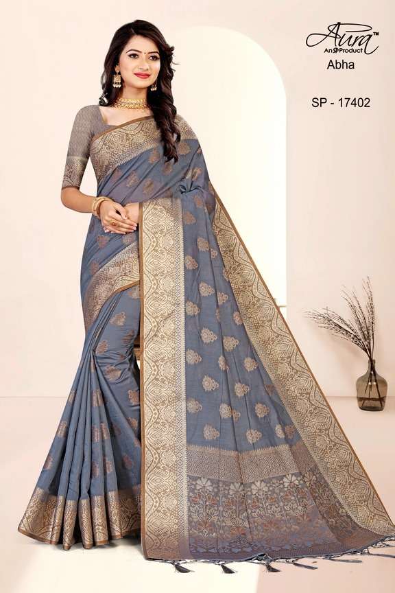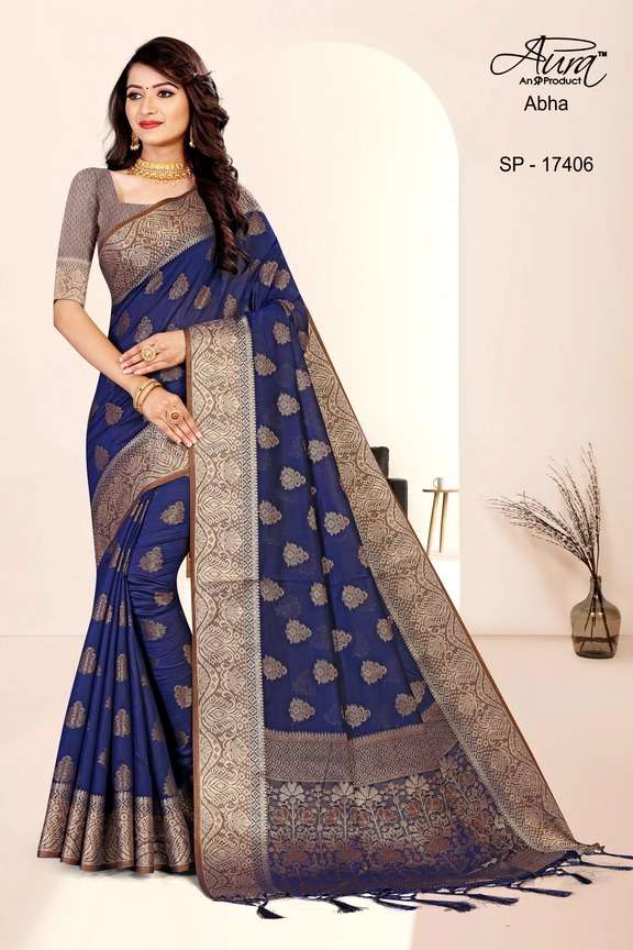 AURA PRESENTS ITS LATEST DESIGNER SAREE CATALOGUE ABHA SILK FABRICS Cut-6.30 Mtrs 08 PC CATALOG 1035/- Rate + 5%GST APPLICABLE SET TO SET ONLY DELIVERY 3-4 days |