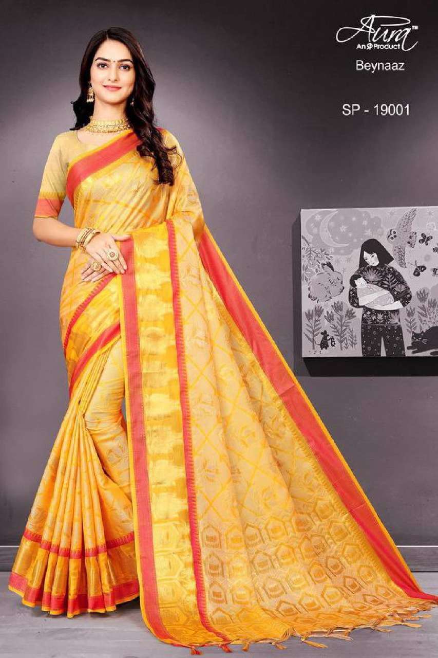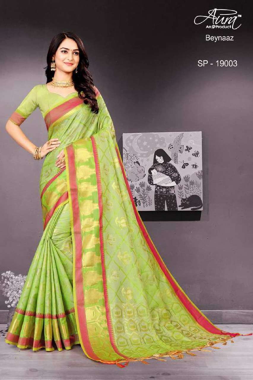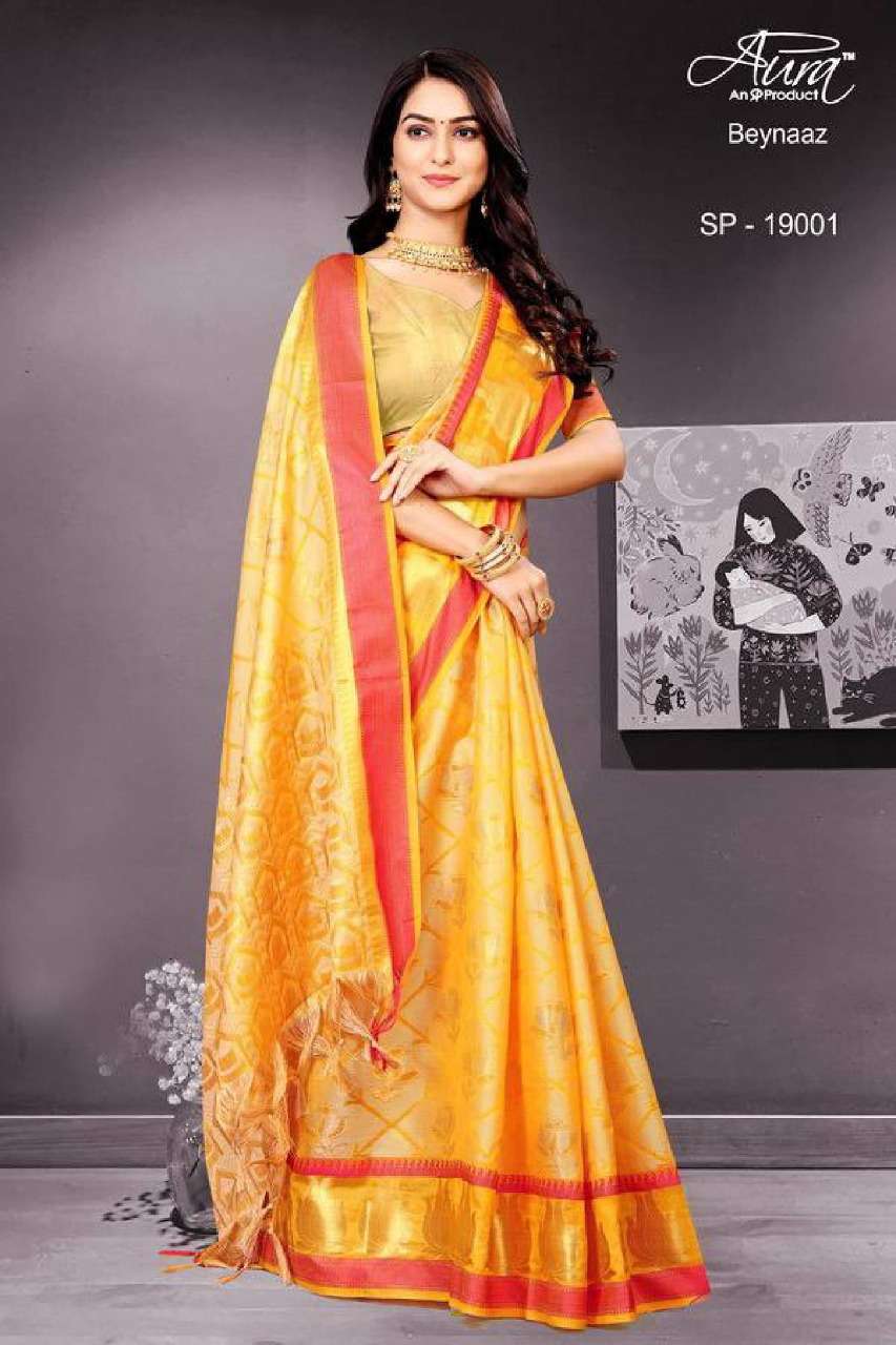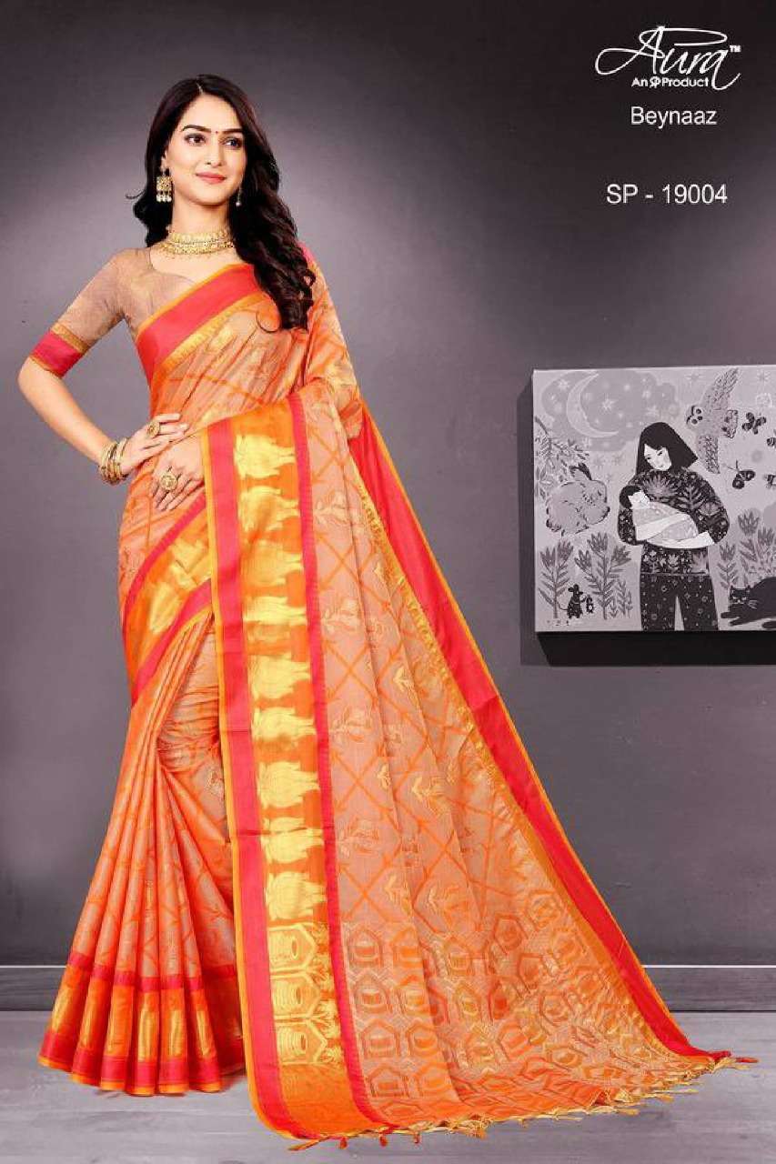 Aura beynaaz soft cotton fancy sarees collection for festival