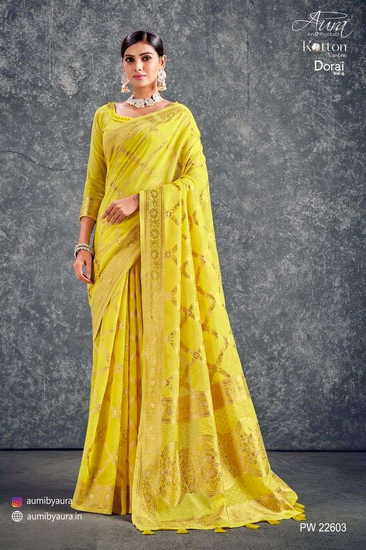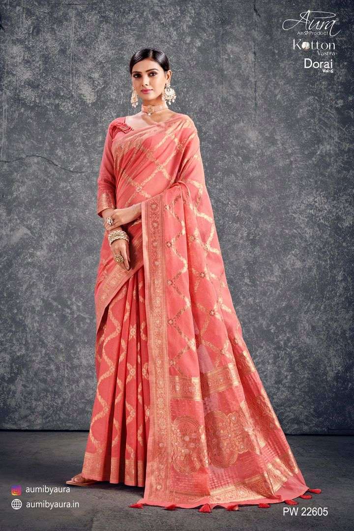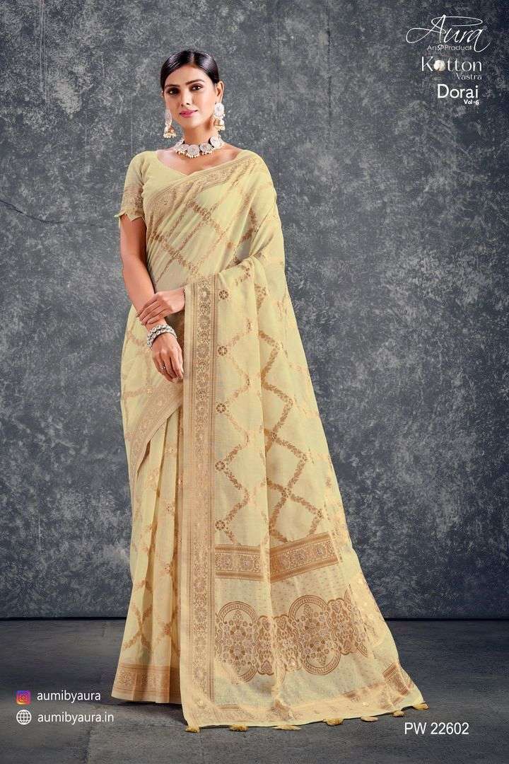 aura dorai vol 6 by kotton vastra elegant look fancy sarees