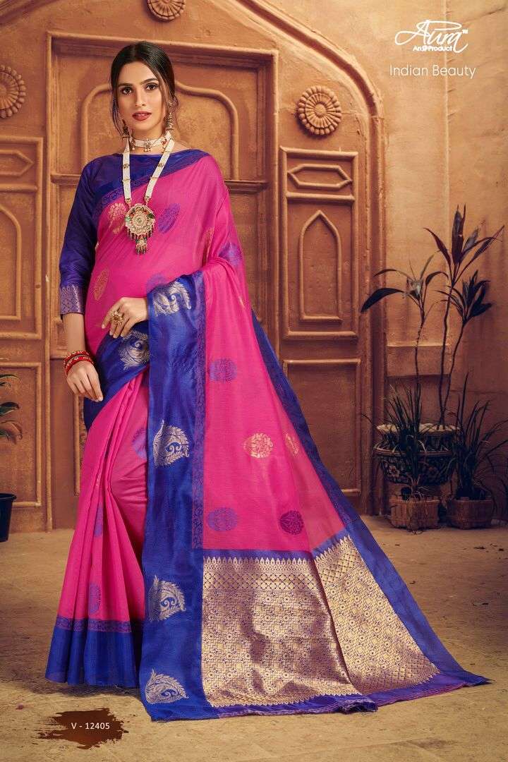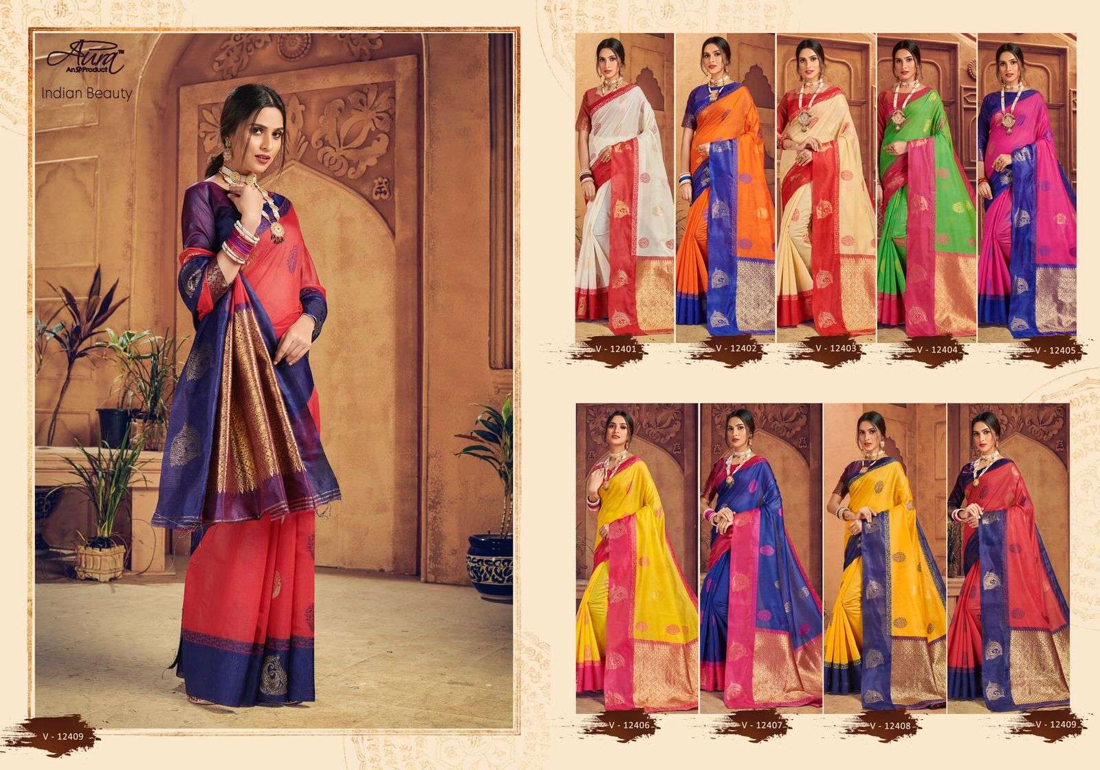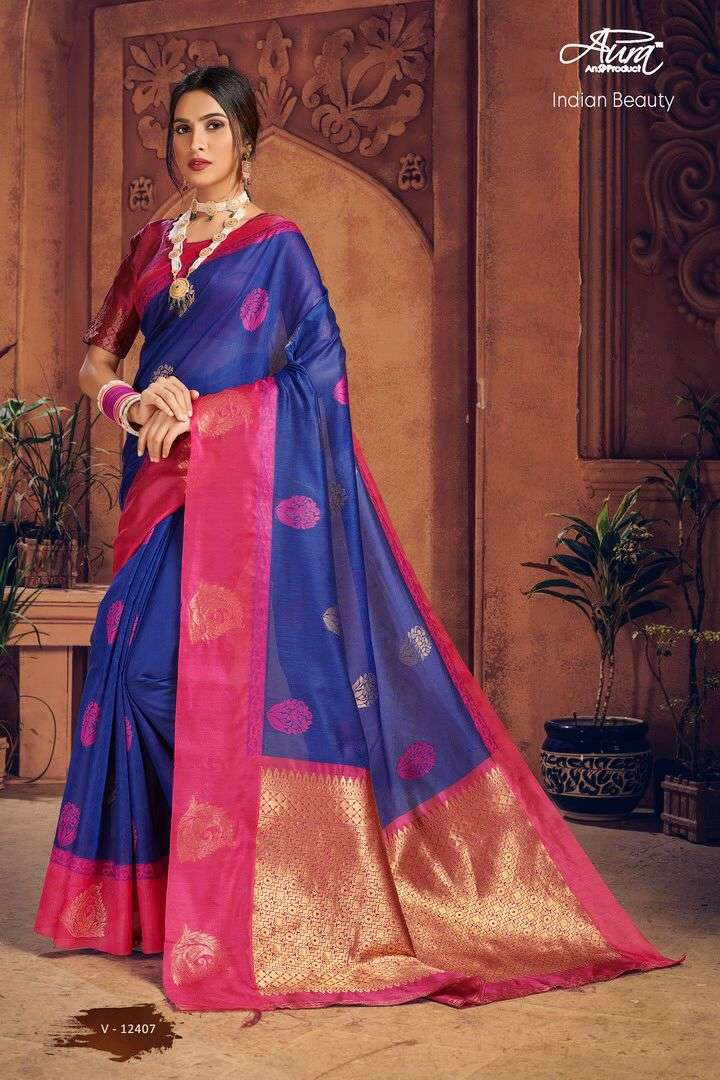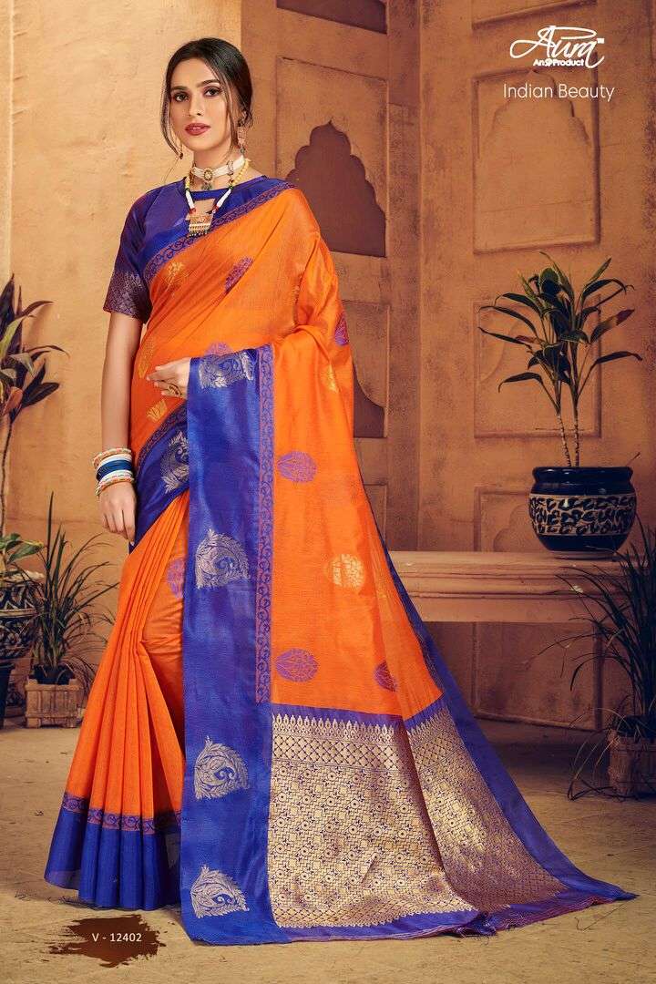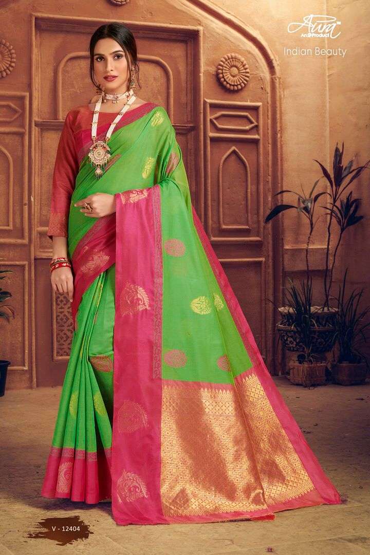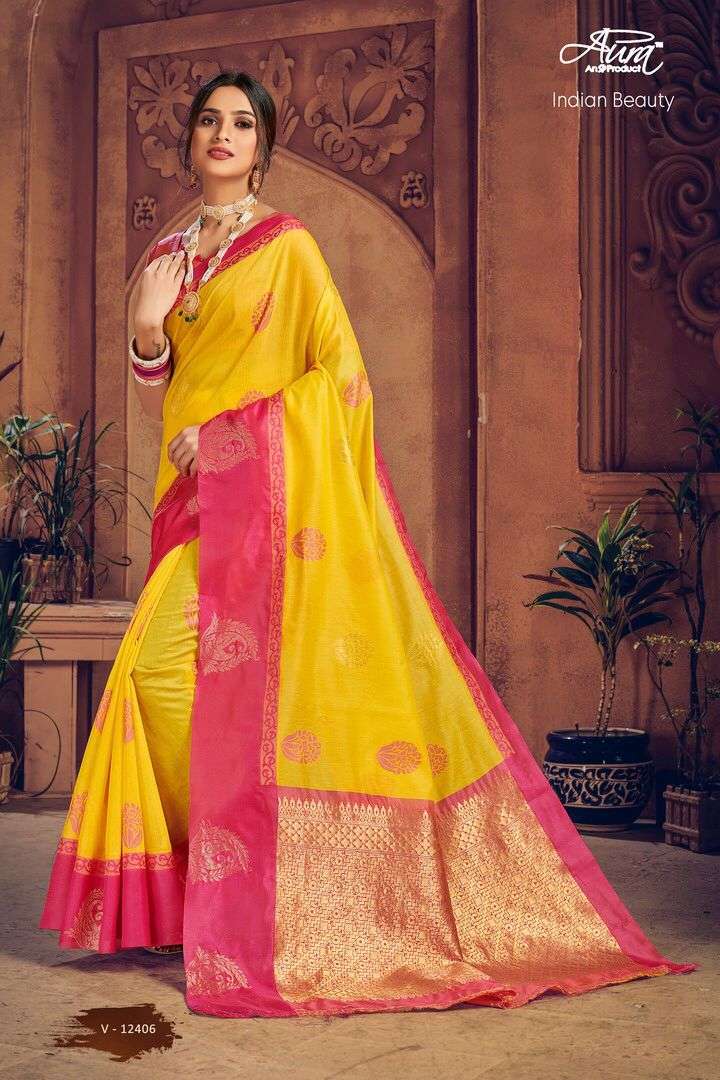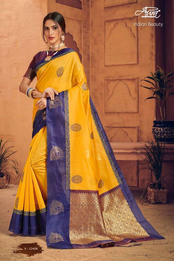 AURA PRESENTS ITS LATEST DESIGNER SAREE CATALOGUE INDIAN BEAUTY SILK FABRICS Cut-6.30 Mtrs 09 PC CATALOG 1080/- Rate + 5%GST APPLICABLE SET TO SET ONLY DELIVERY 3-4 days |