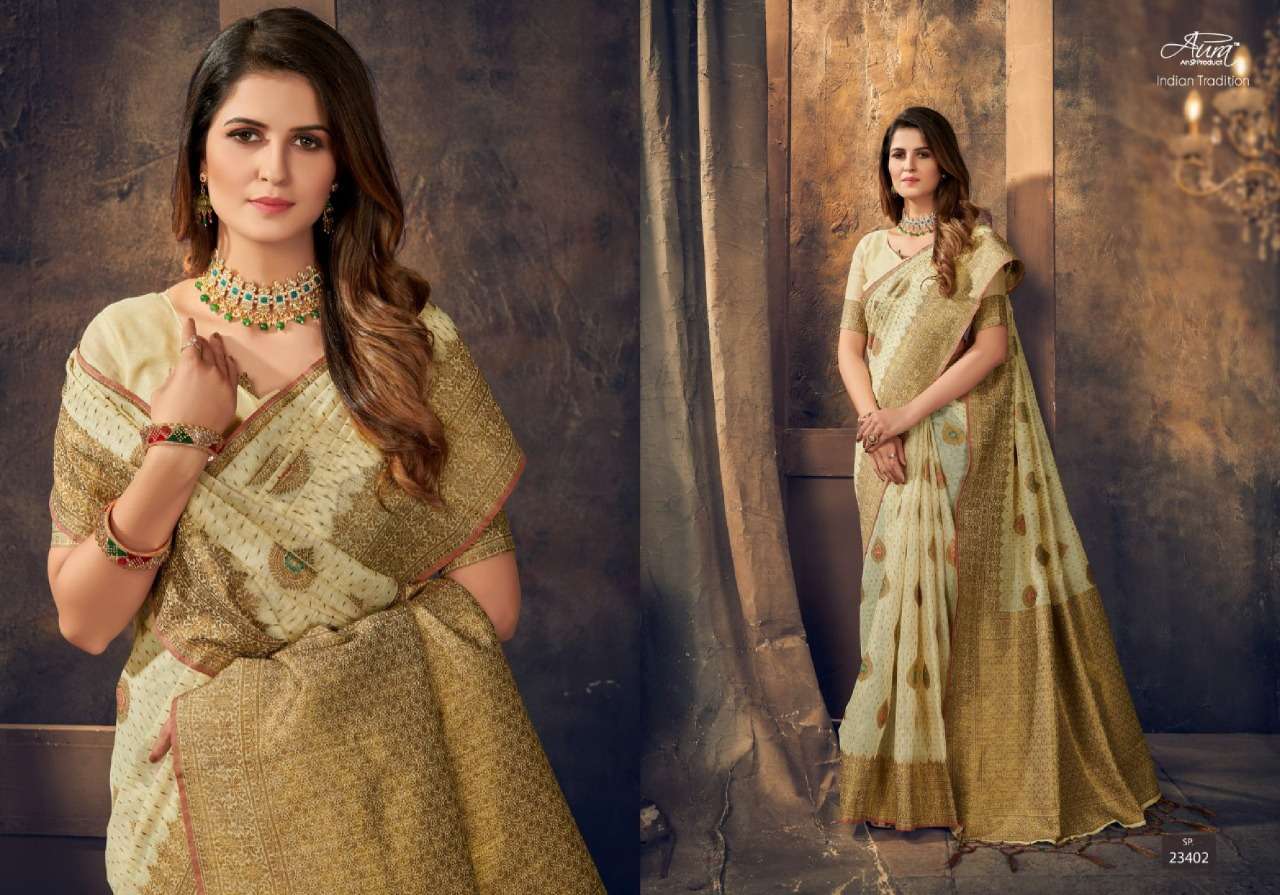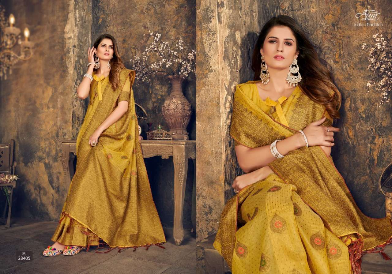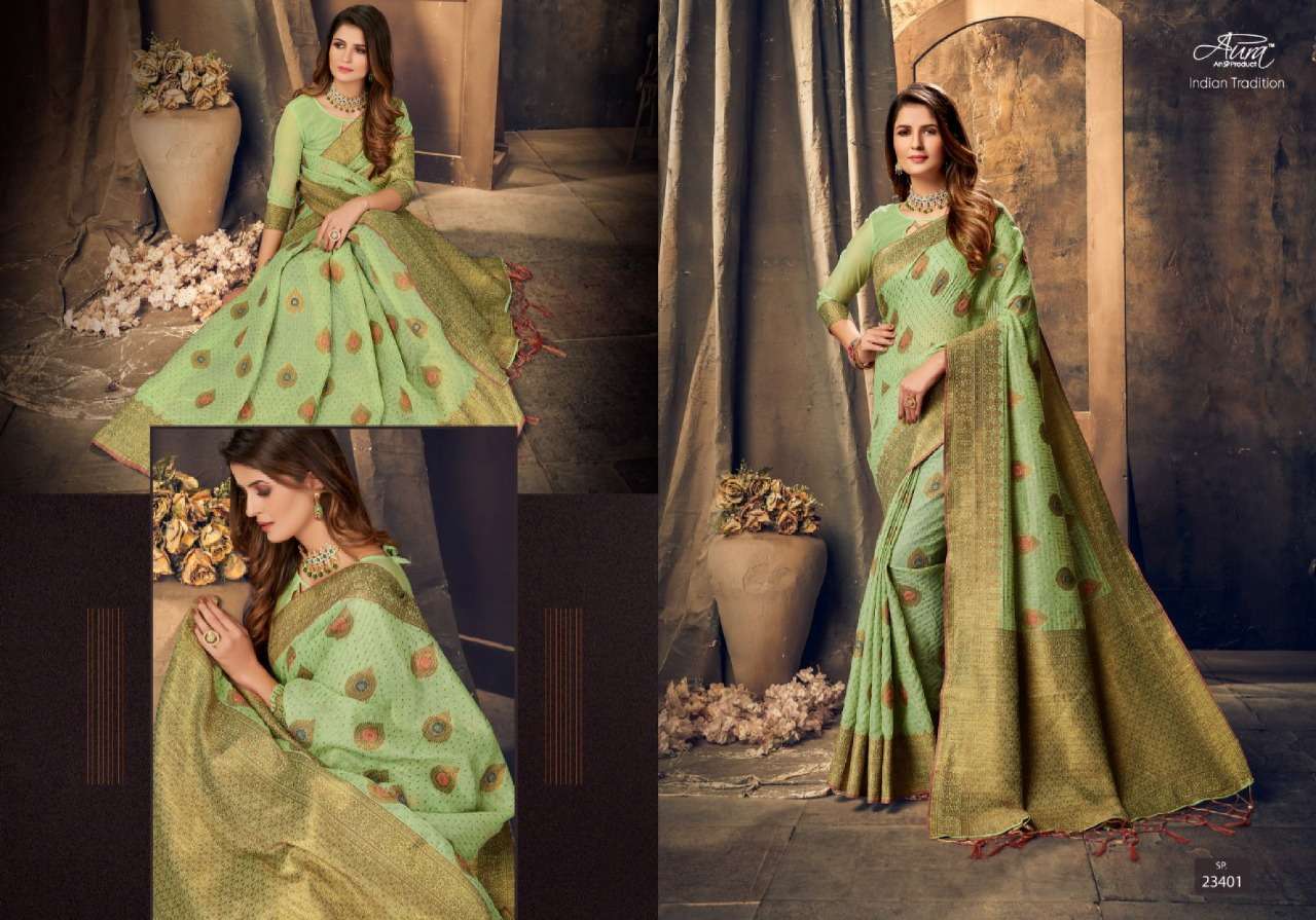 Aura indian tradition soft cotton fancy sarees wholesaler in surat