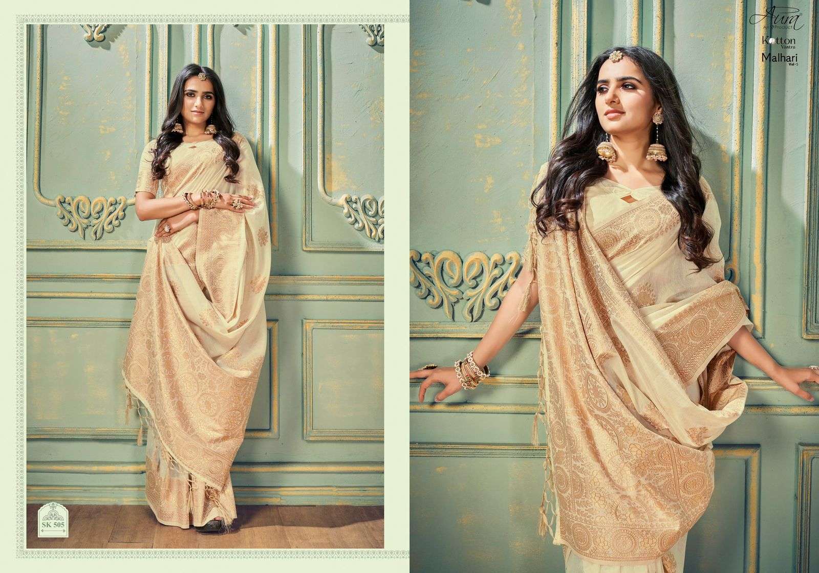 aura malhari vol 5 kotton vastra designer fancy sarees