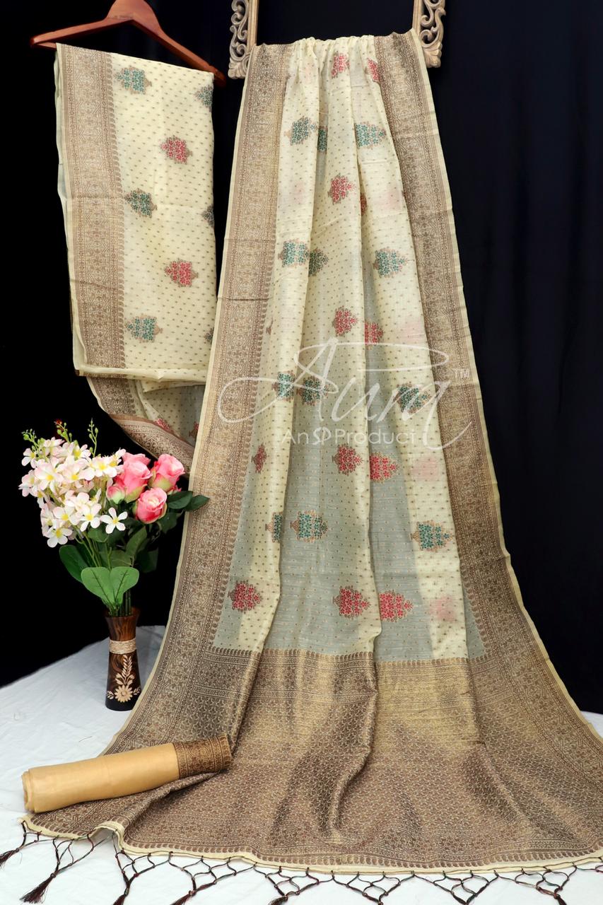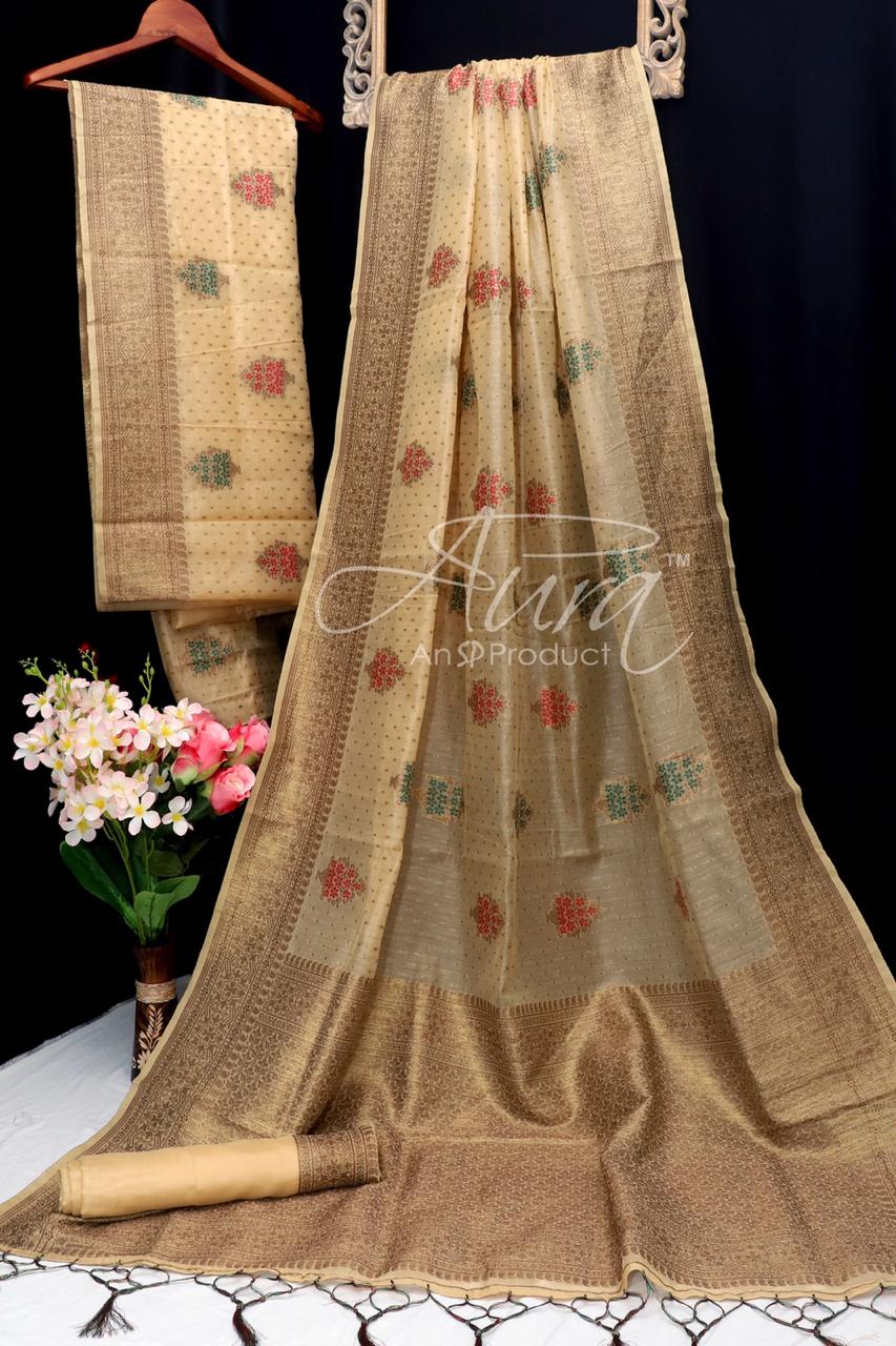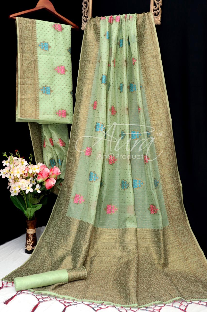 Aura Saree Presents Latest Collection Launched on 03-10-2020. Presenting Beautiful collection of 6 PCS with Unstitched .