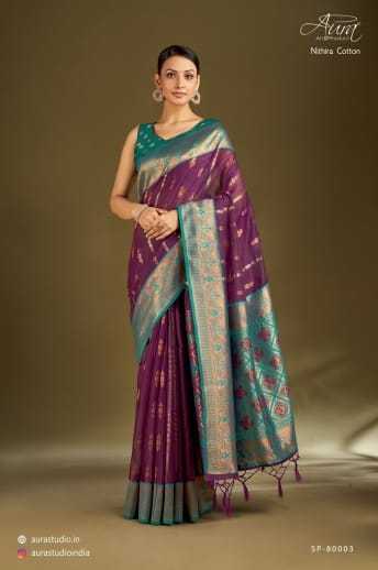 aura sarees nithira cotton fancy classy look sarees