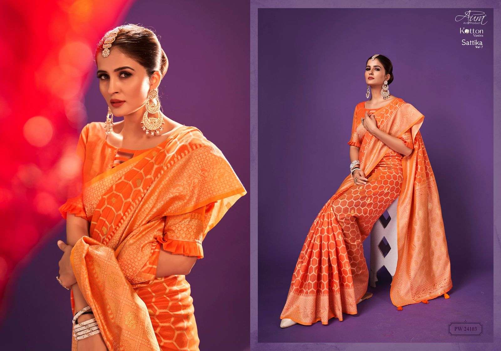 aura sattika vol 7 fancy saree wholesale at kc surat