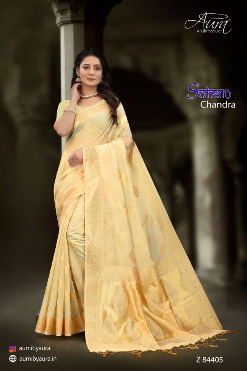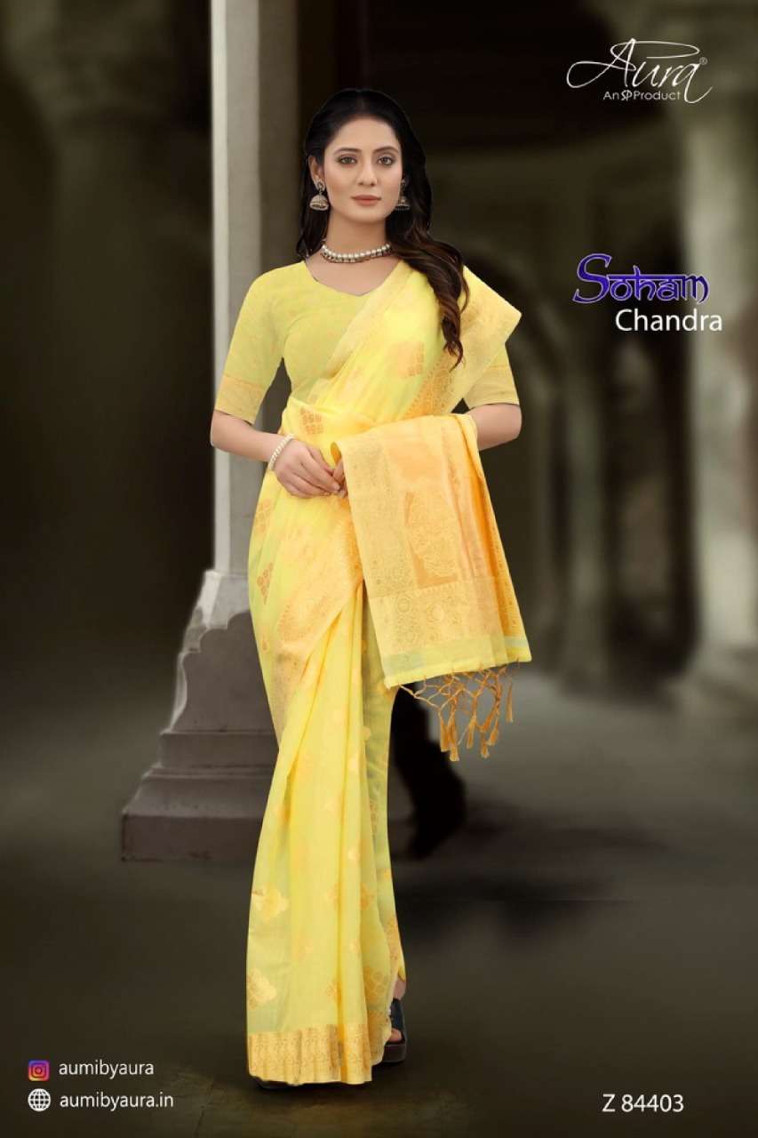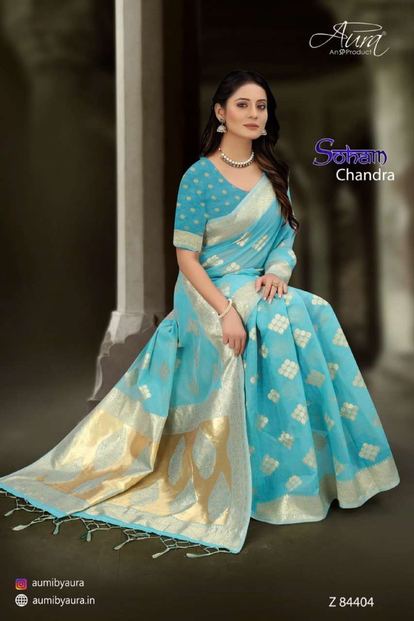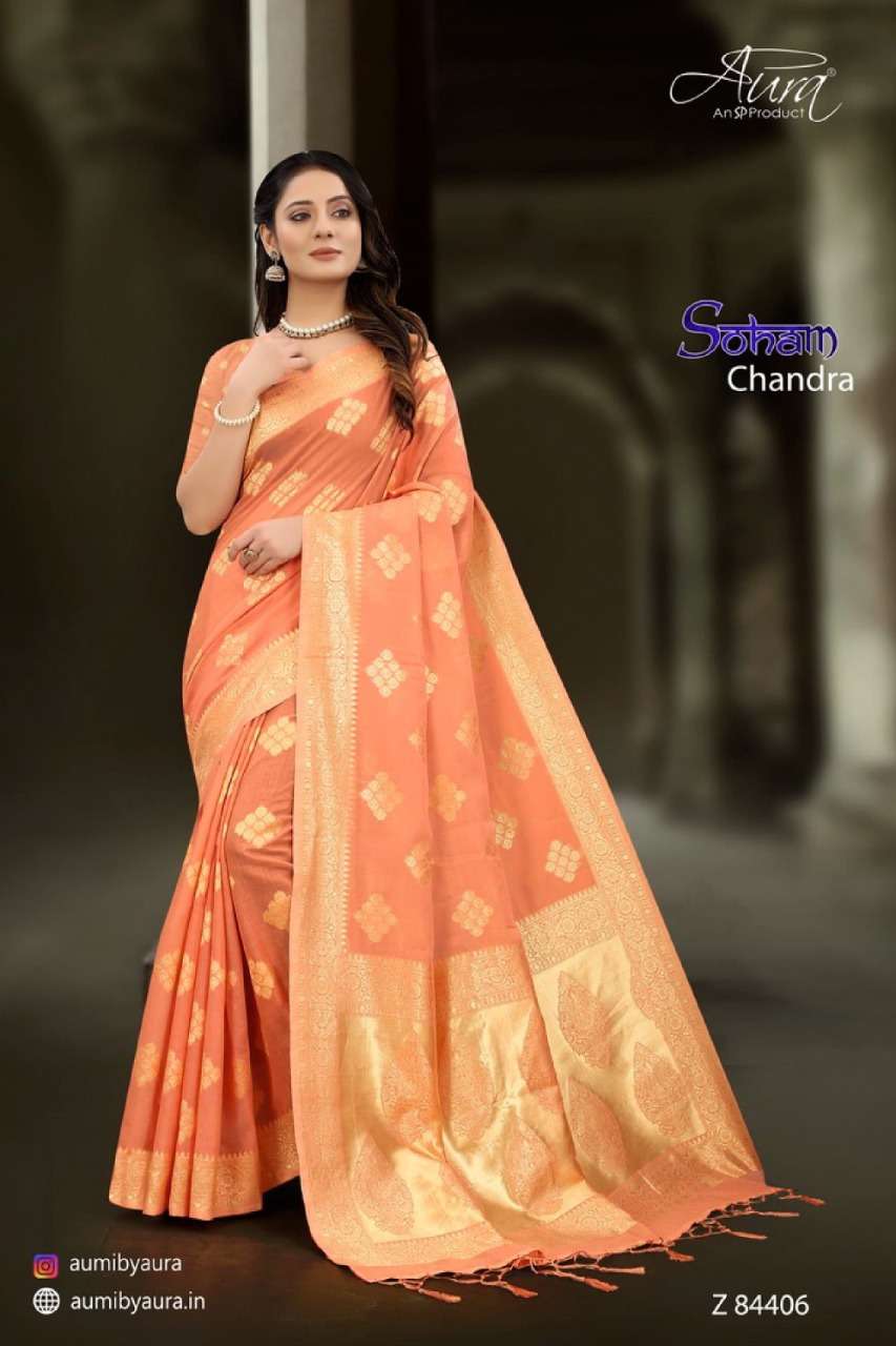 Aura soham chandra soft cotton fancy sarees collection