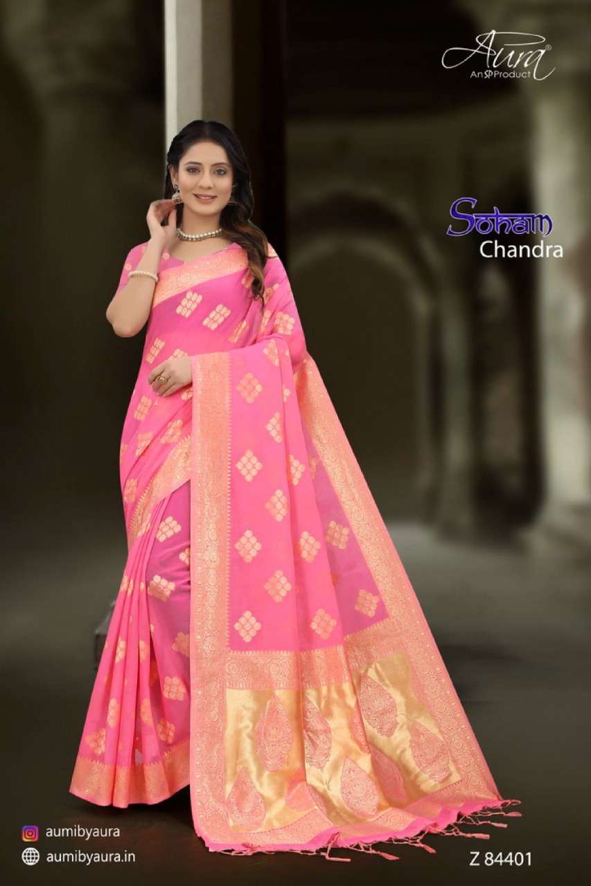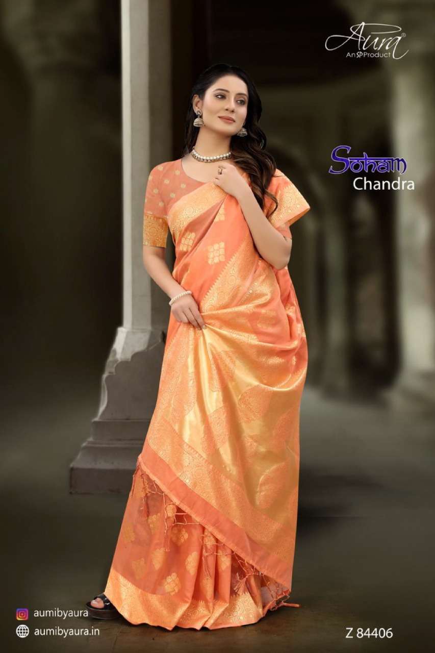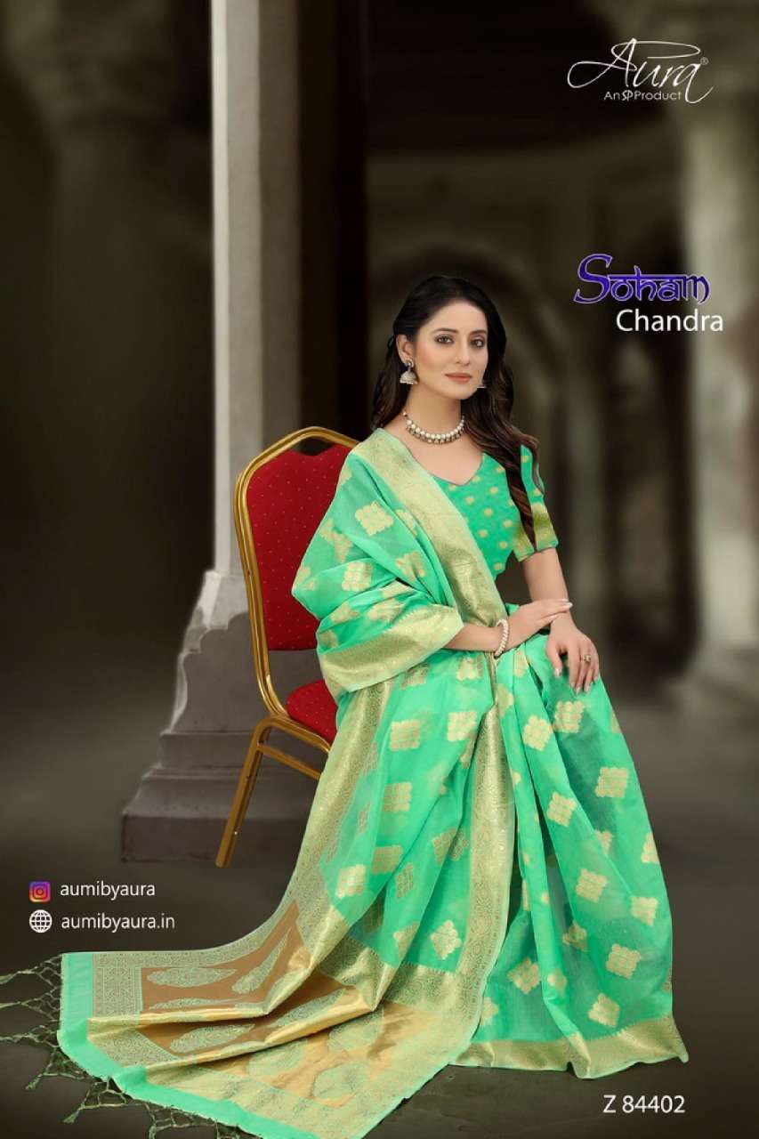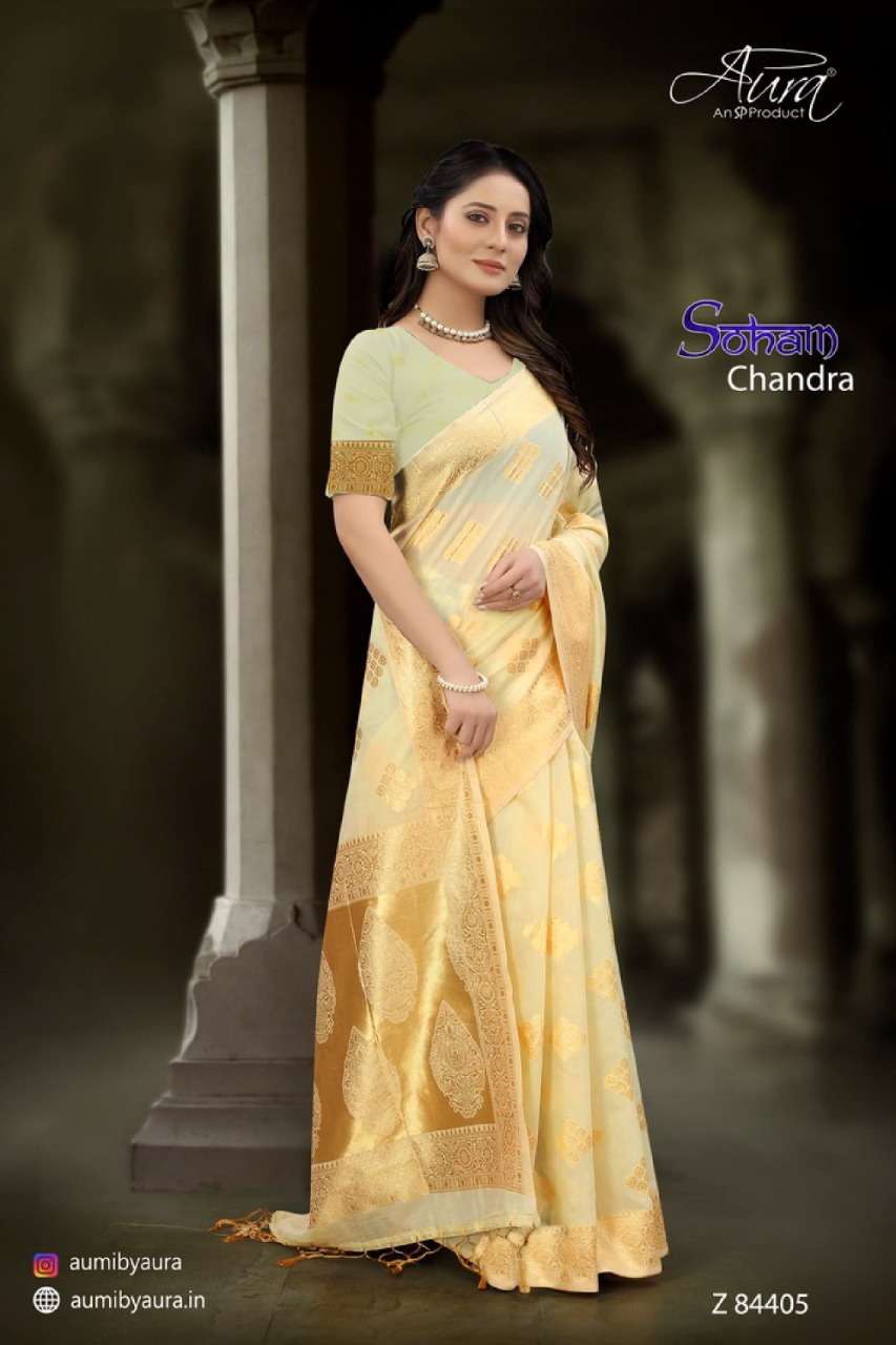Aura soham chandra soft cotton fancy sarees collection